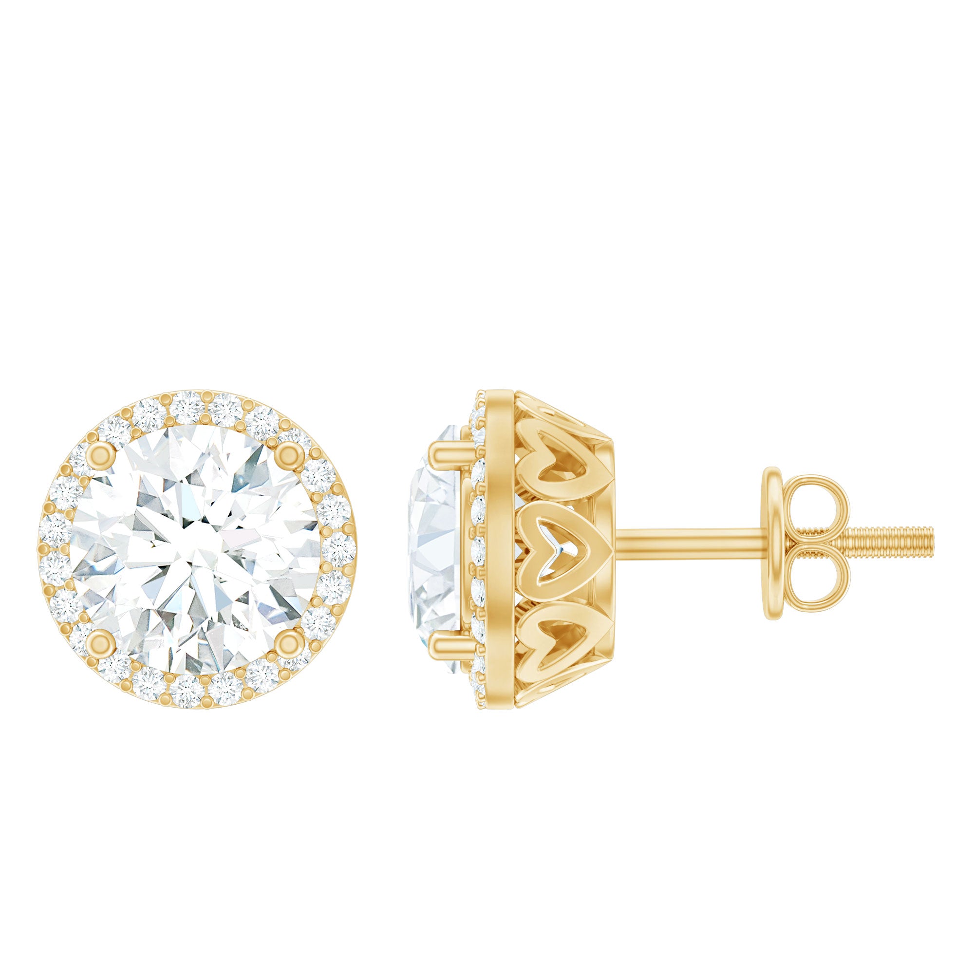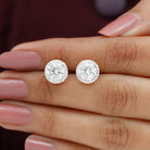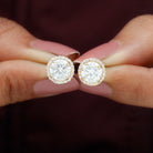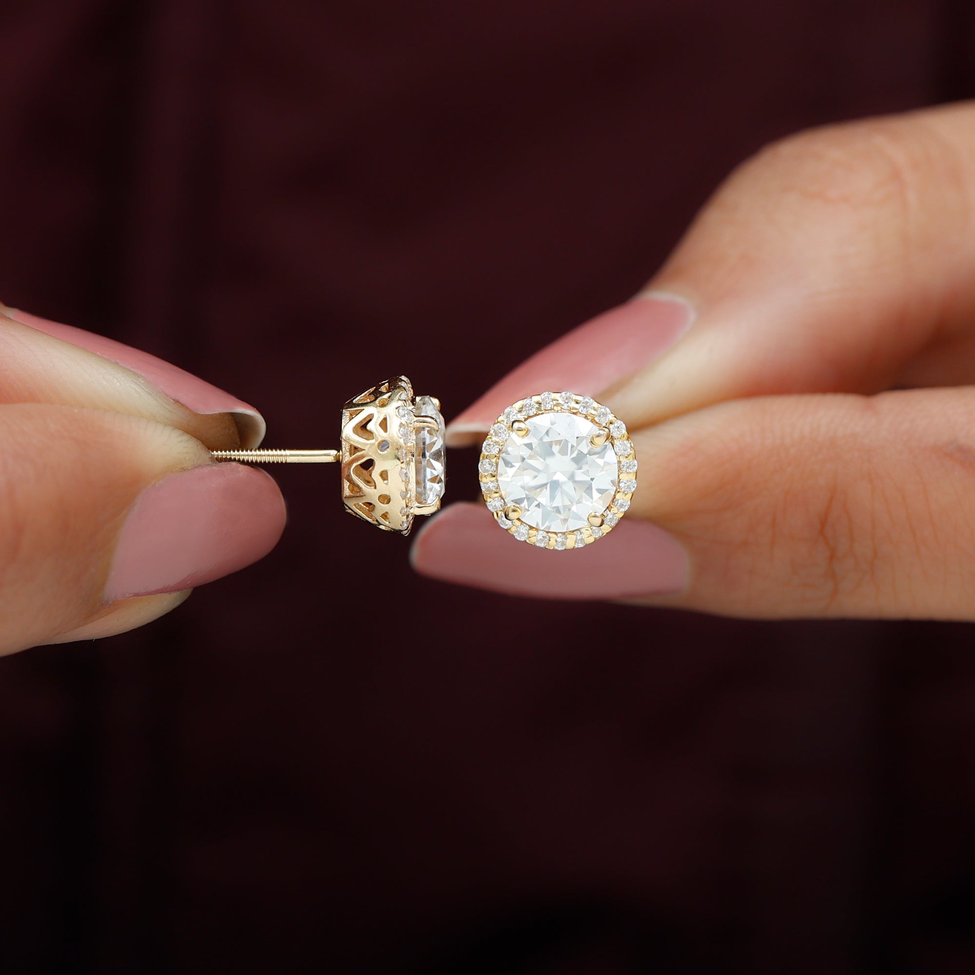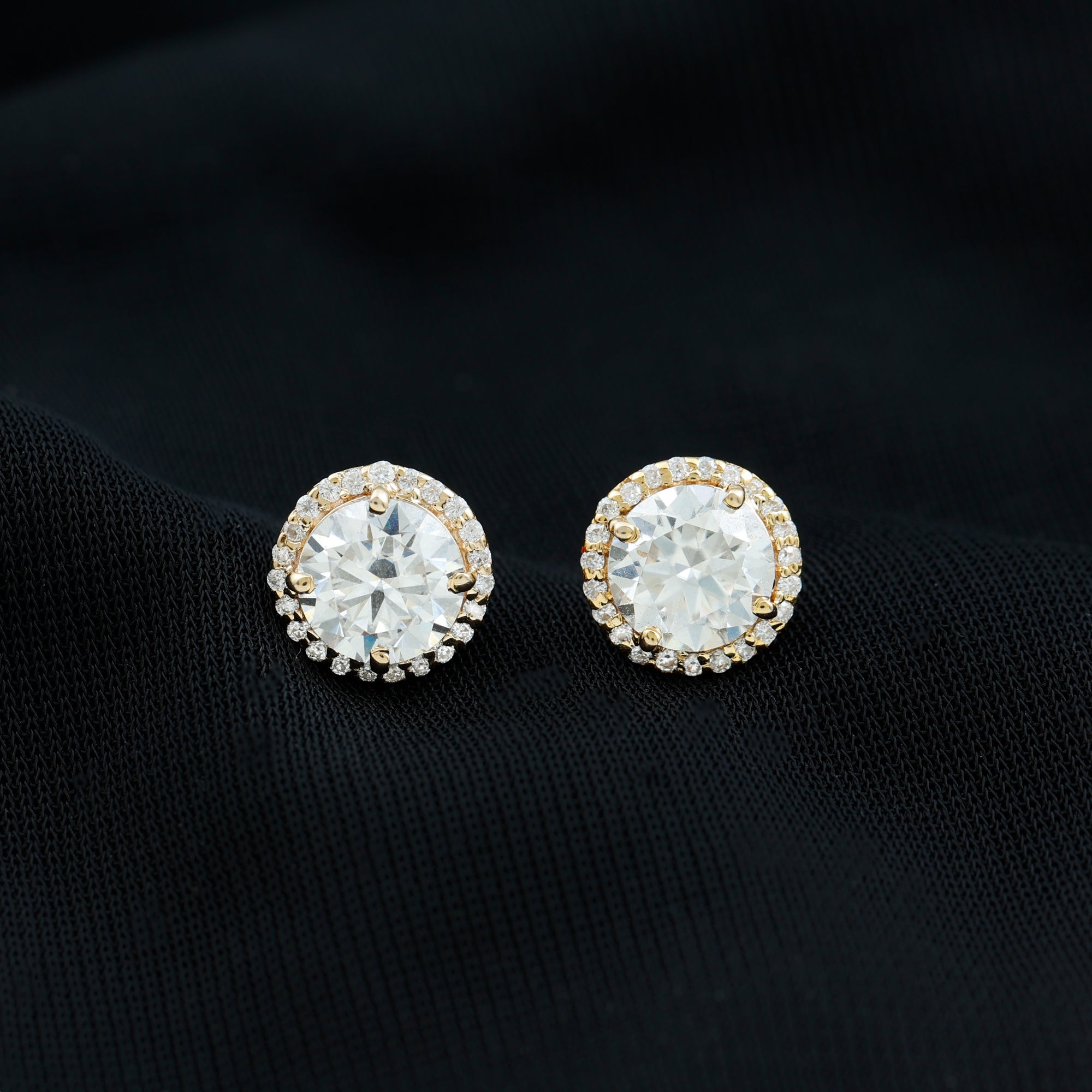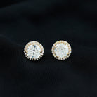 - Crafted from premium metal, these Halo Stud Earrings showcase 7 MM round cut lab grown diamonds encircled by a halo of gemstones.
