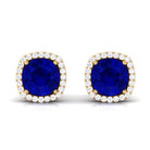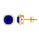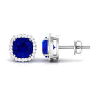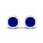 Round Lab Created Blue Sapphire Stud Earrings with Diamond Halo