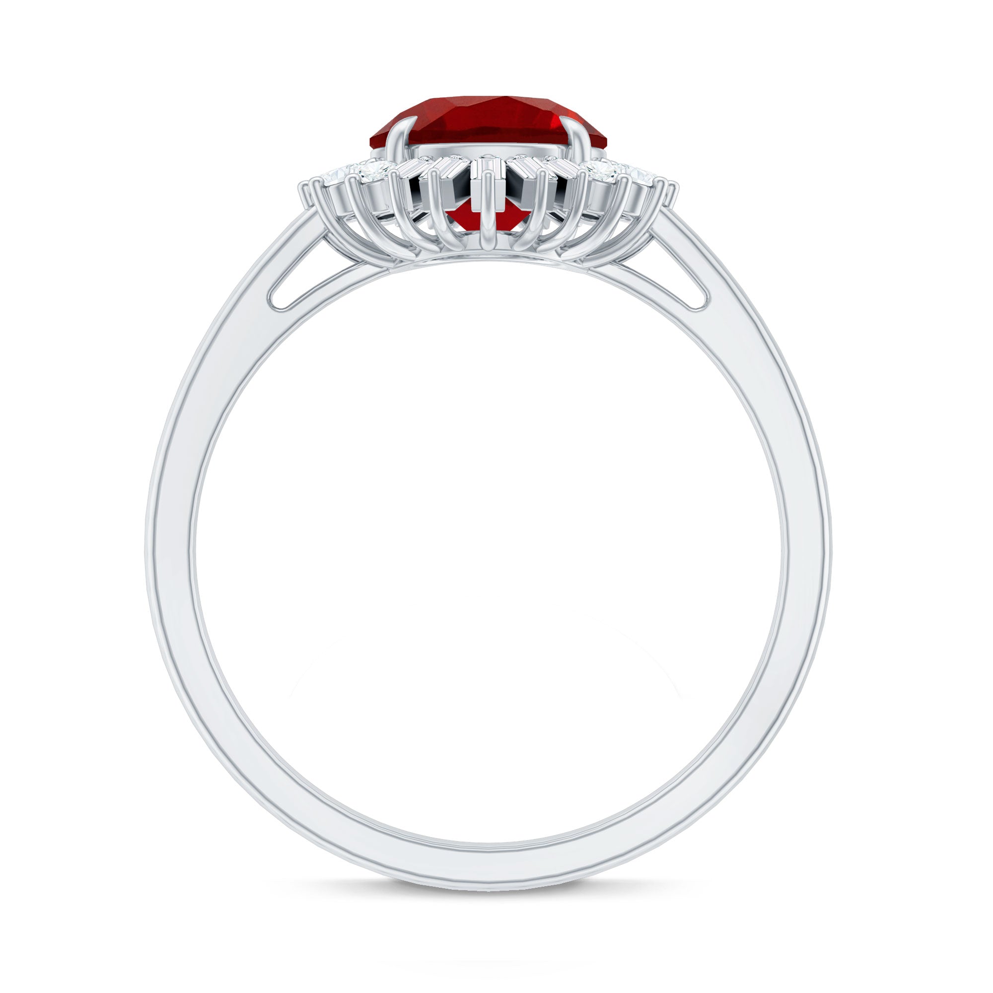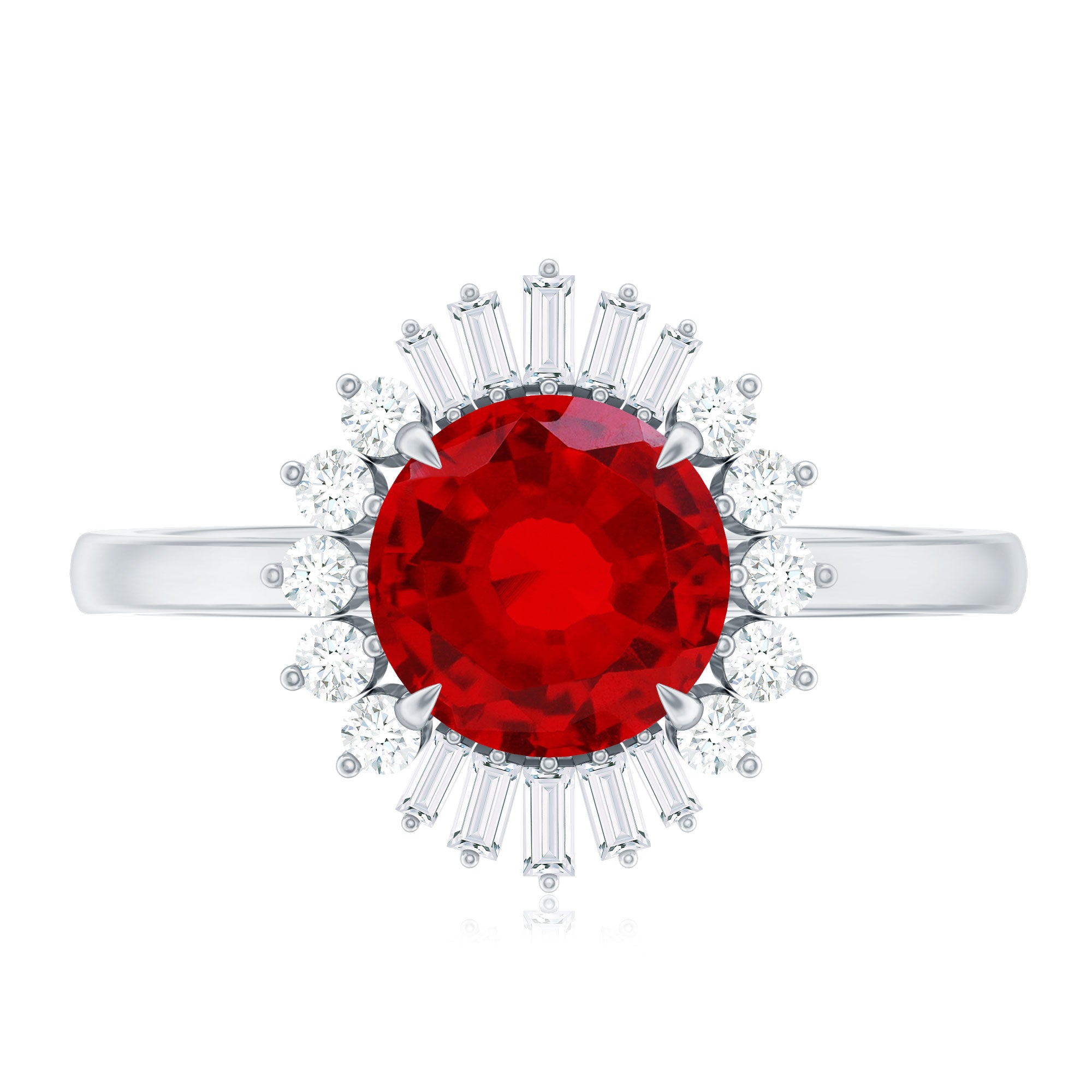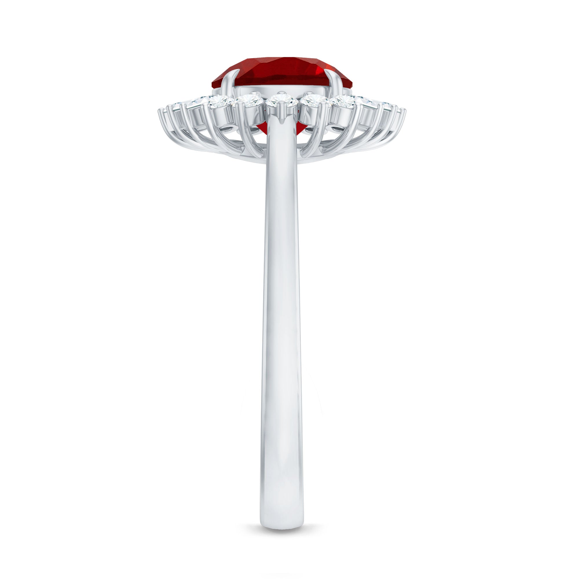 Round Lab Created Ruby and Diamond Halo Engagement Ring