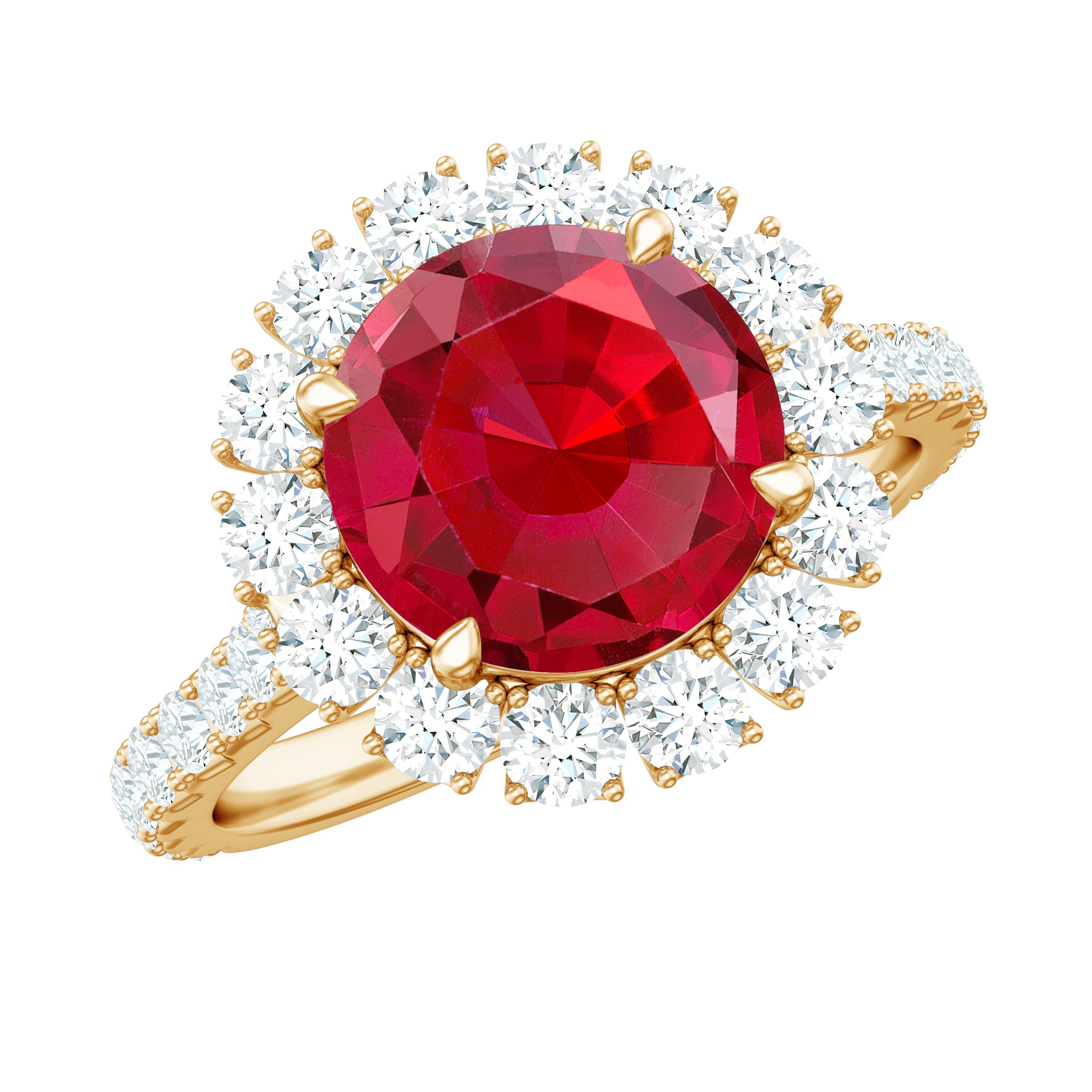 Round Lab Created Ruby and Moissanite Halo Engagement Ring