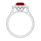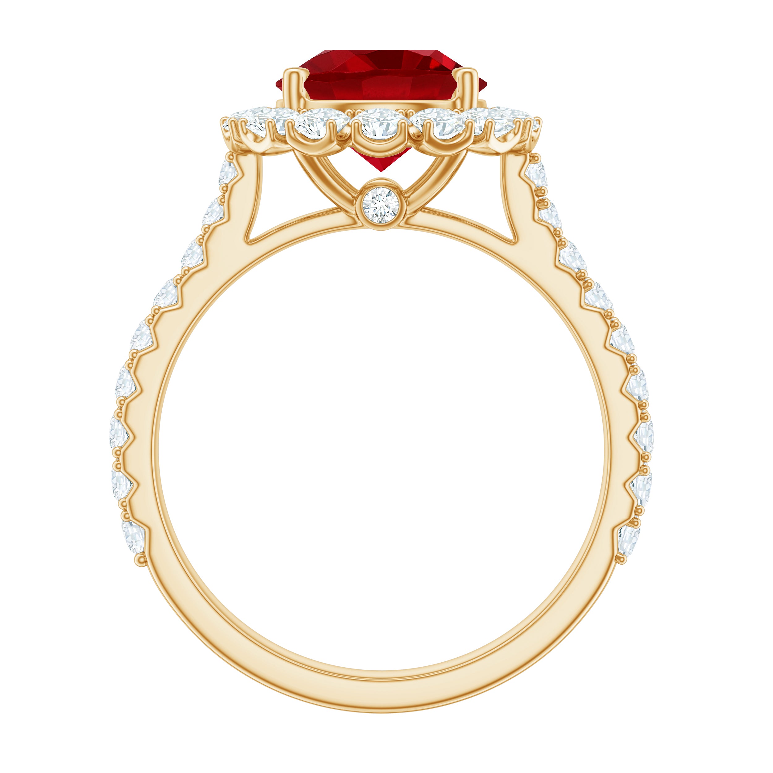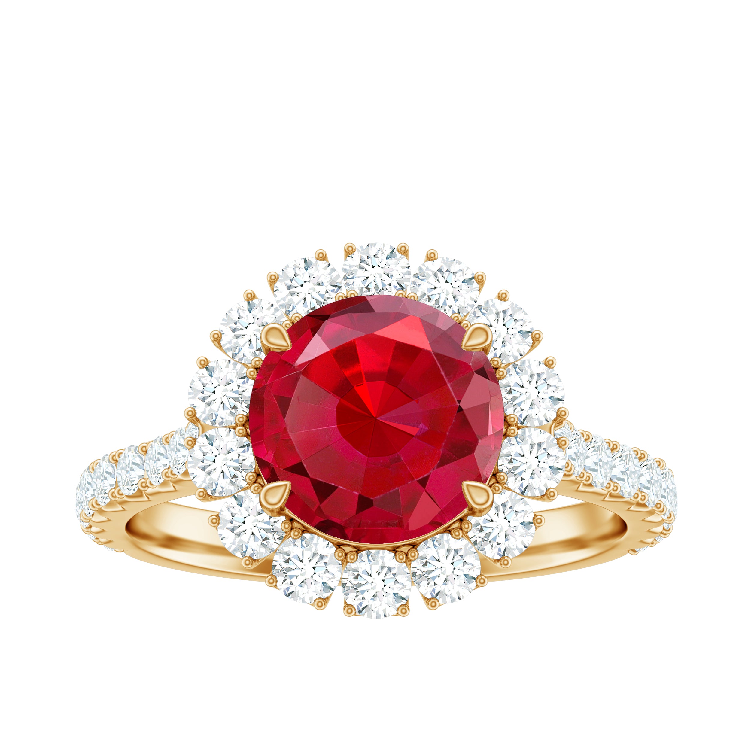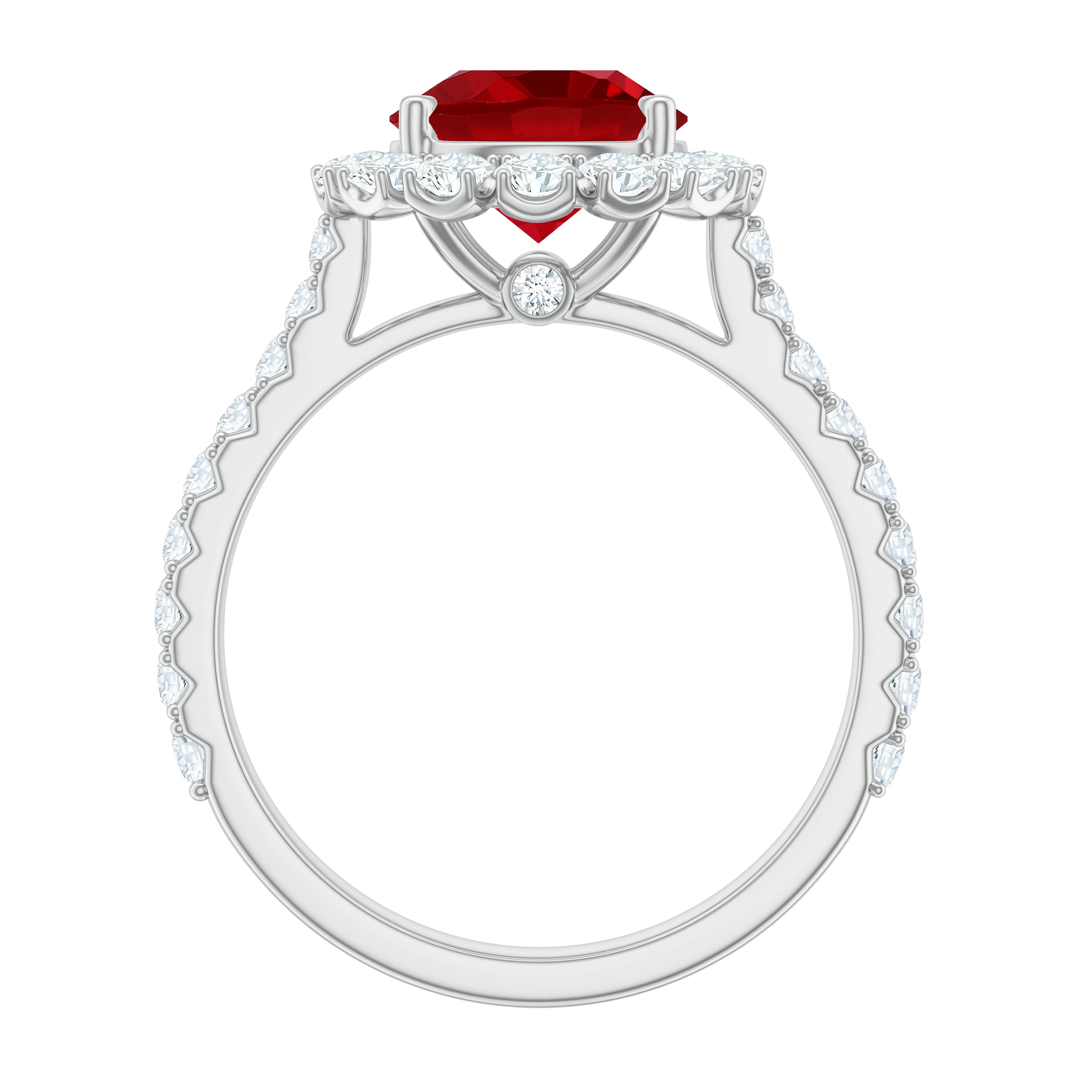 Round Lab Created Ruby and Moissanite Halo Engagement Ring