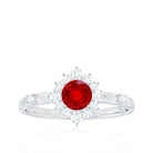 Round Lab Created Ruby Promise Ring with Diamond Halo
