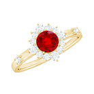 Promise a love that lasts forever with this elegant Lab Grown Ruby Promise Ring, a piece that speaks straight from the heart. At its center sits a 5 MM round cut lab grown ruby, glowing beautifully in secure prong setting. Surrounding the center stone is a sparkling diamond halo that adds a touch of brilliance and makes the ruby stand out even more. Two stones are set over the shank, giving the Ruby and Diamond Ring a graceful sparkle that catches the light from every angle. This Lab Created Ruby Ring is crafted with care and precision, blending classic charm with a modern look. The detailed work and fine finish give it a luxurious yet timeless feel that will never go out of style. Beautifully designed to express deep emotion, this Halo Engagement Ring is more than just jewelry, it is a promise, a memory, and a lasting connection. Whether worn every day or on special occasions, it reminds the wearer of the love and meaning it holds. Elegant, meaningful, and full of warmth, this Ruby Halo Ring will always be close to the heart.