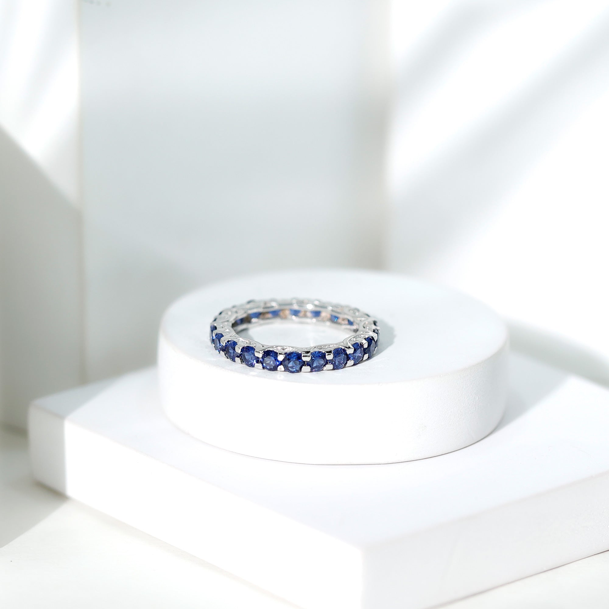 Round Lab Grown Blue Sapphire Full Eternity Band Ring