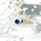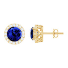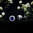 Round Lab Grown Blue Sapphire Stud Earrings With Moissanite Halo