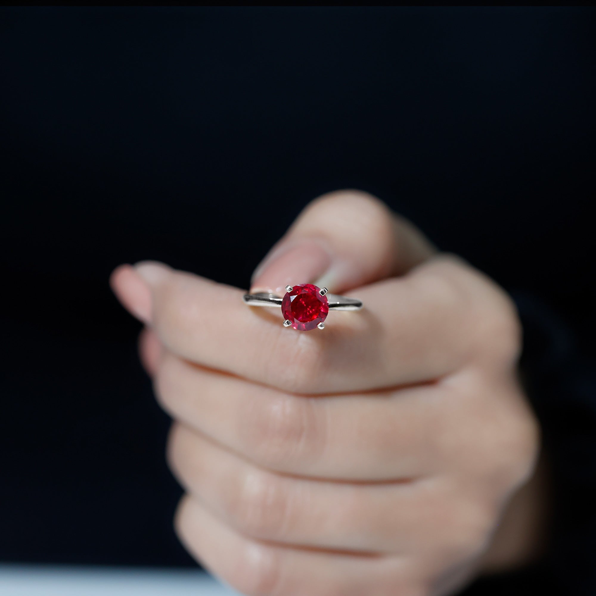 Round Lab Grown Ruby Solitaire Engagement Ring