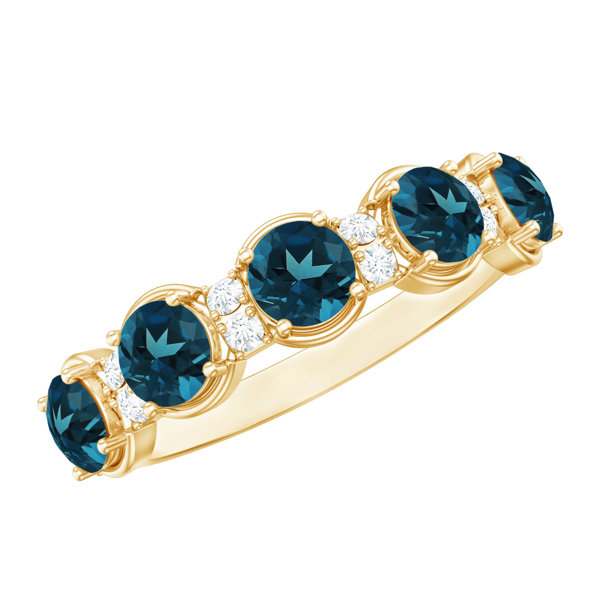 When love manifests, it frequently takes the shape of hearts, and this London Blue Topaz Ring beautifully encapsulates that sentiment. Meticulously crafted with round shape London Blue Topaz stones and diamond-embellished in alternate design, this ring narrates a tale of romance, connection, and enduring elegance. The alternating arrangement of deep blue topaz and shimmering diamonds produces a striking contrast, imparting the Blue Topaz Wedding Band with a bold yet refined appearance. Each gemstone is securely set in prongs, enabling light to reflect from every angle. The band serve a purpose beyond mere aesthetics; they represent a love that remains steadfast, making this an ideal gift for Valentine’s Day, anniversaries, or any significant occasion with your beloved. Whether worn alone or layered with other cherished pieces, this Half Eternity Ring enhances any ensemble. Crafted with precision and care, the Wedding Anniversary Band is accompanied by a certificate of authenticity, ensuring the quality of the blue topaz and diamonds. It arrives in a signature jewelry box, designed to contain not only the ring but also the emotions and memories it embodies.
