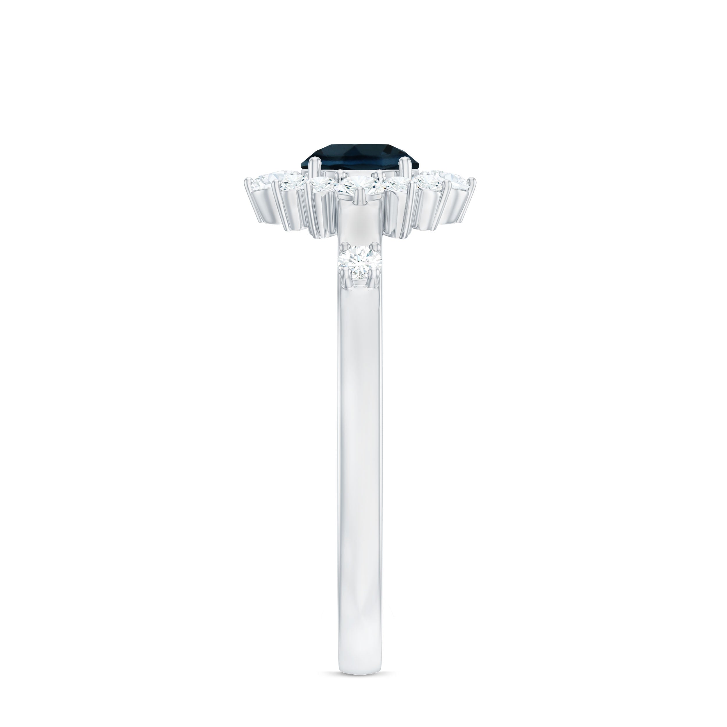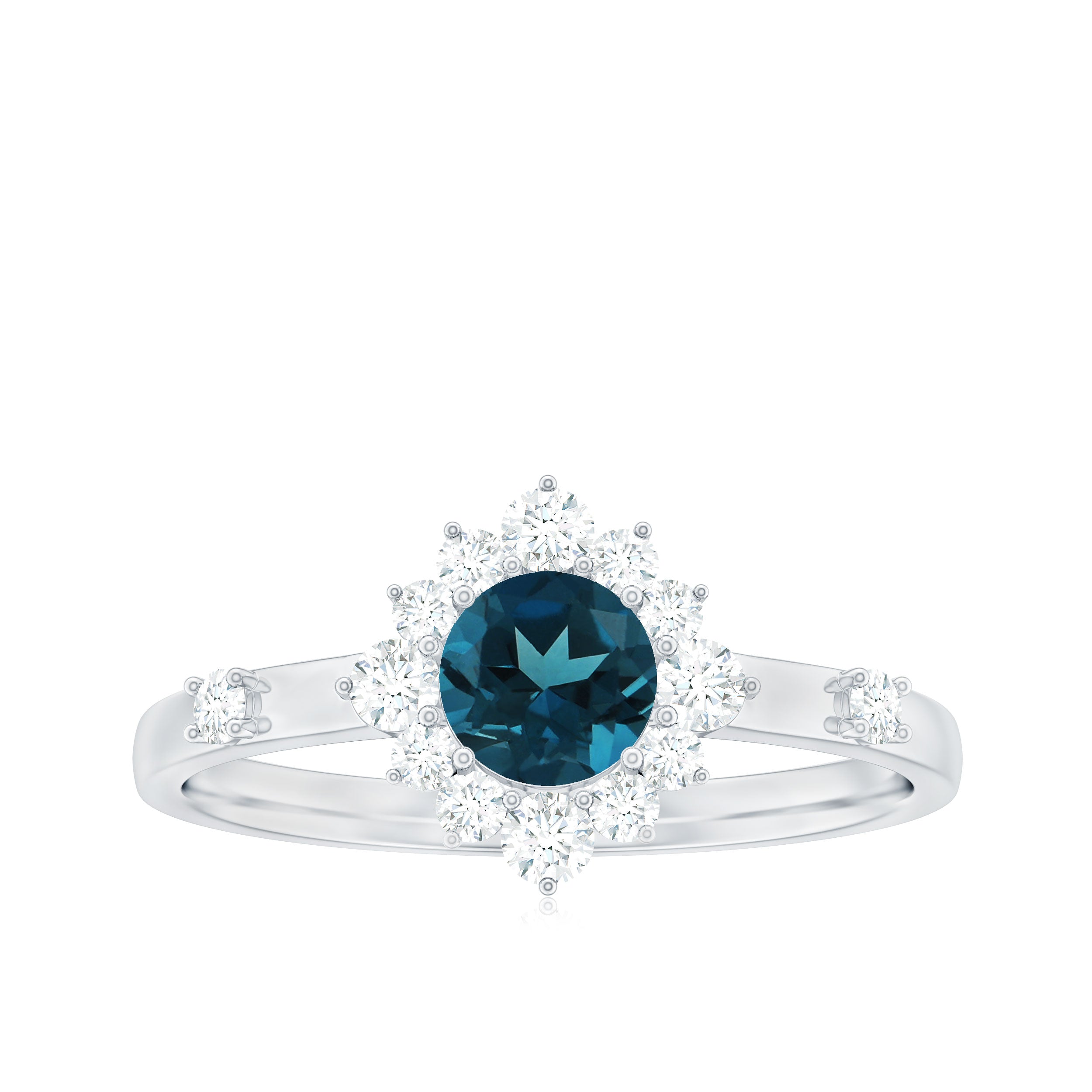 Round London Blue Topaz Promise Ring with Diamond Halo