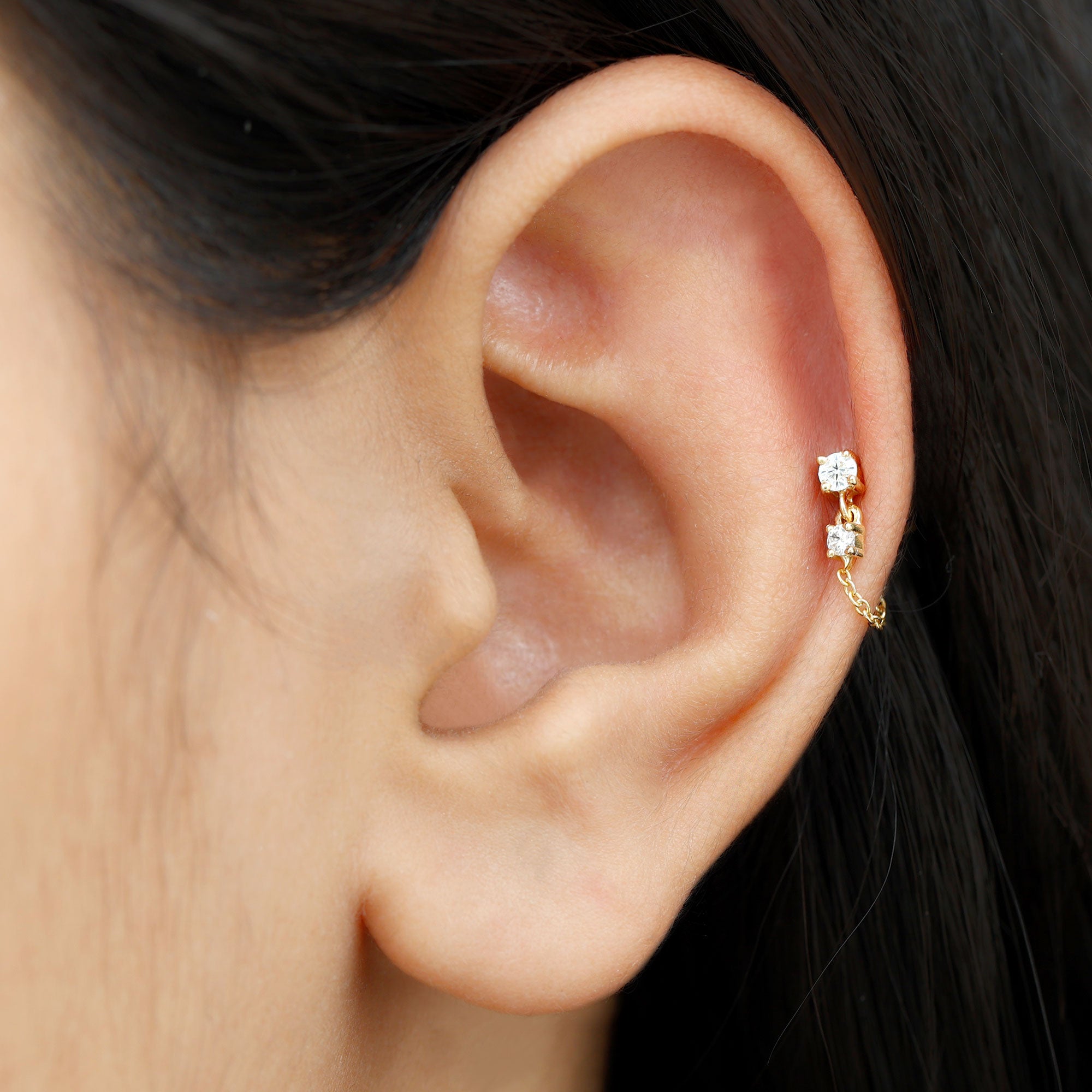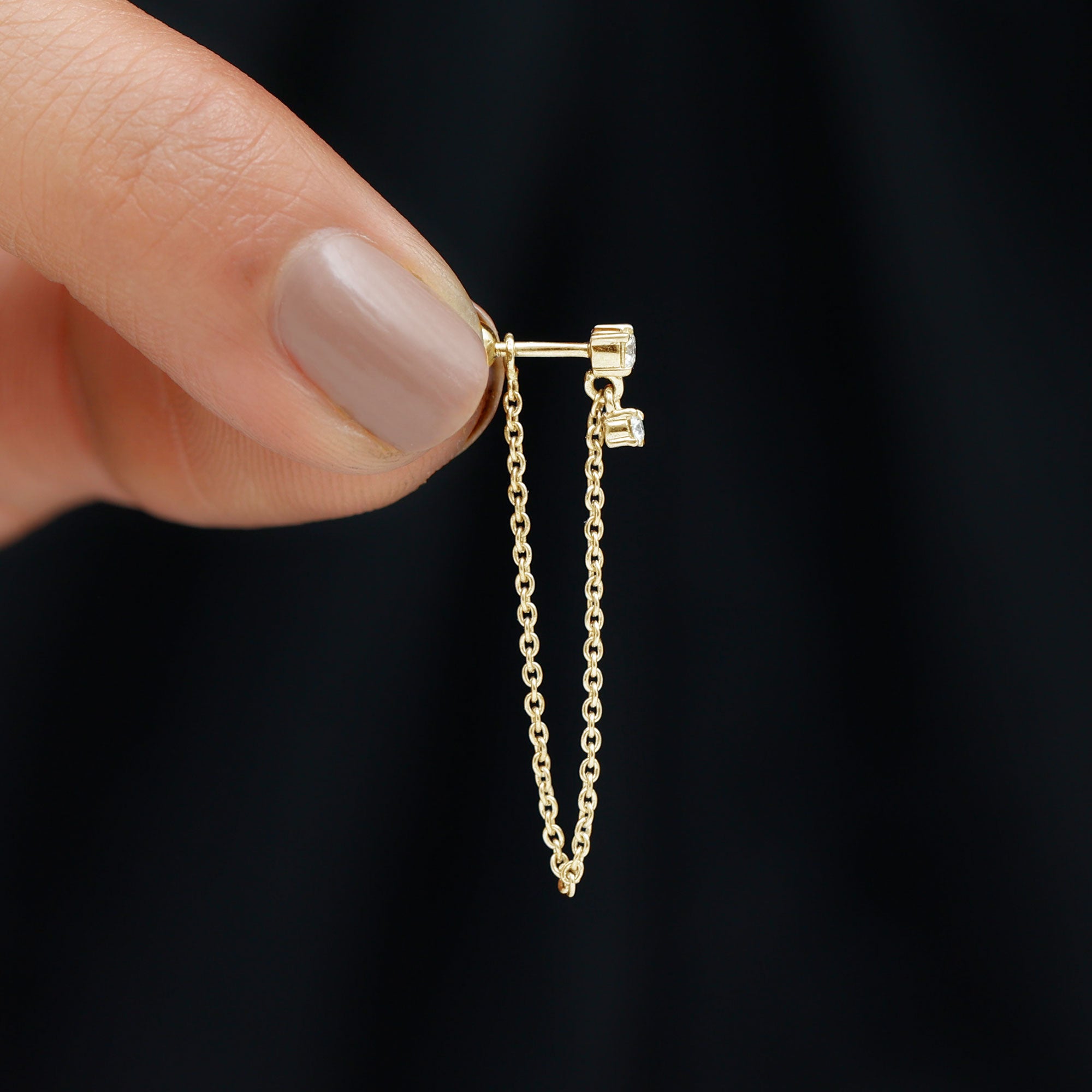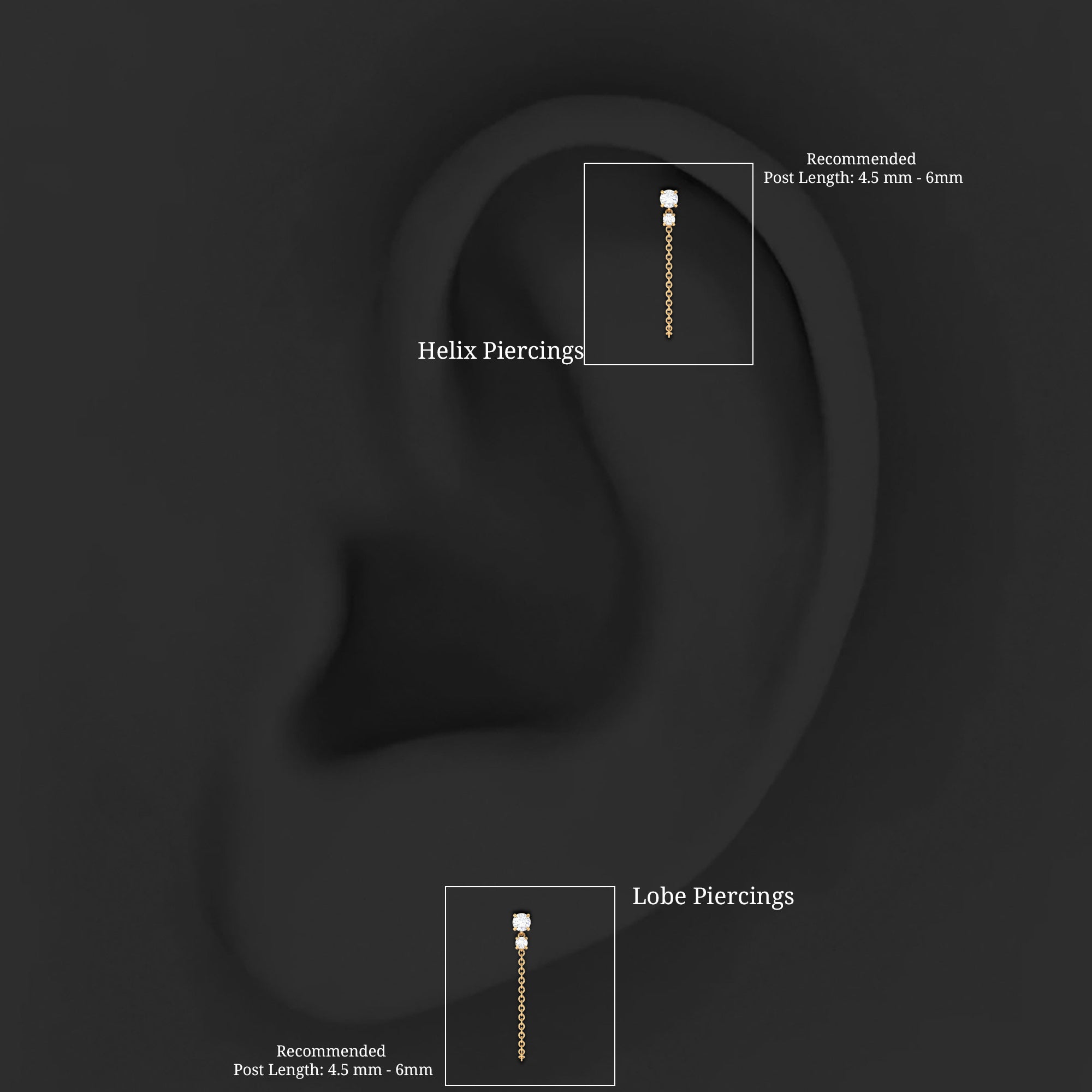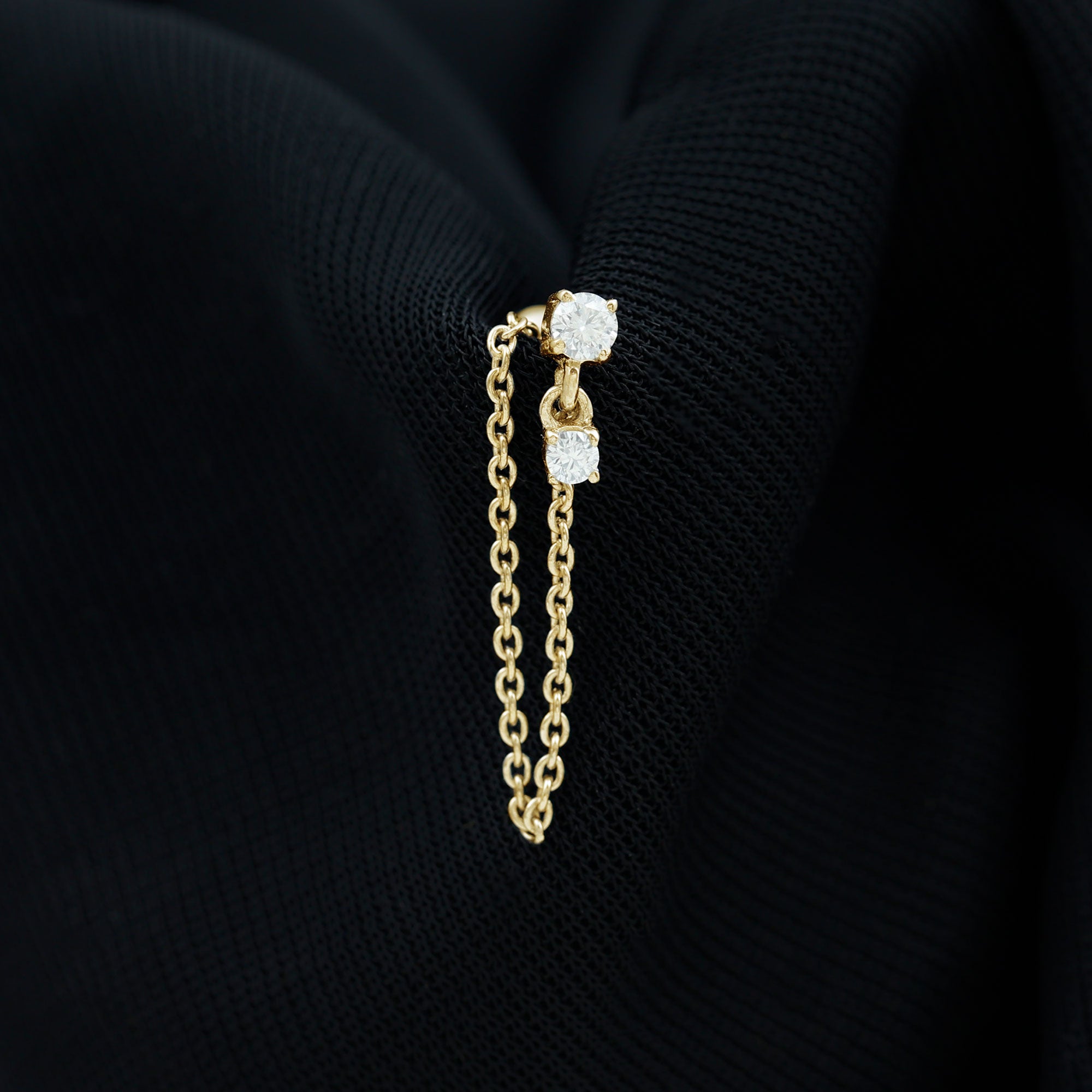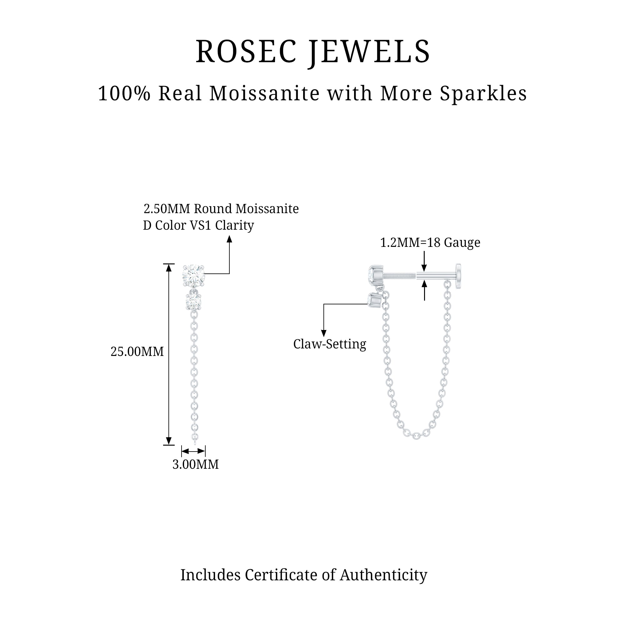 Round Moissanite Chain Drop Earring for Cartilage Piercing