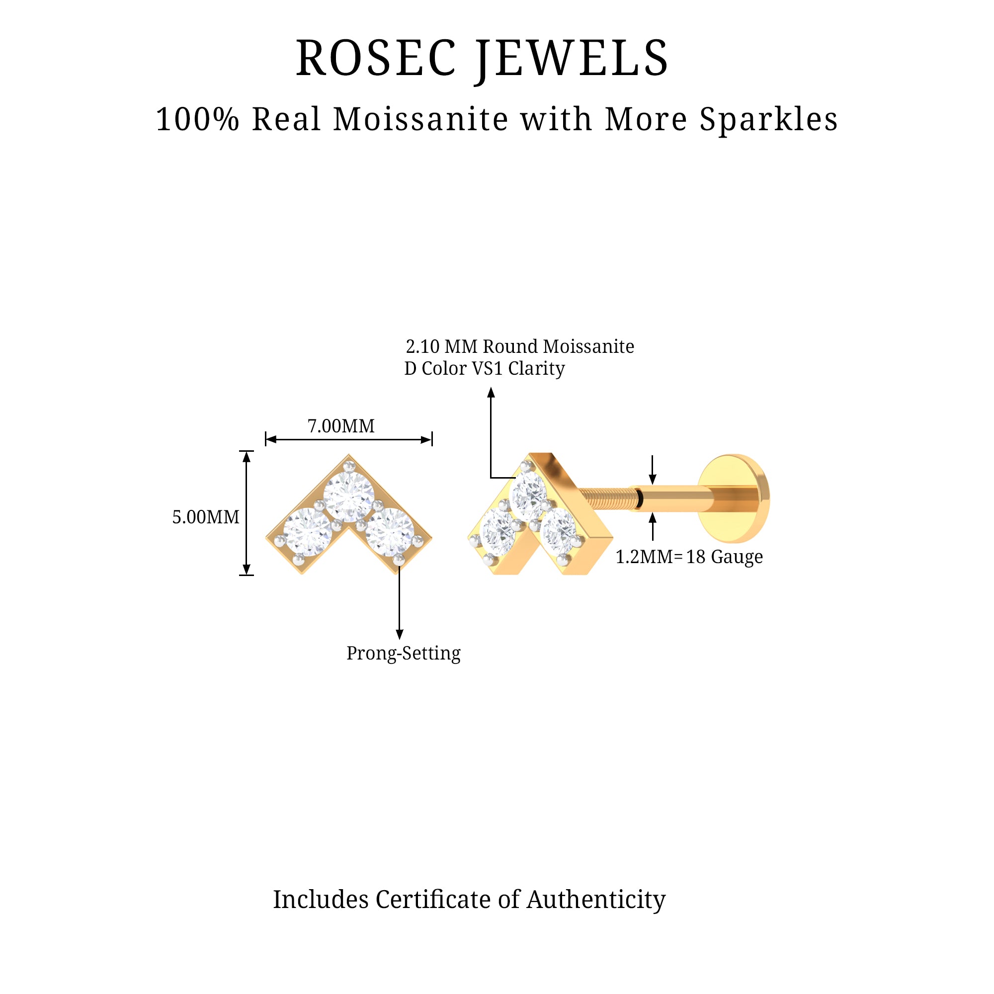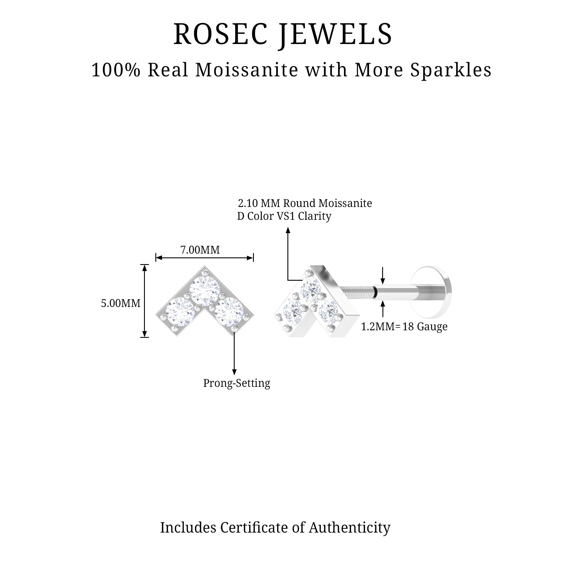 The Chevron Tragus Earring is a fun and unique addition to your body jewelry collection, featuring a V-shape design adorned with prong set round moissanite. This tragus piercing is both cute and quirky. Perfect for a variety of piercings, including helix, rook, conch, and tragus, this earring is sure to make you stand out. Surprise your friend with this conch piercing as a birthday gift and leave them speechless.