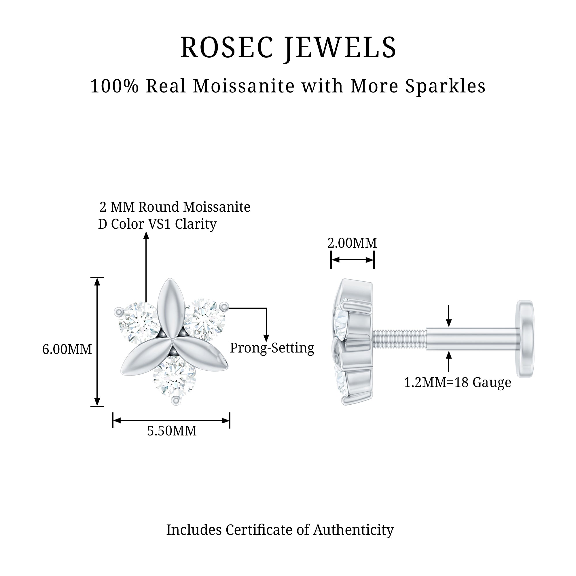Express your love with this exquisite Helix Earring, adorned with Round Cut Moissanites in a Prong Setting and crafted from Gold Metal to create an irresistible look. Its Flat Back and Ball Screw Back Earring closure ensures that it stays securely in place, making it suitable for Rook, Tragus, Conch, Cartilage, Helix, or Lobe piercings. This Flower Earring adds a flawless charm to your appearance thats hard to resist.