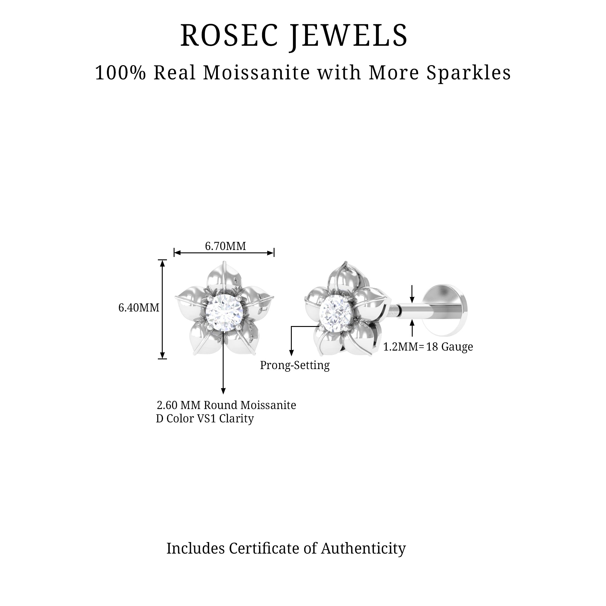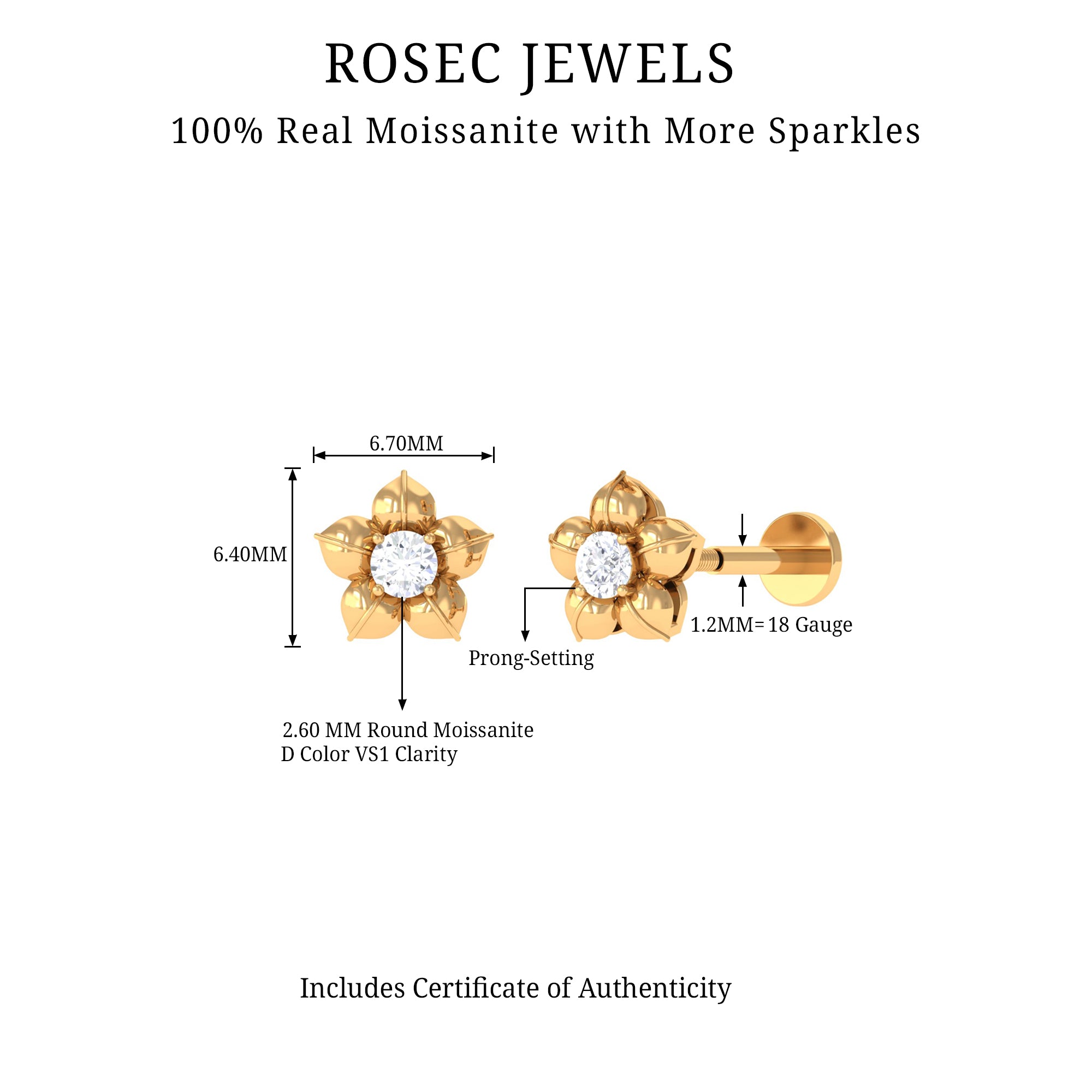 Round Moissanite Gold Flower Earring for Helix Piercing