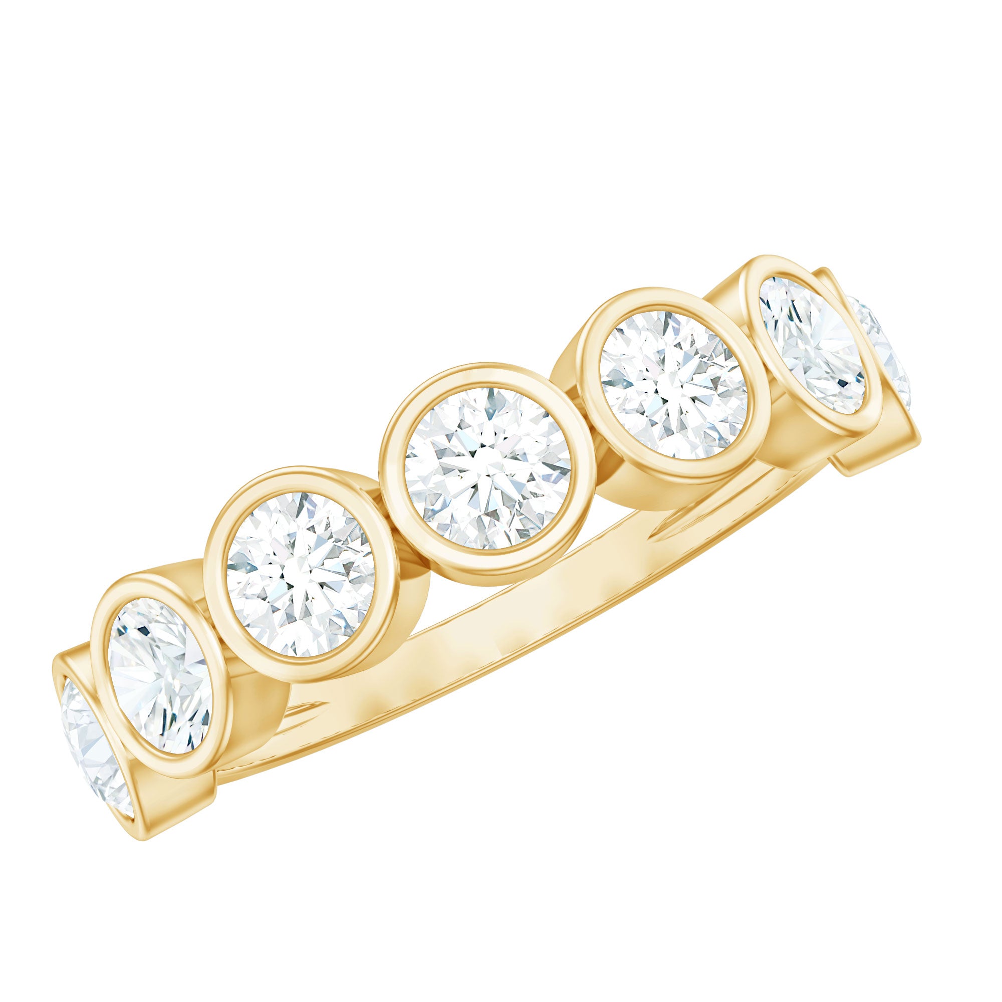Round Moissanite Half Eternity Ring in Bezel Setting