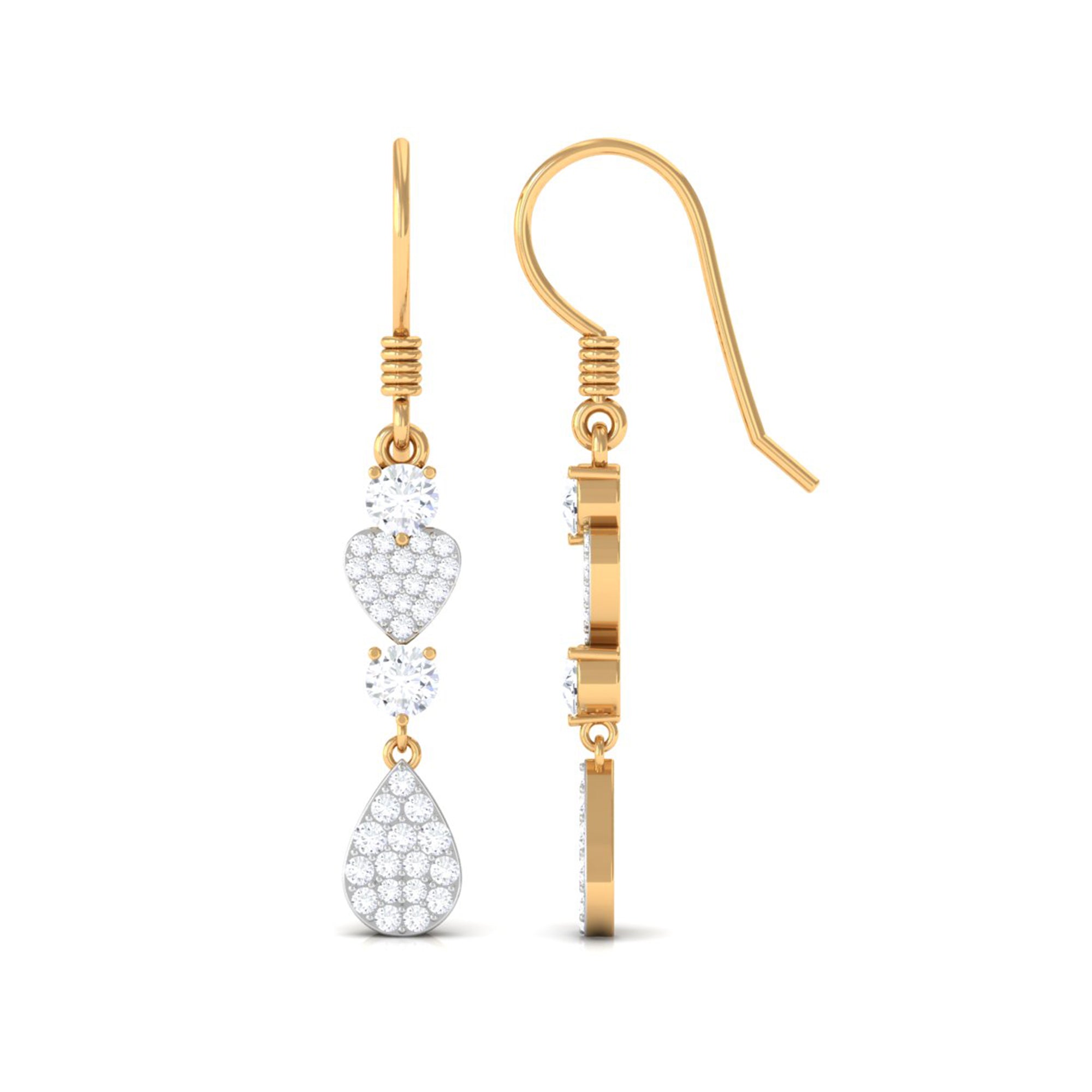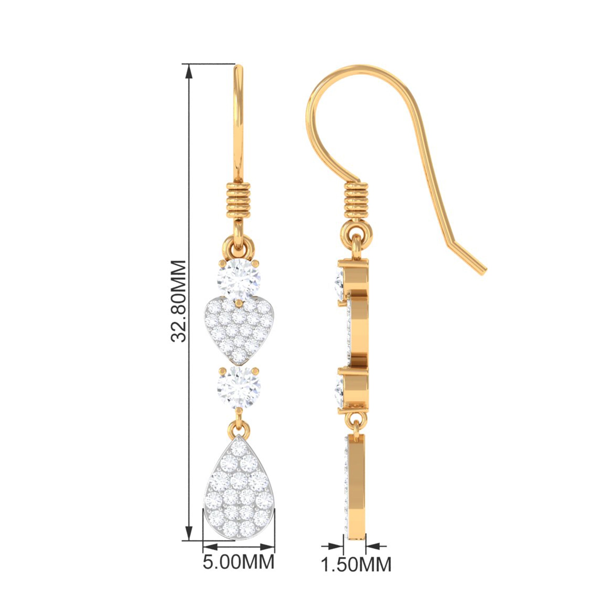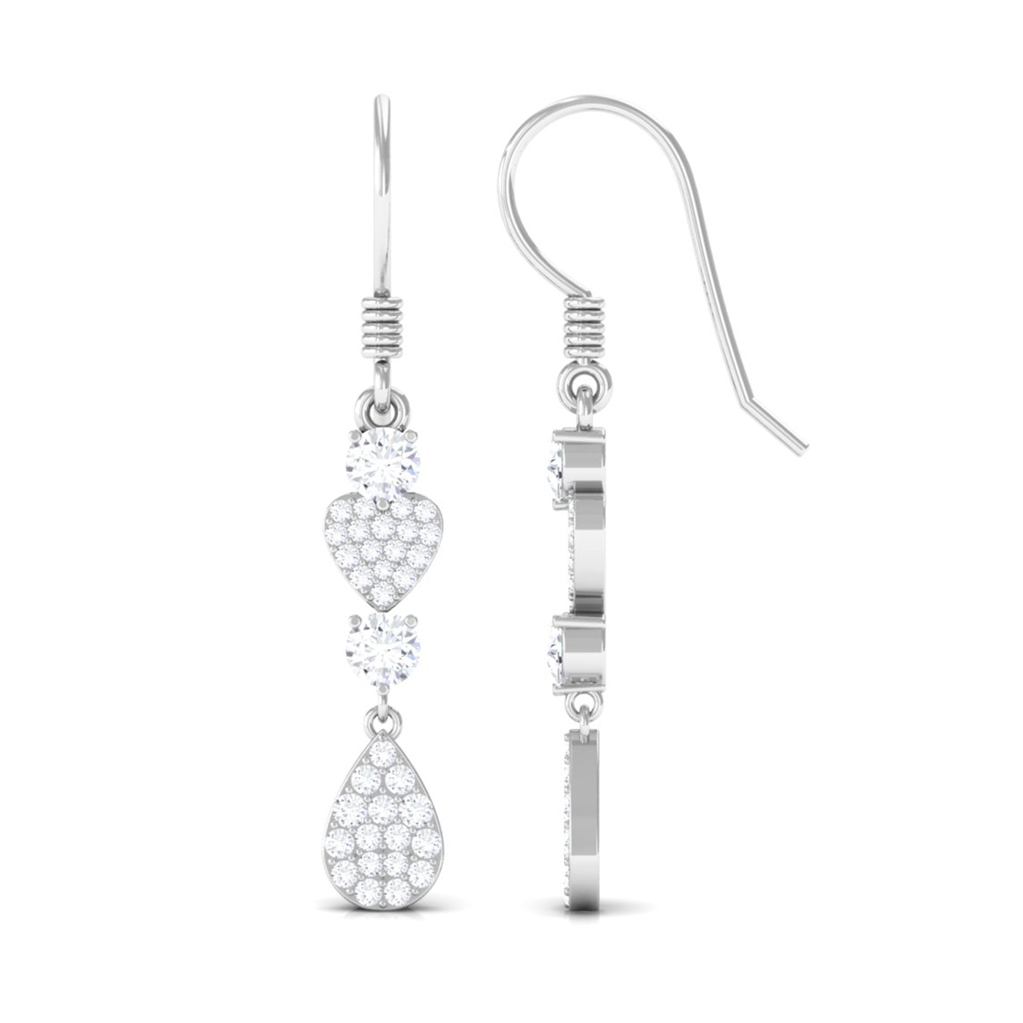 The gorgeous Dangle Drop Earrings are a true symbol of beauty and elegance. Featuring Round Cut Moissanites secured by Illusion Setting set on a heart design, the Heart Dangle Earrings have detailings that you will fall for. The Moissanite Earrings secure comfortably with fish hook closure. Make your casual or evening attire fashionable by styling these Heart Earrings with them.