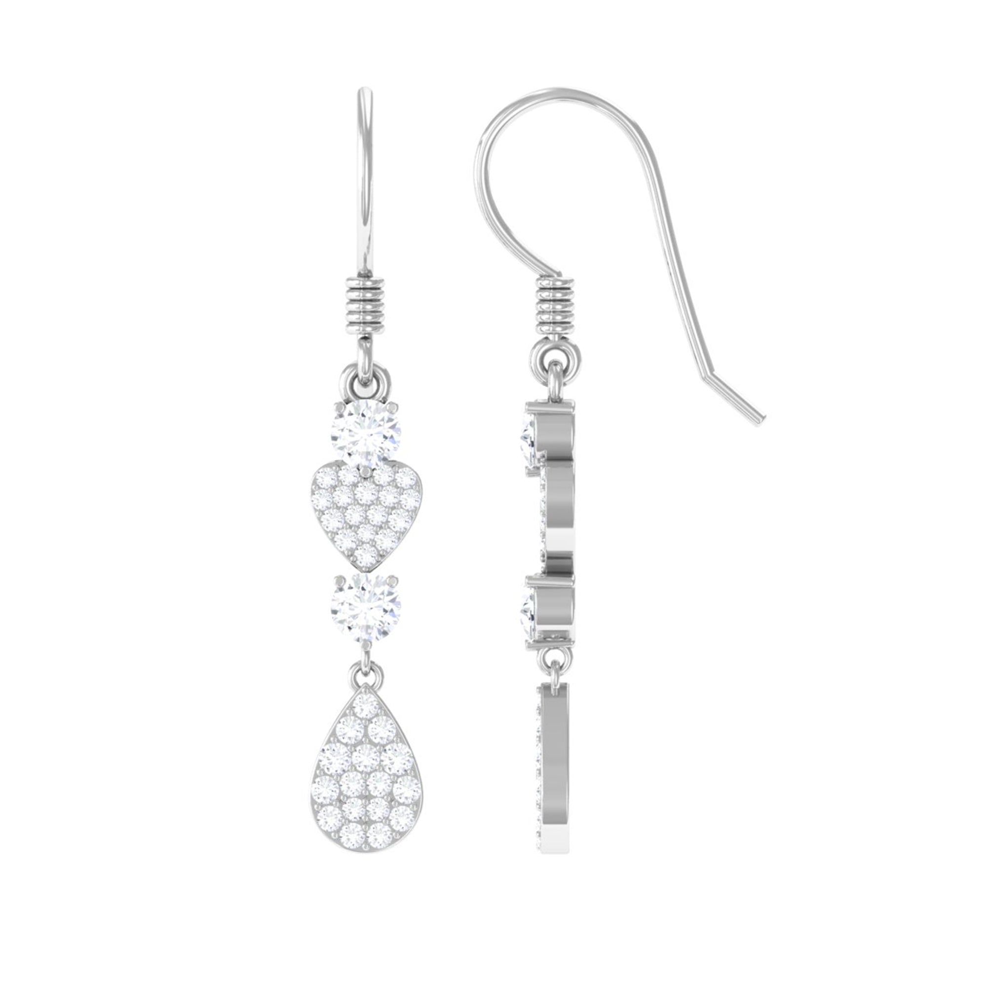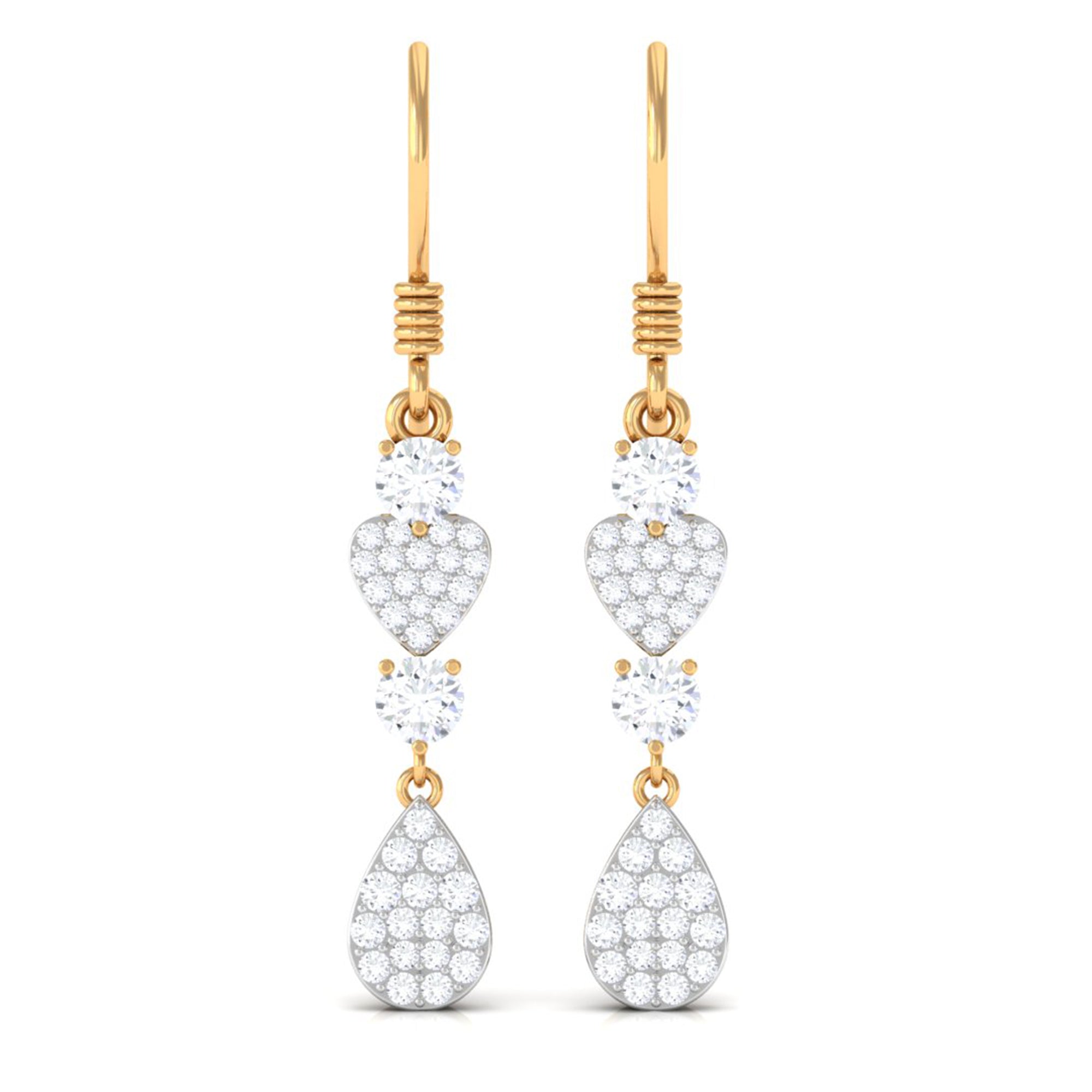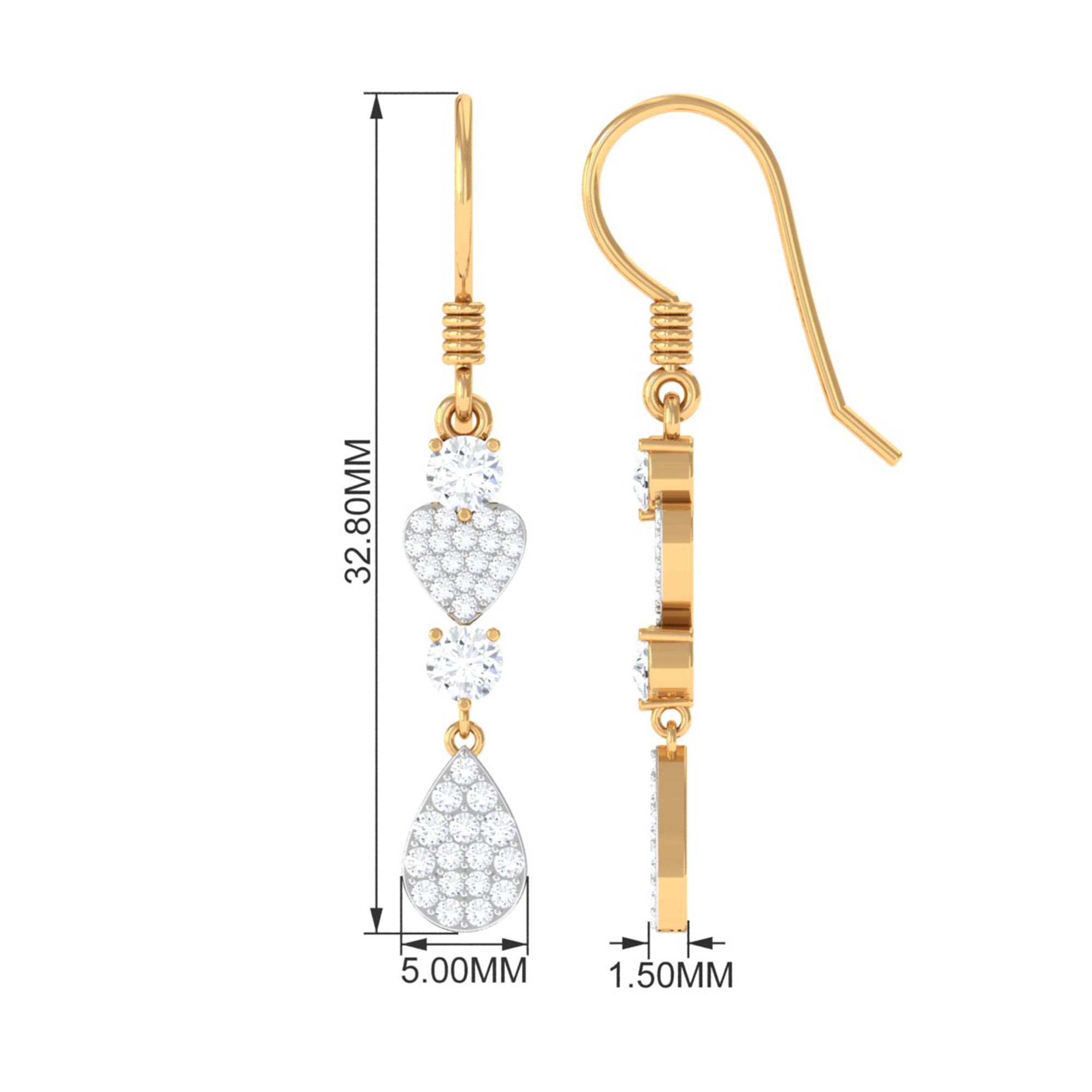The gorgeous Dangle Drop Earrings are a true symbol of beauty and elegance. Featuring Round Cut Moissanites secured by Illusion Setting set on a heart design, the Heart Dangle Earrings have detailings that you will fall for. The Moissanite Earrings secure comfortably with fish hook closure. Make your casual or evening attire fashionable by styling these Heart Earrings with them.