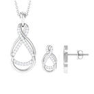 Elevate your style and love in a different way with this moissanite infinity jewelry set. This stunning jewelry set contains a sparkling moissanite infinity pendant and infinity stud earrings. The pendant features a round moissanite gemstone encased in a graceful infinity symbol, while the earrings feature matching moissanite stones in a pave setting. This is the perfect way to show your love and commitment to your partner.