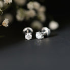 Round Moissanite Minimal Solitaire Silver Stud Earrings in Prong Setting