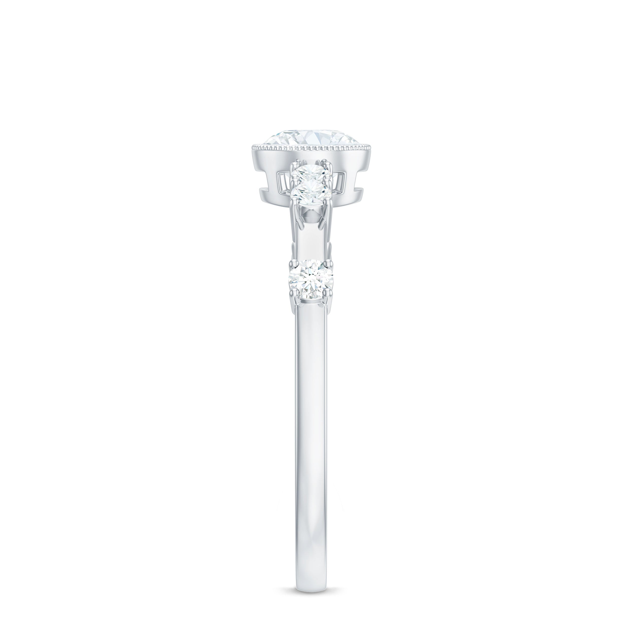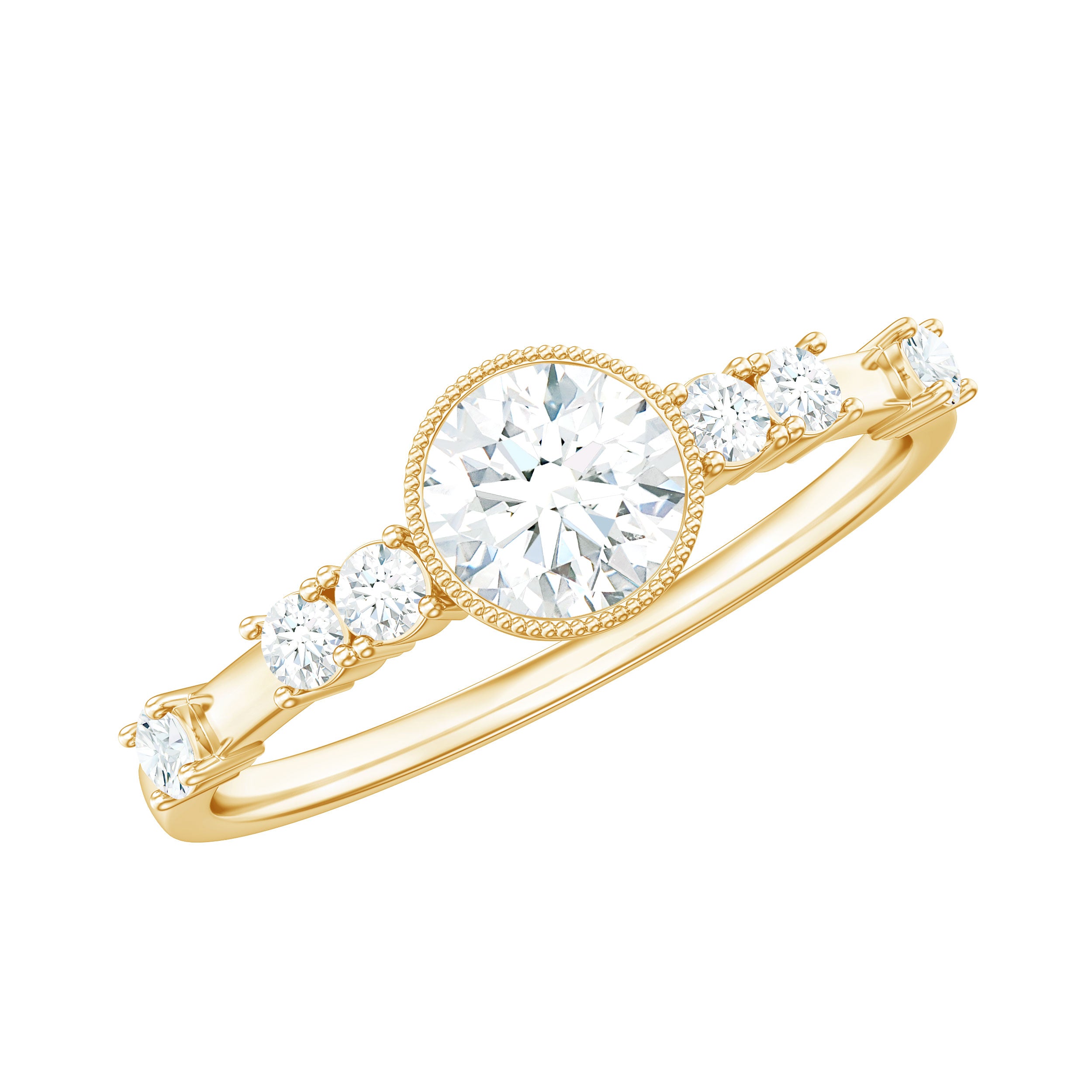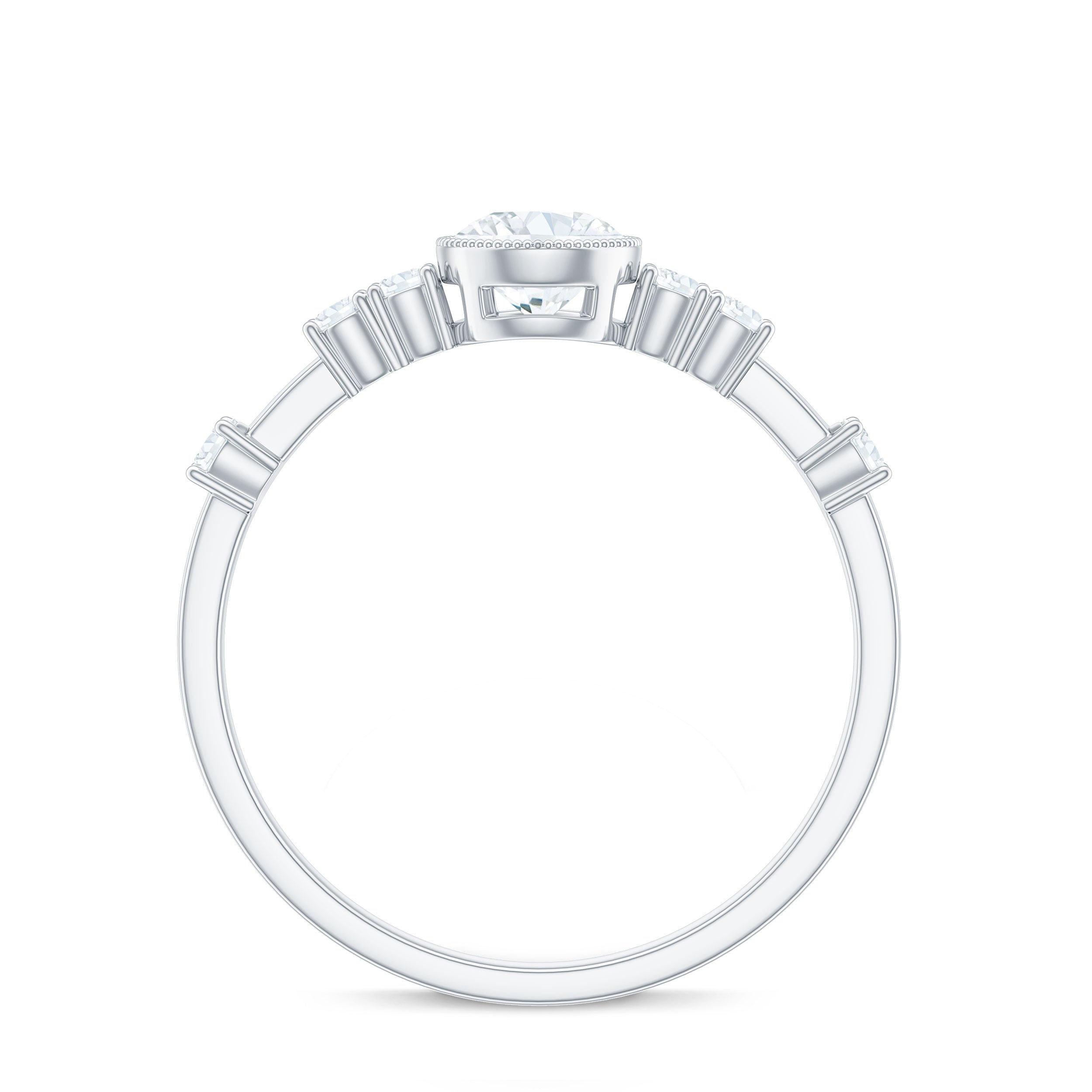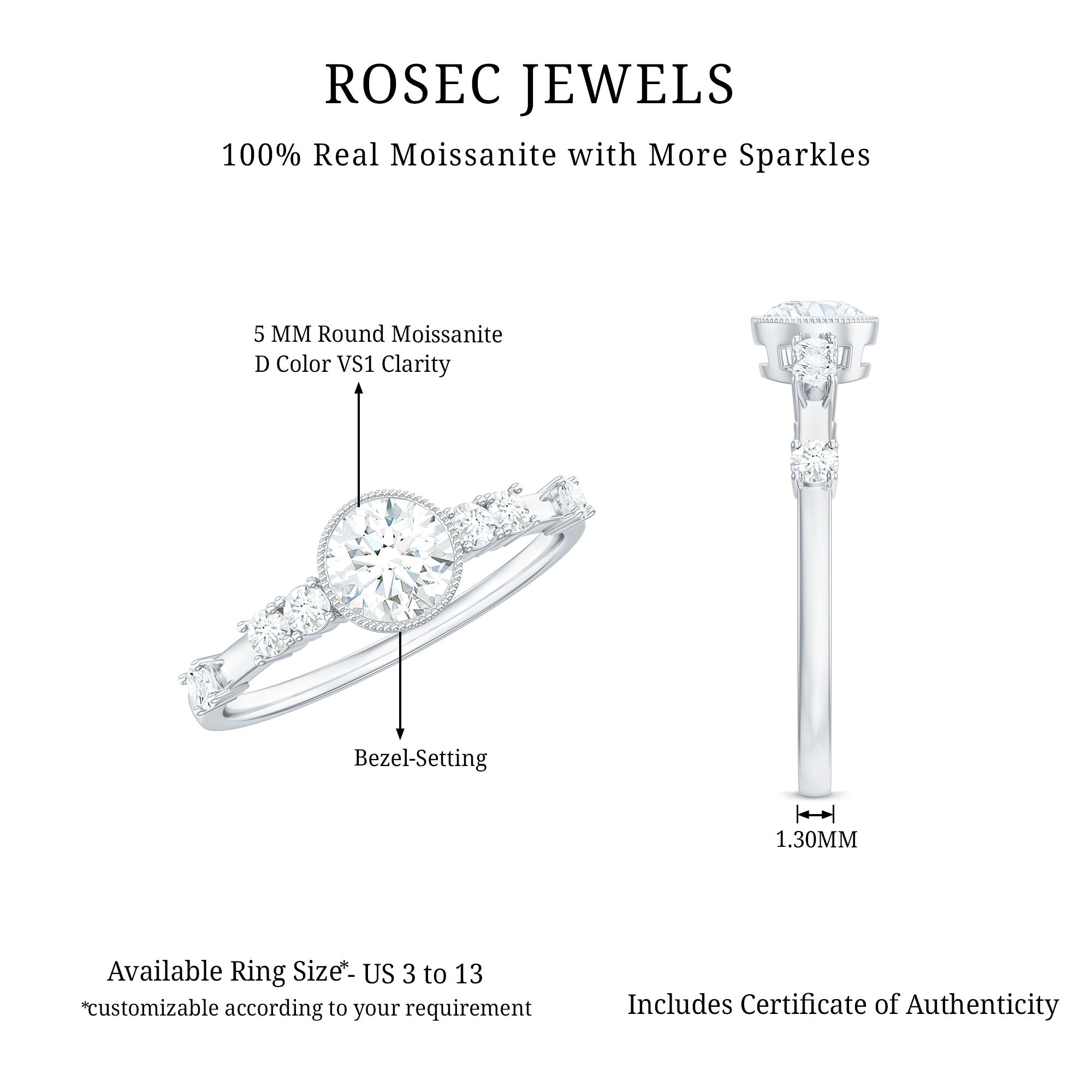 5mm Round Certified Moissanite Solitaire Engagement Ring in Bezel Setting
