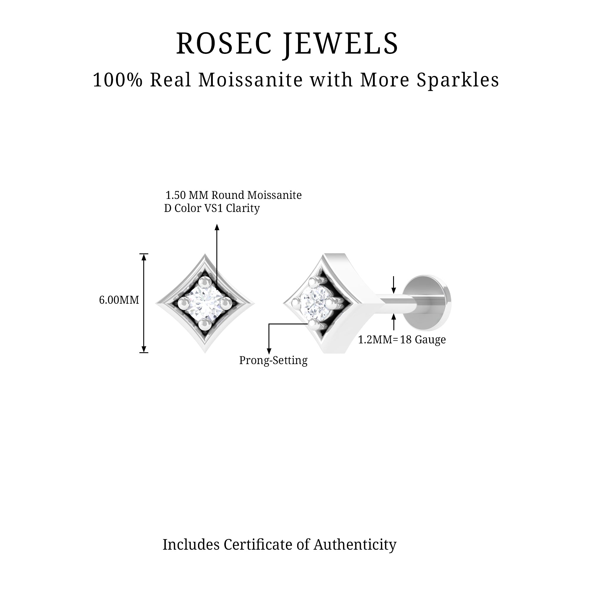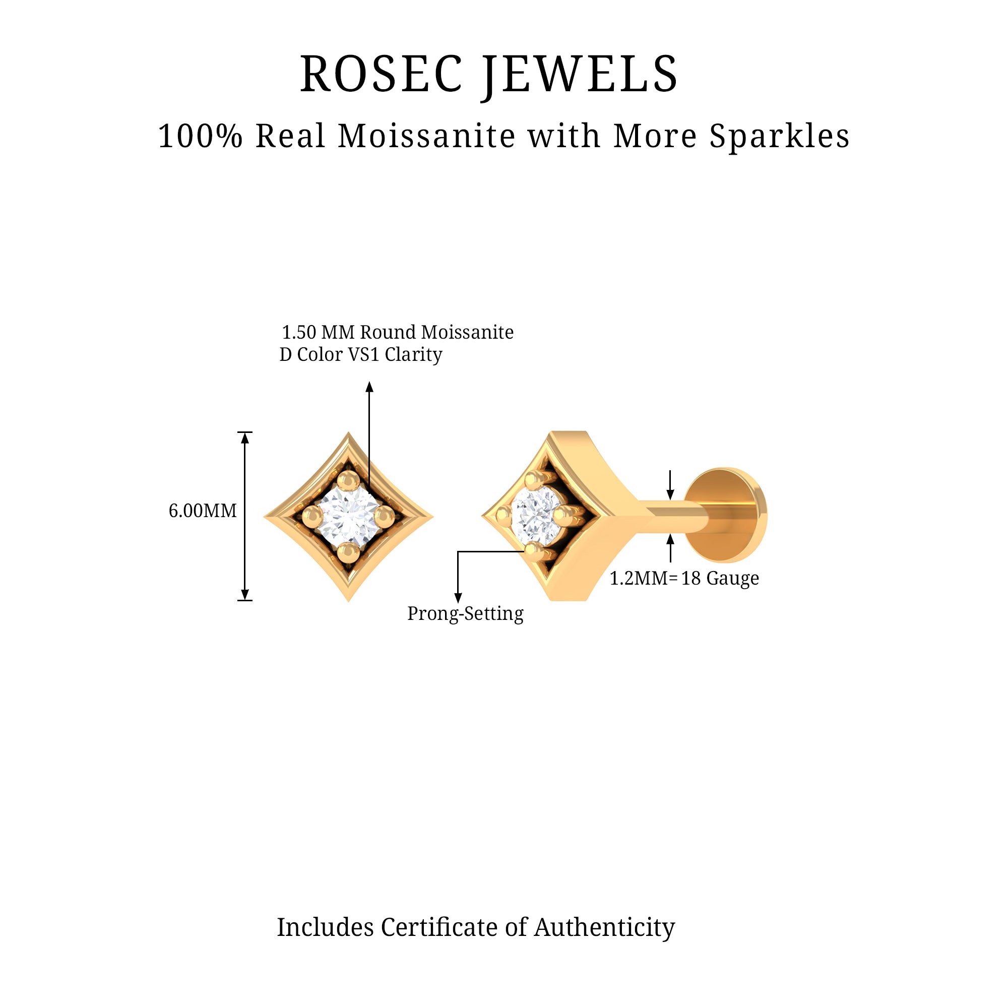 Unleash your unique style with this stunning Moissanite Nose Pin featuring a Round Moissanite in Prong Setting, set on an eye-catching Geometric Design. Perfectly crafted from high-quality Gold, it makes an excellent piece of Body Jewelry that can be worn every day to complement your favorite outfits. The secure Flat Back Closure ensures it stays in place throughout the day, allowing you to confidently flaunt your style and receive compliments.