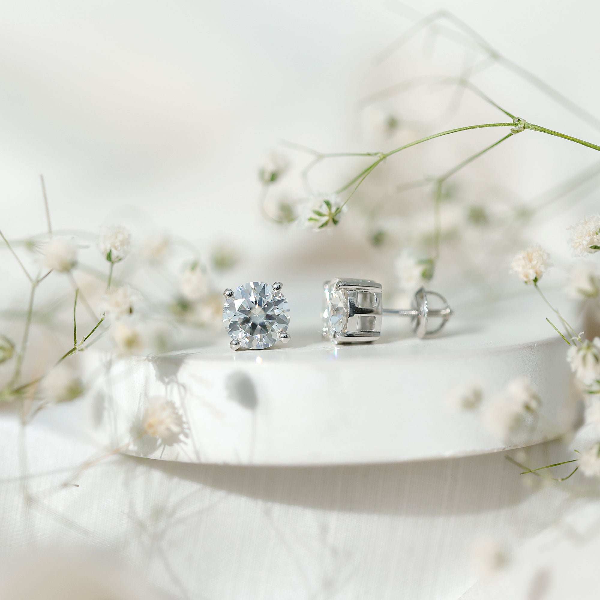 Round Moissanite Solitaire Stud Earrings in Claw Setting