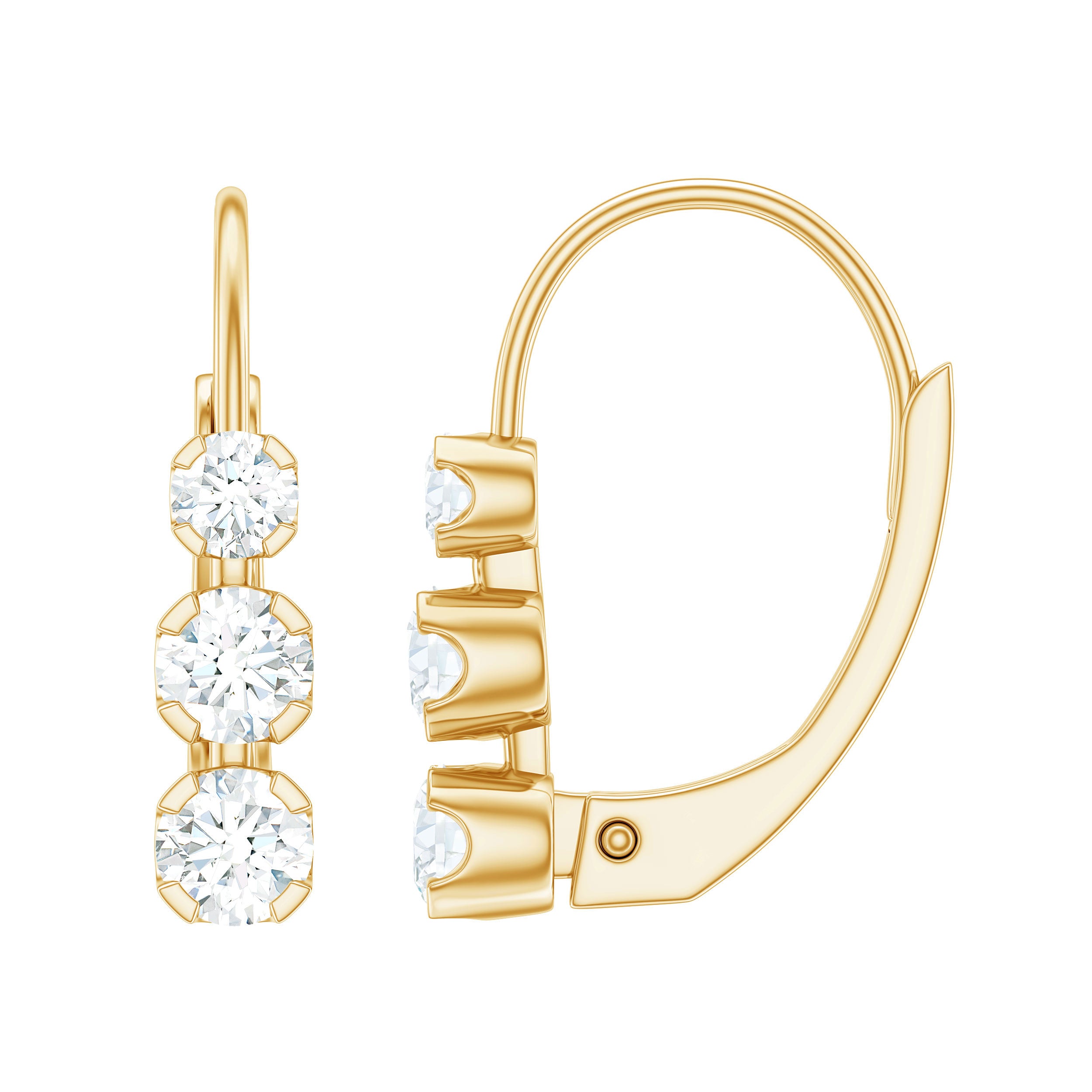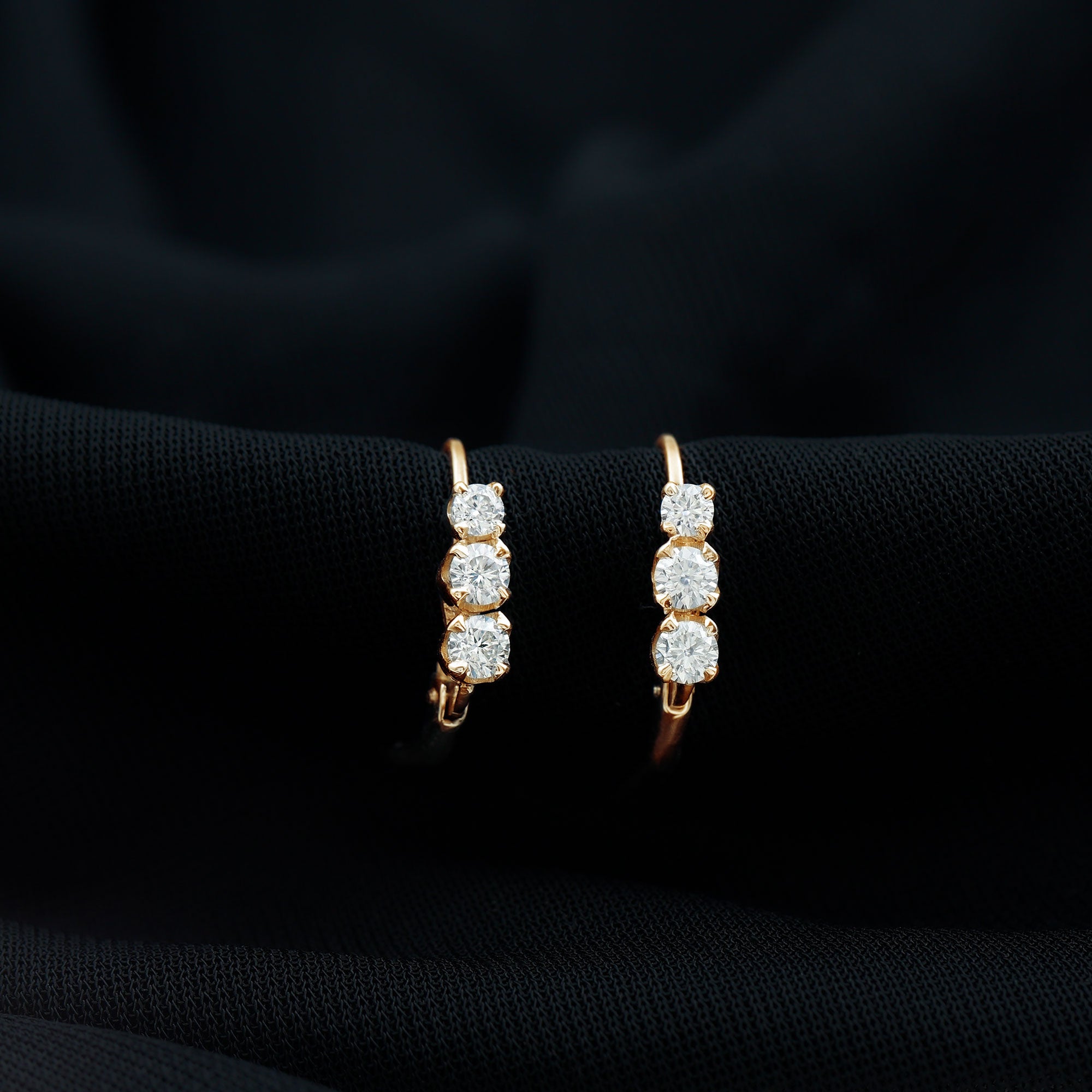 Round Moissanite Three Stone Hoop Earrings with Lever Back
