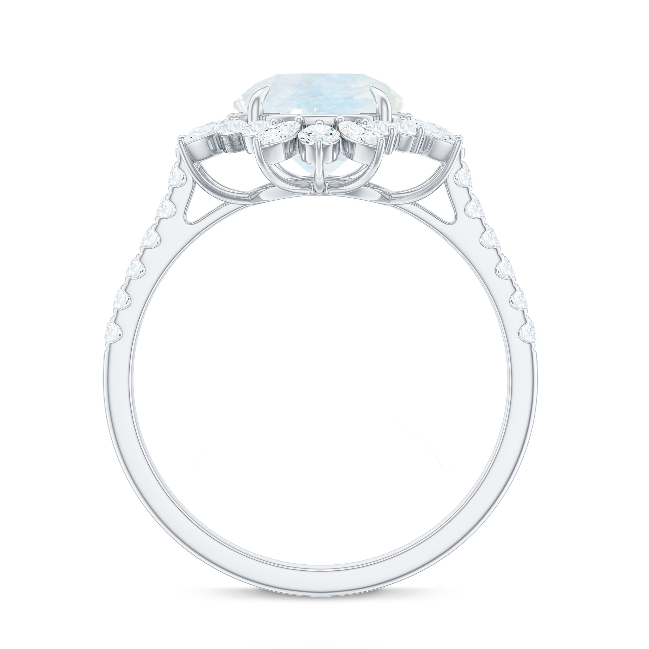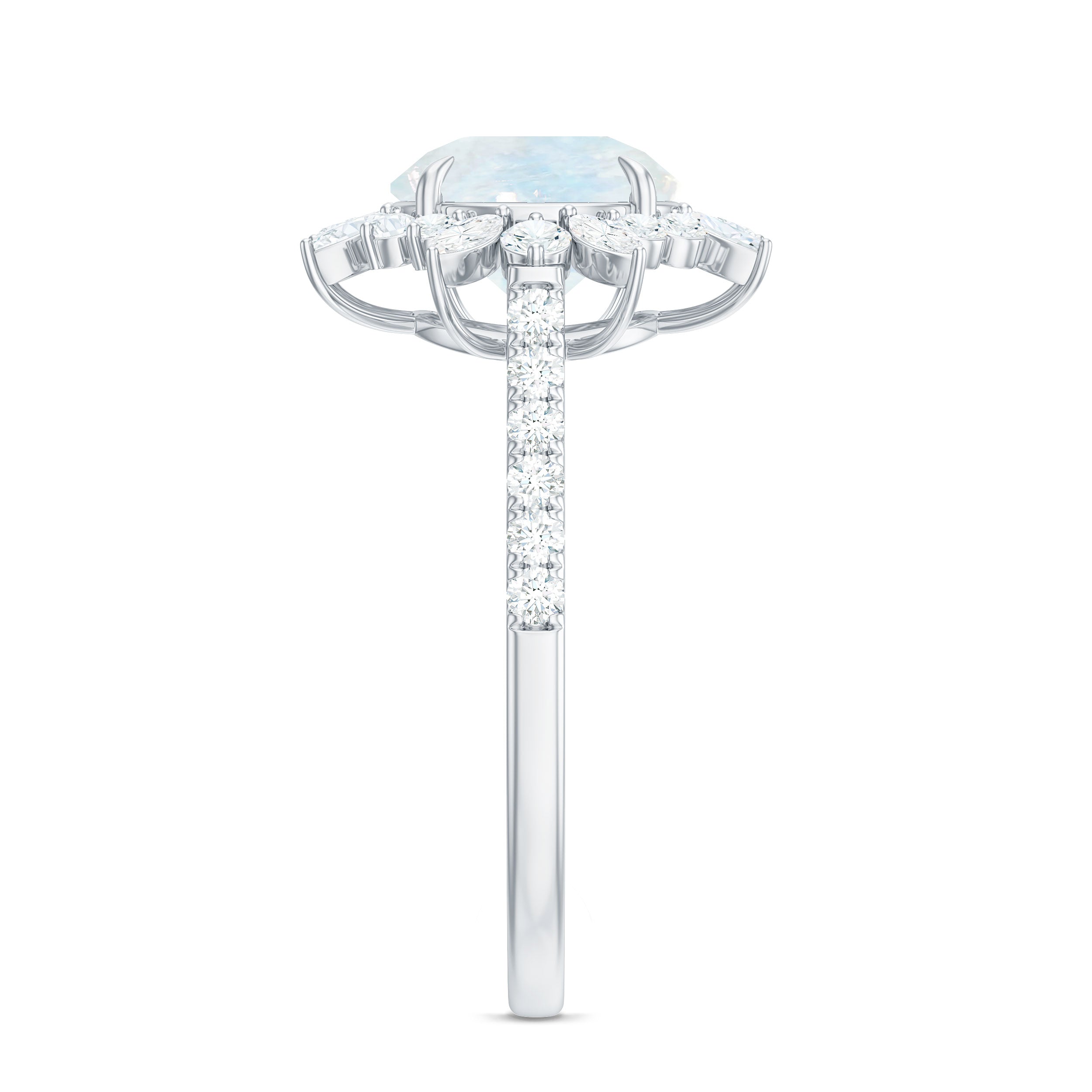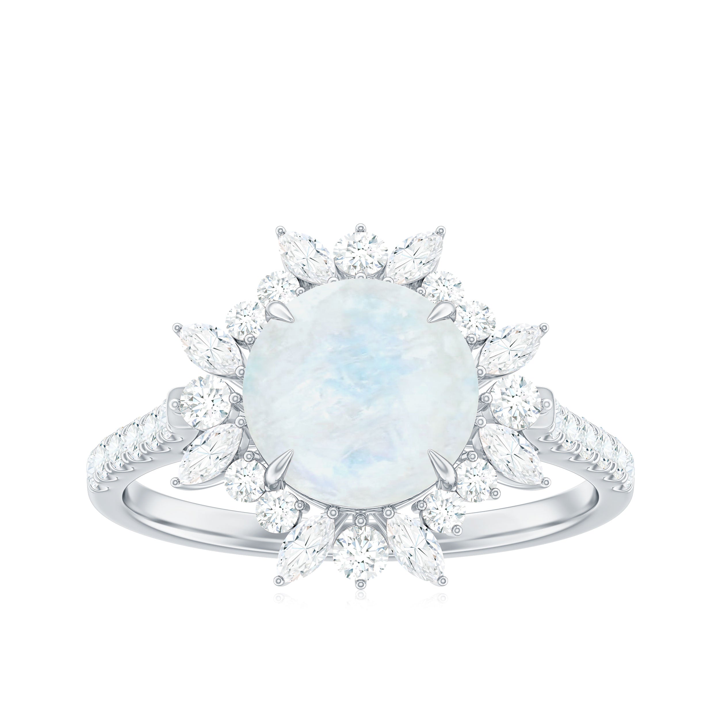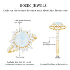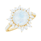 Round Moonstone Statement Ring with Moissanite Floral Halo