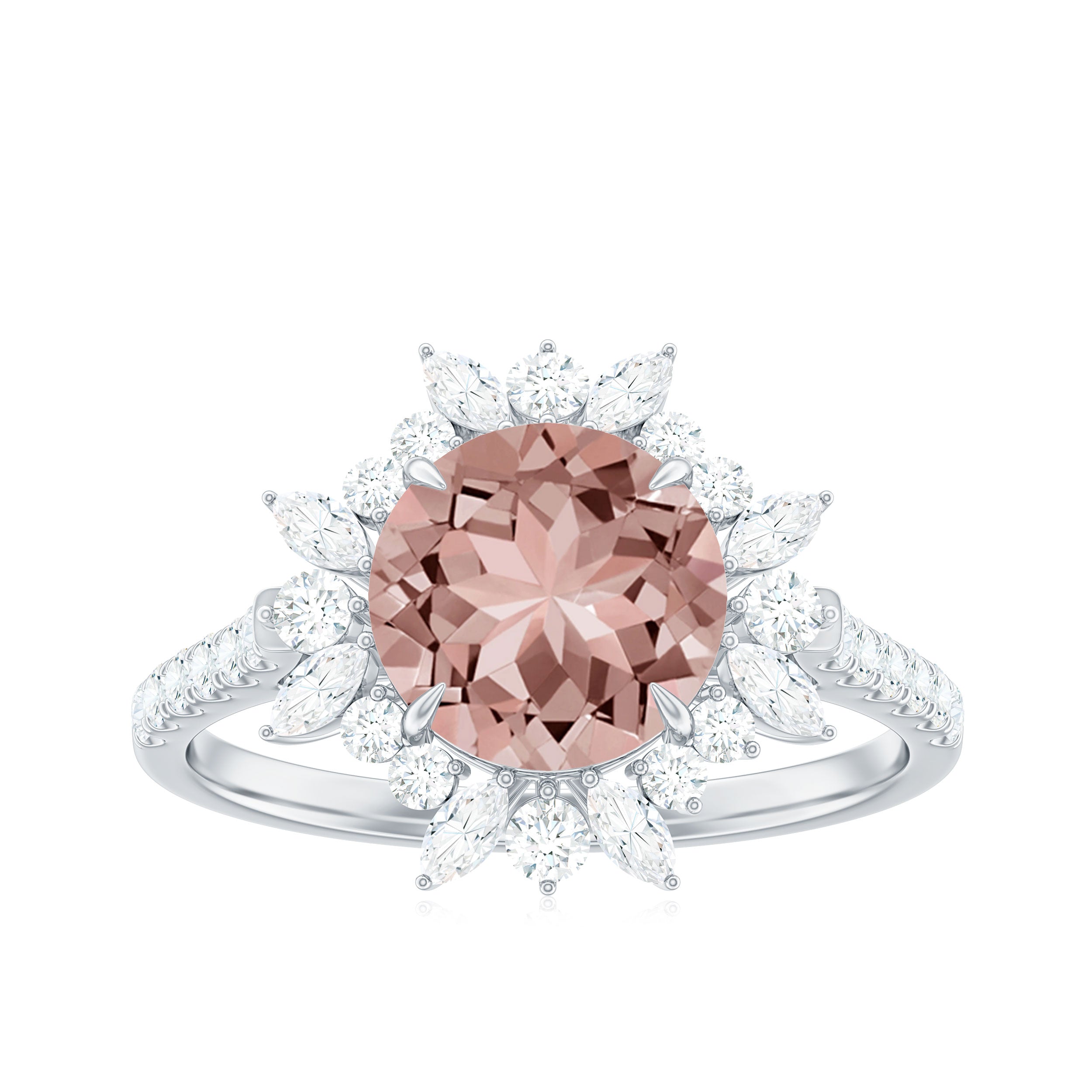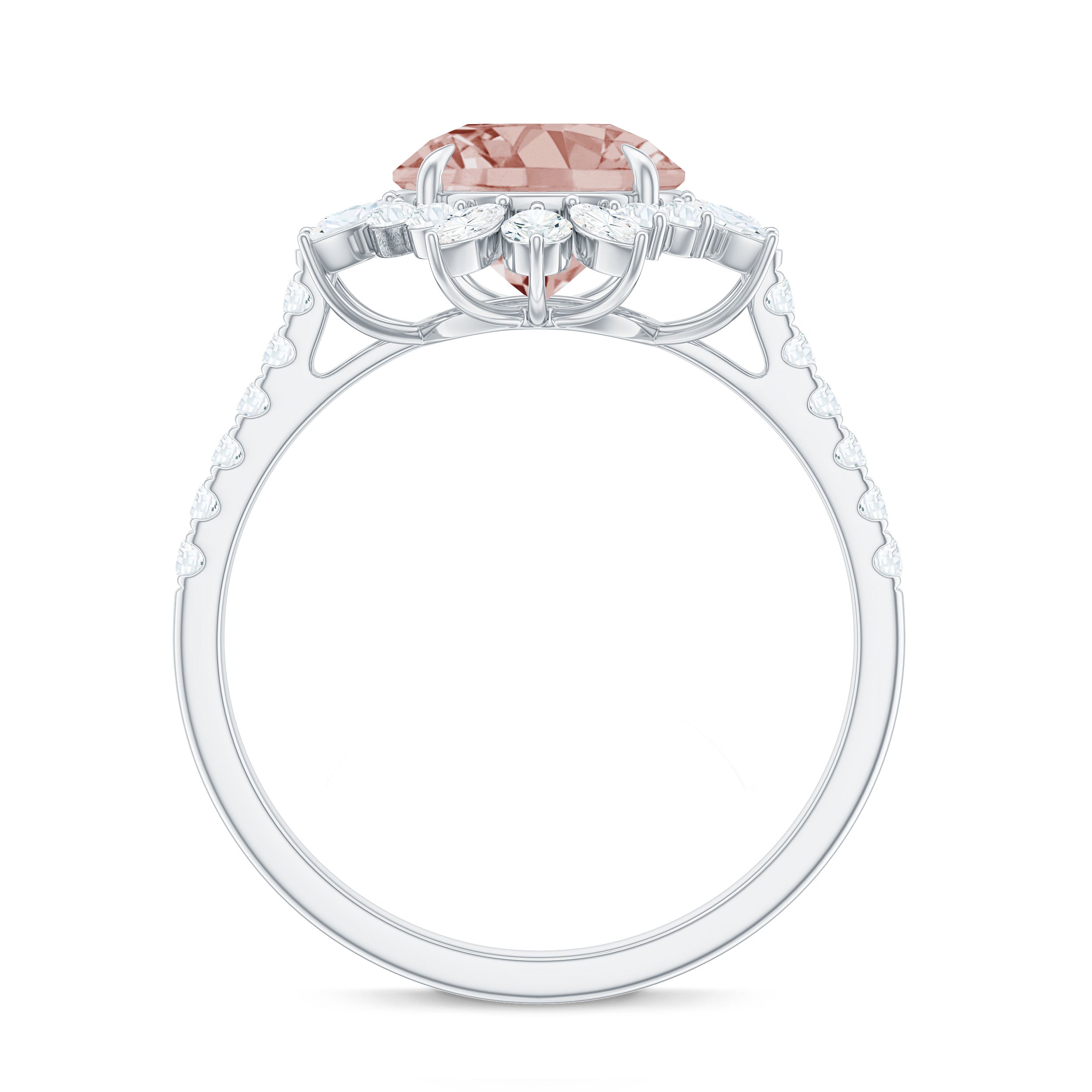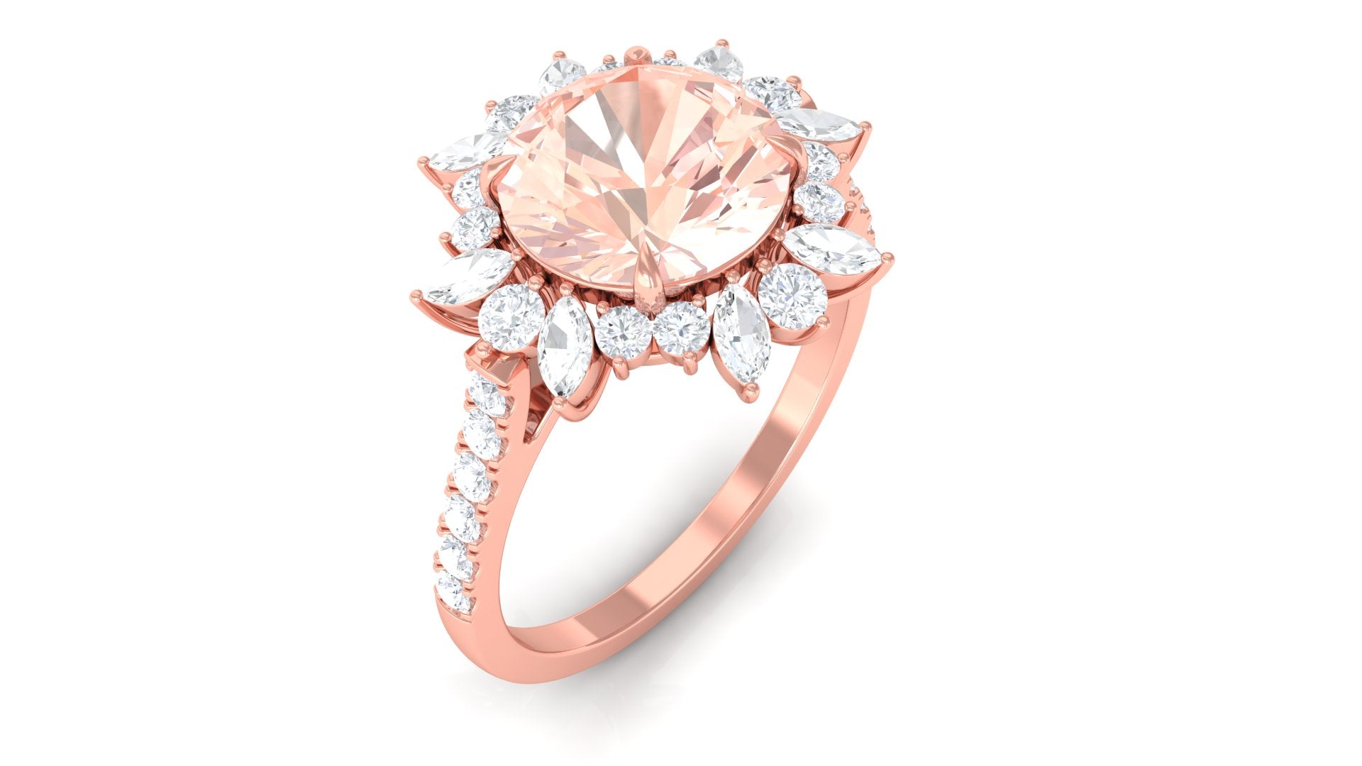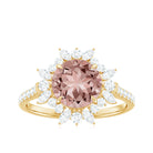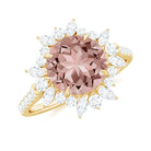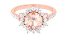 Round Morganite Statement Engagement Ring with Moissanite Floral Halo