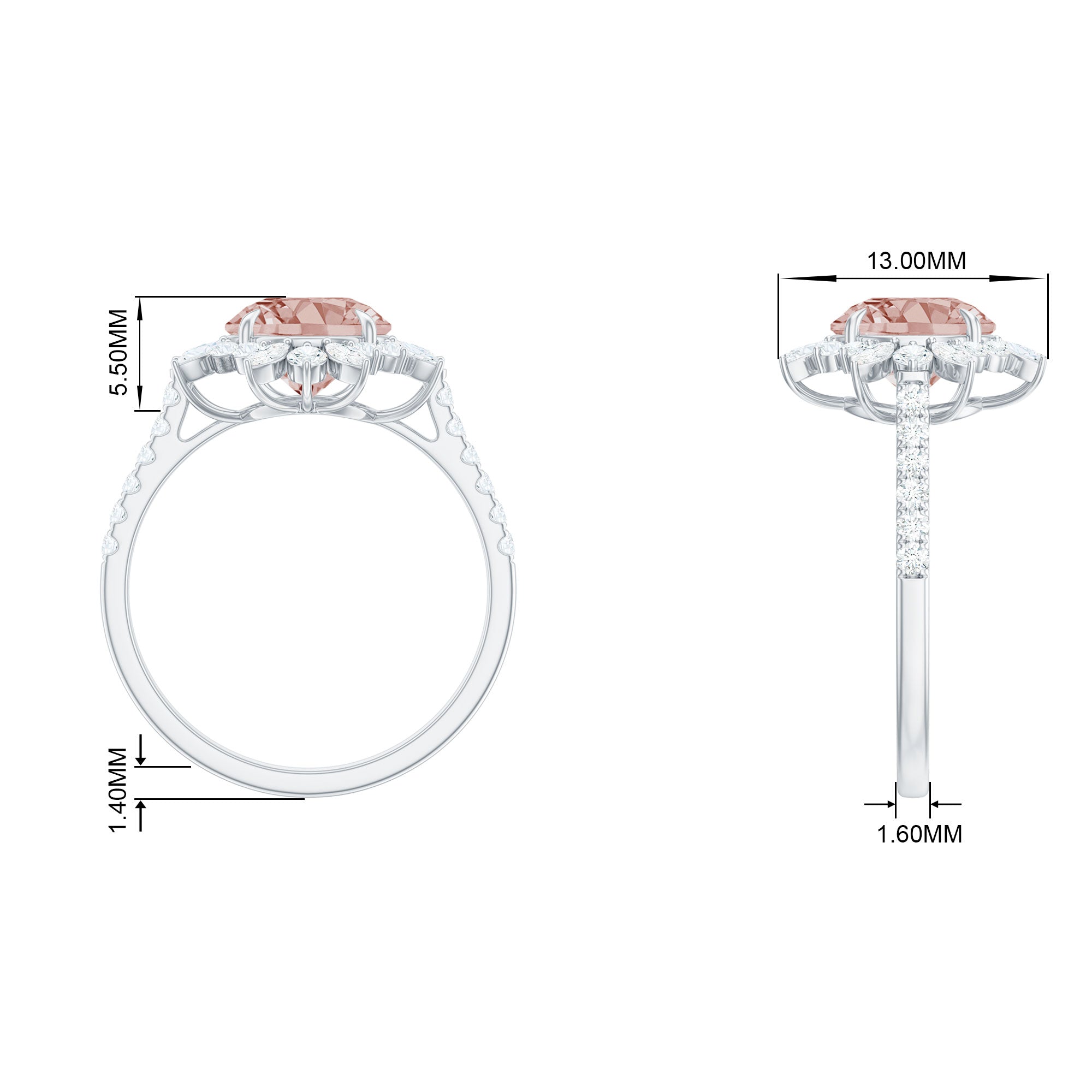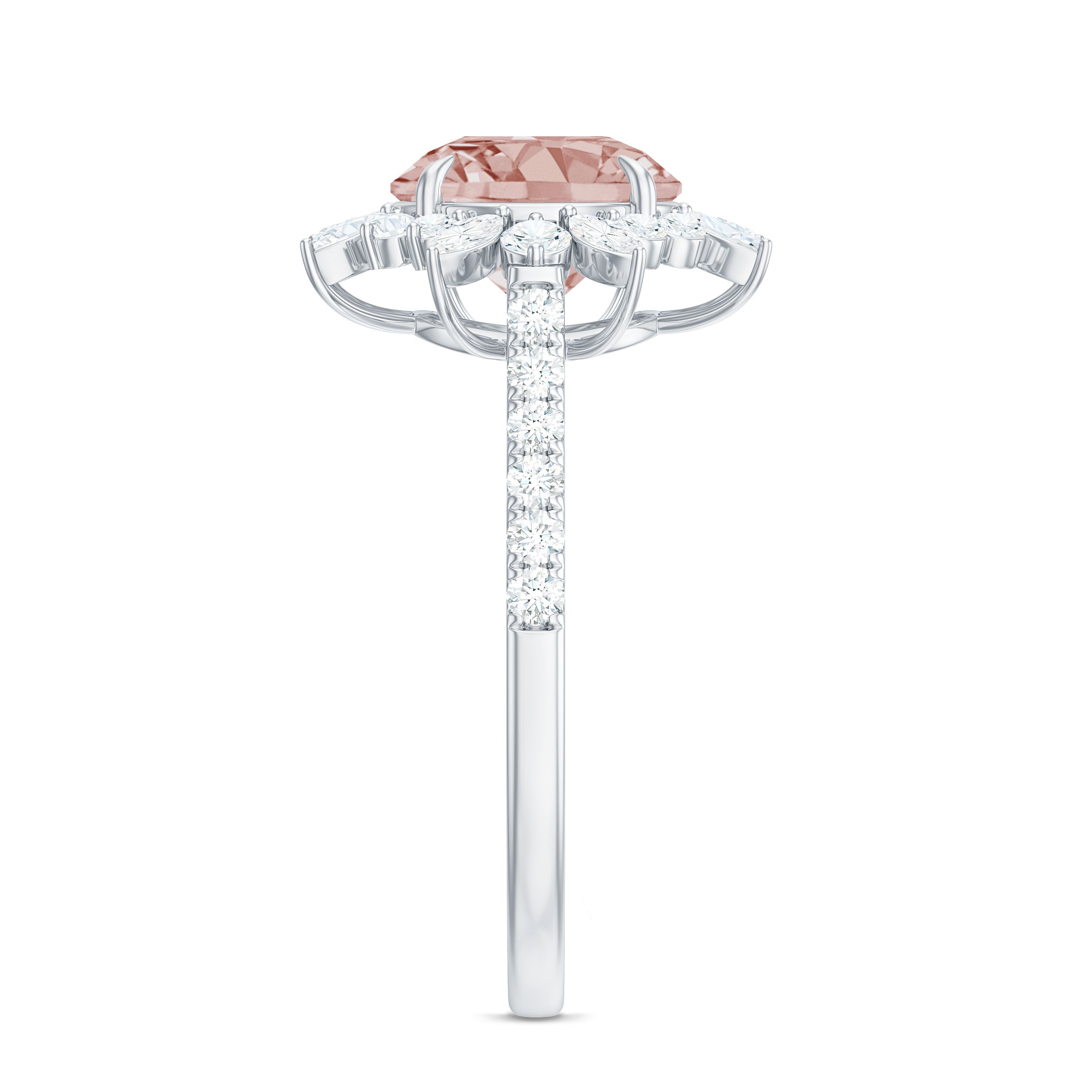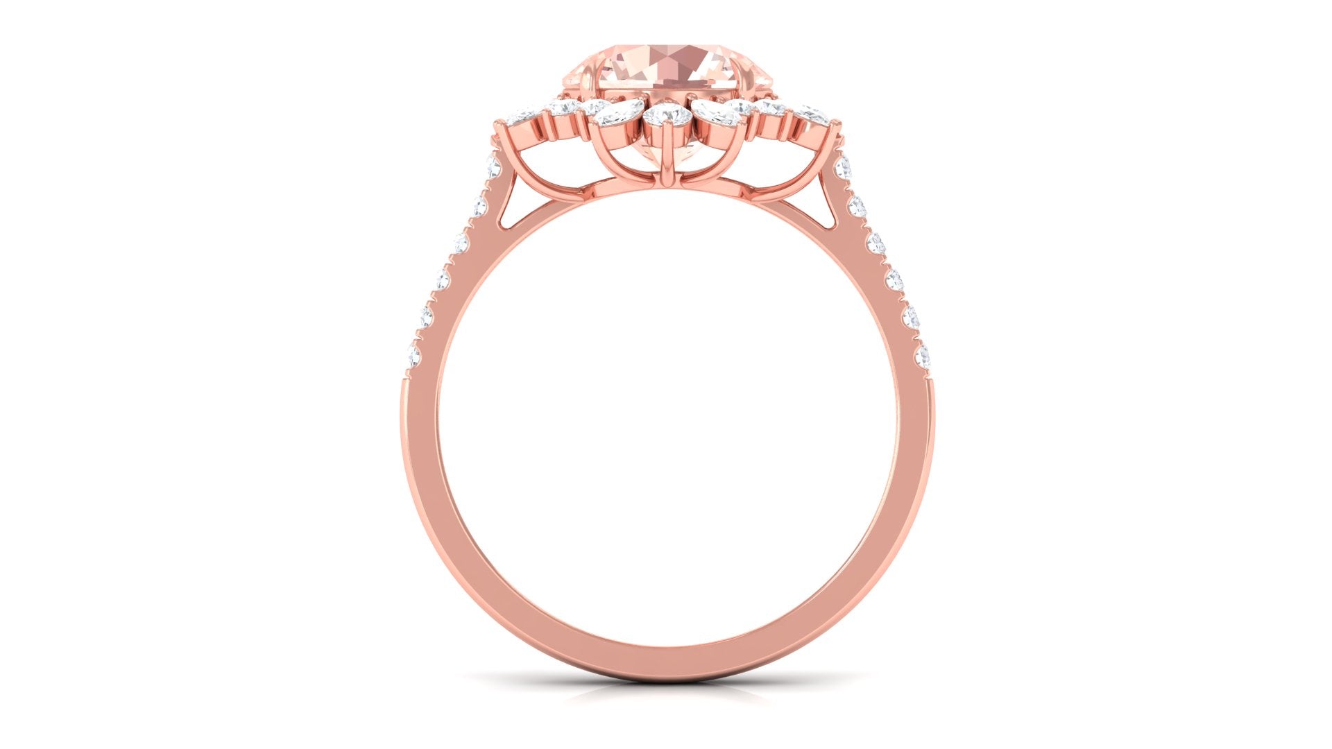Round Morganite Statement Engagement Ring with Moissanite Floral Halo