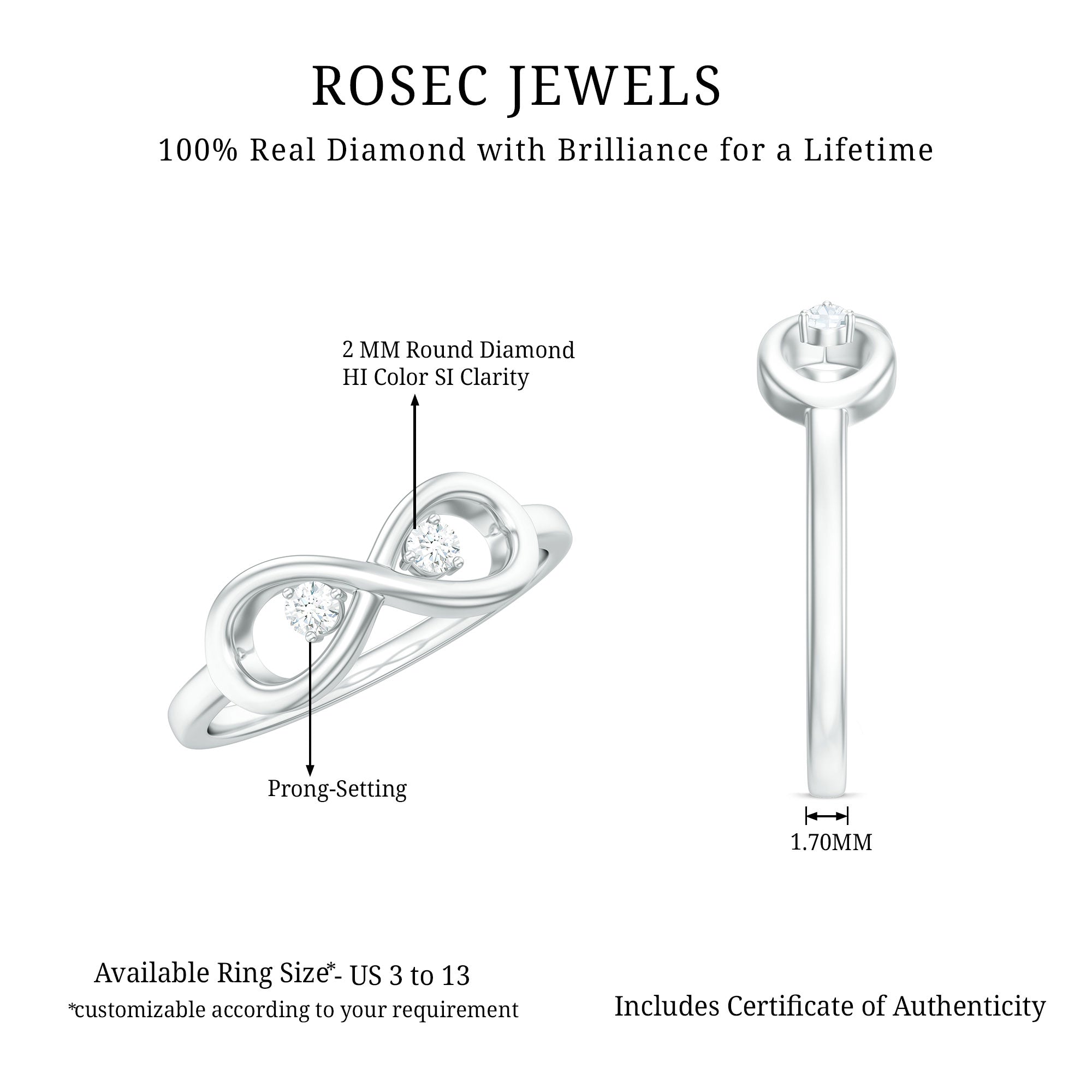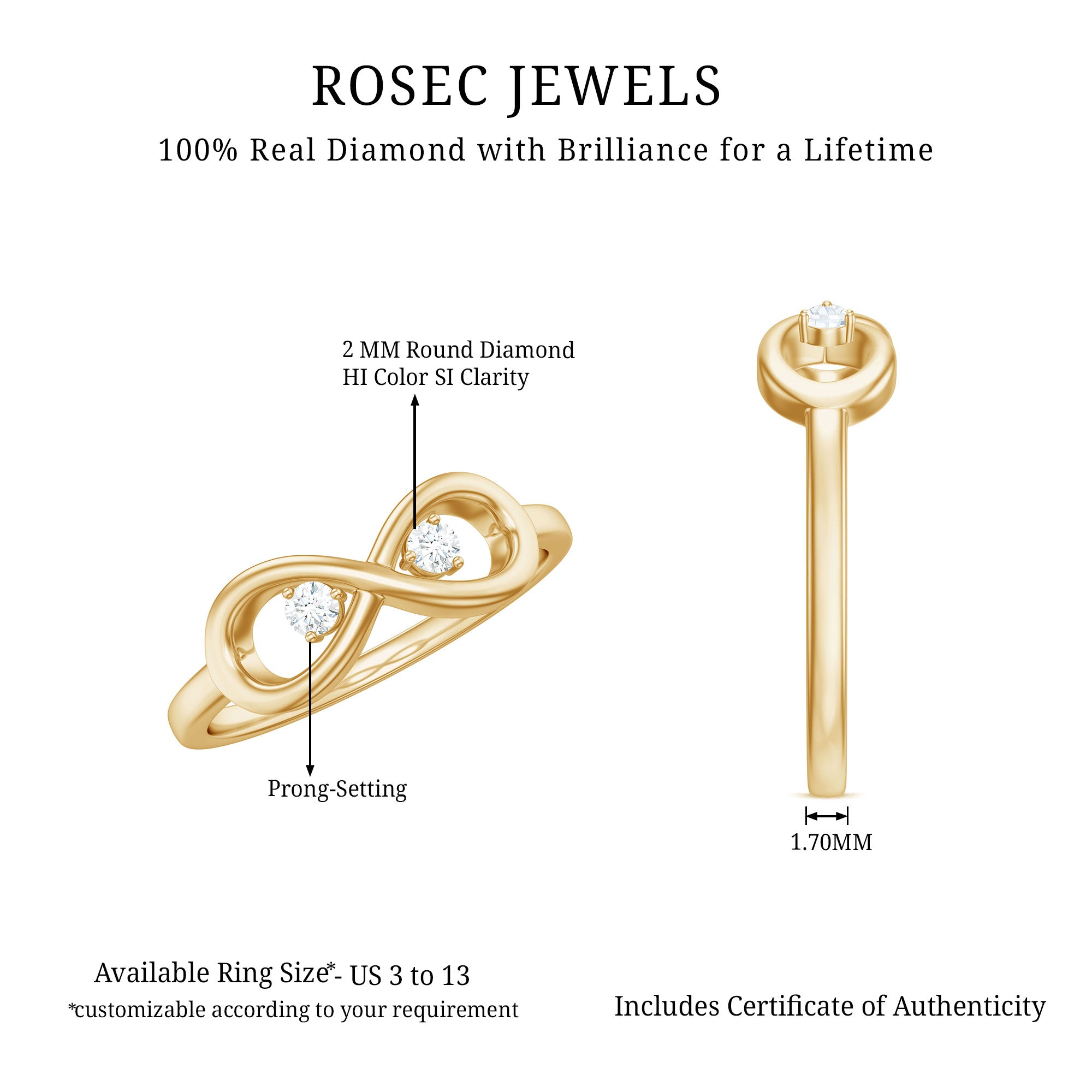 As exquisite as your beloved, this Infinity Promise Ring is embellished with two Round Shape Diamond secured by Prong Setting. The Diamond Ring is crafted with Hallmarked Metal that will give a Fab look to her on a special day. Declare your feelings for your partner by getting this Diamond Infinity Ring as a gift for her, this ring will stay close to her forever.