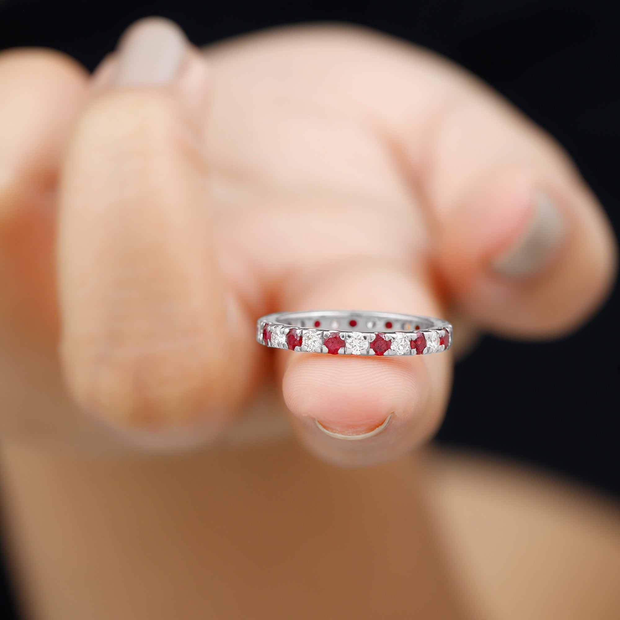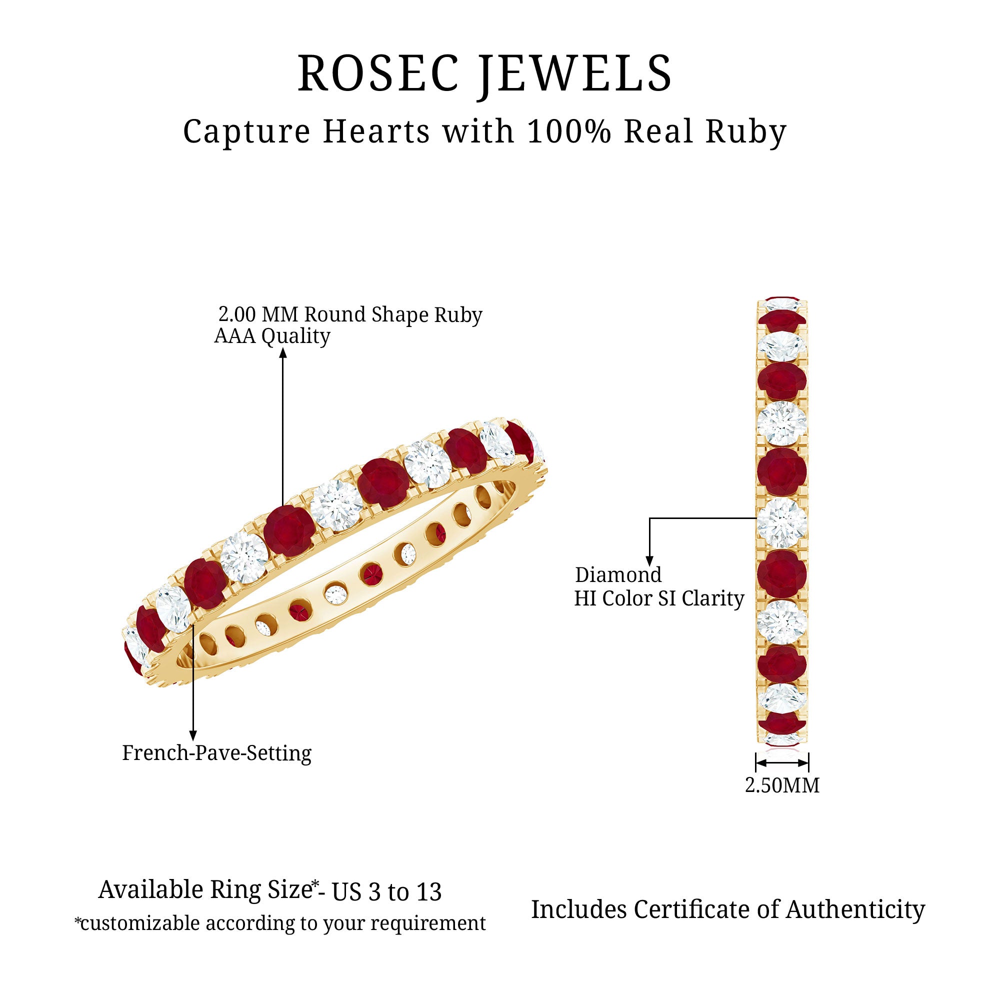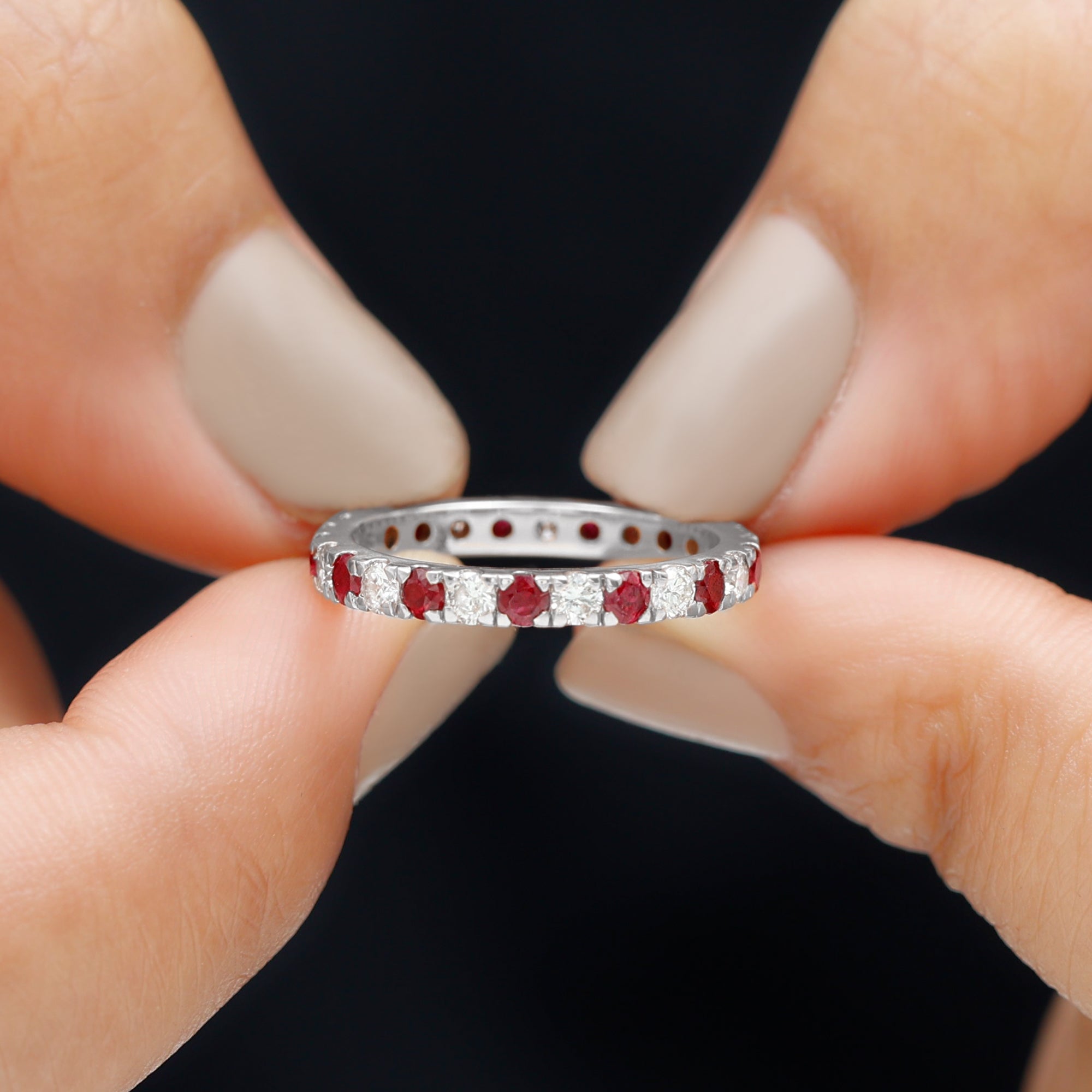 Elevate the moment with this stunning Full Eternity Band, featuring Round Shape Natural Ruby and Diamond set in a delicate French Pave Setting. This endlessly sparkling design is an ideal choice for a Wedding or Anniversary Ring, symbolizing everlasting love and elegance.