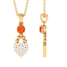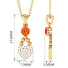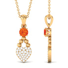 Round Orange Sapphire and Diamond Heart Drop Pendant