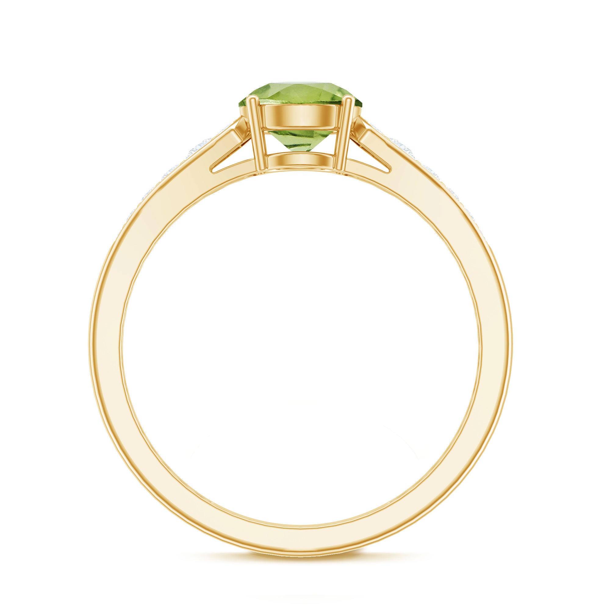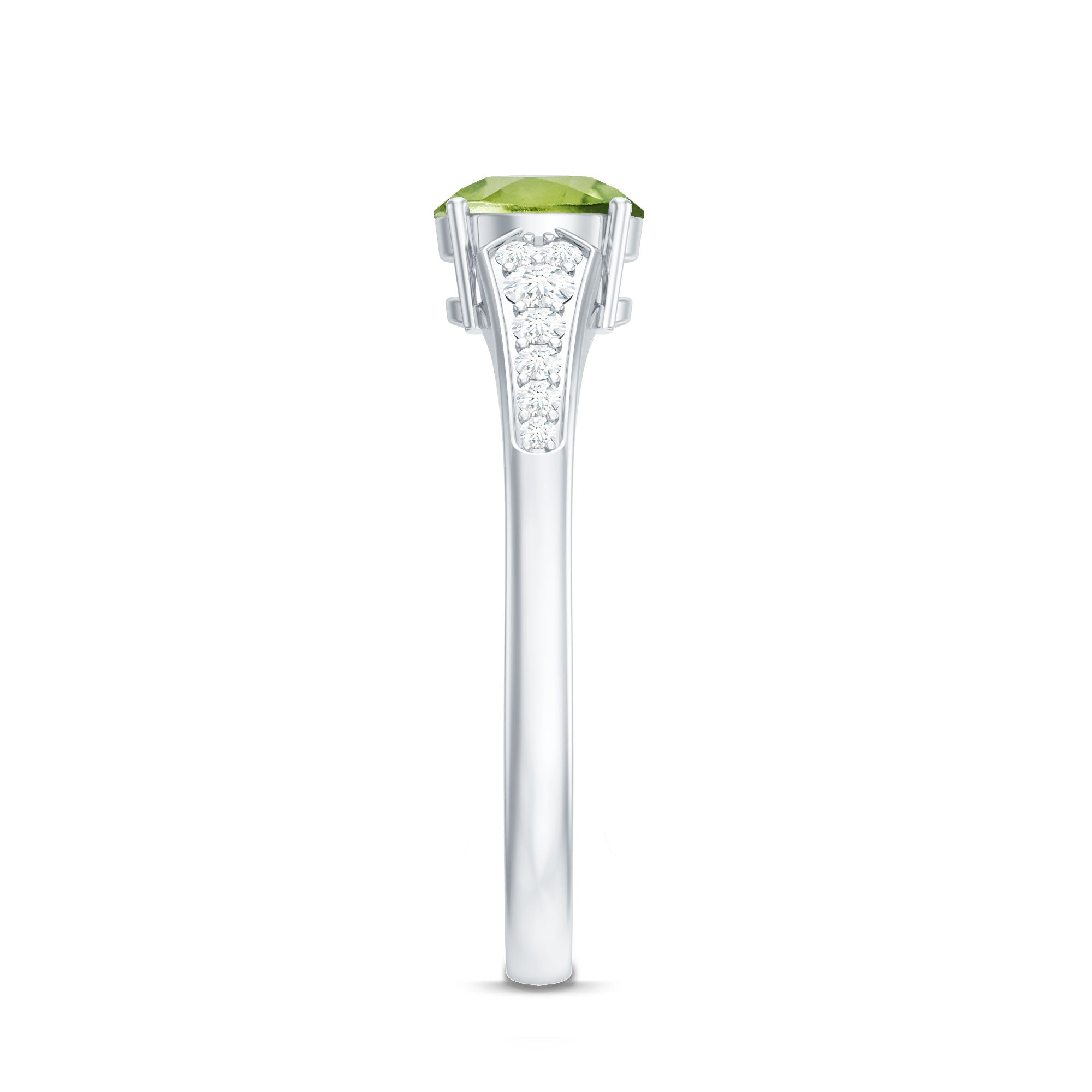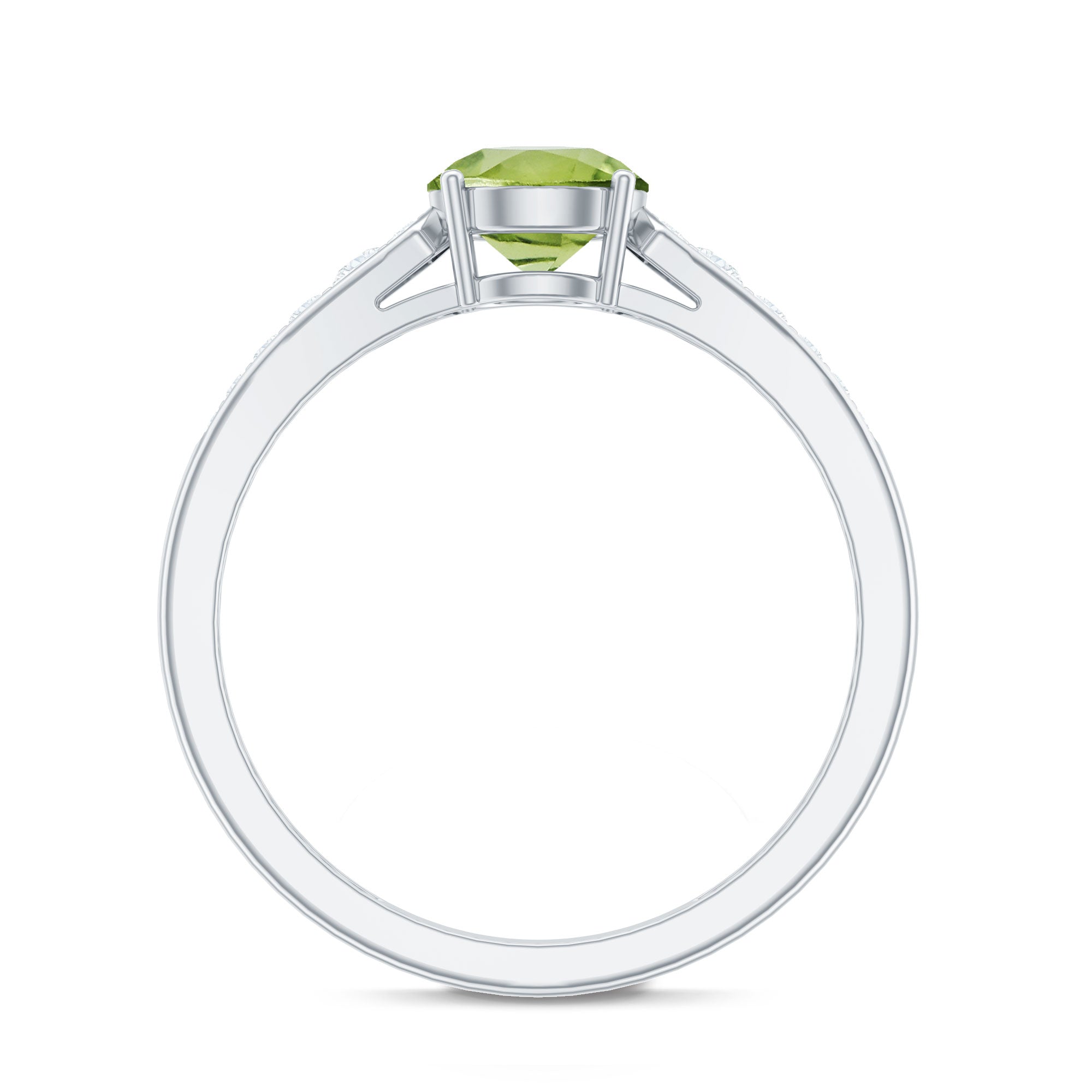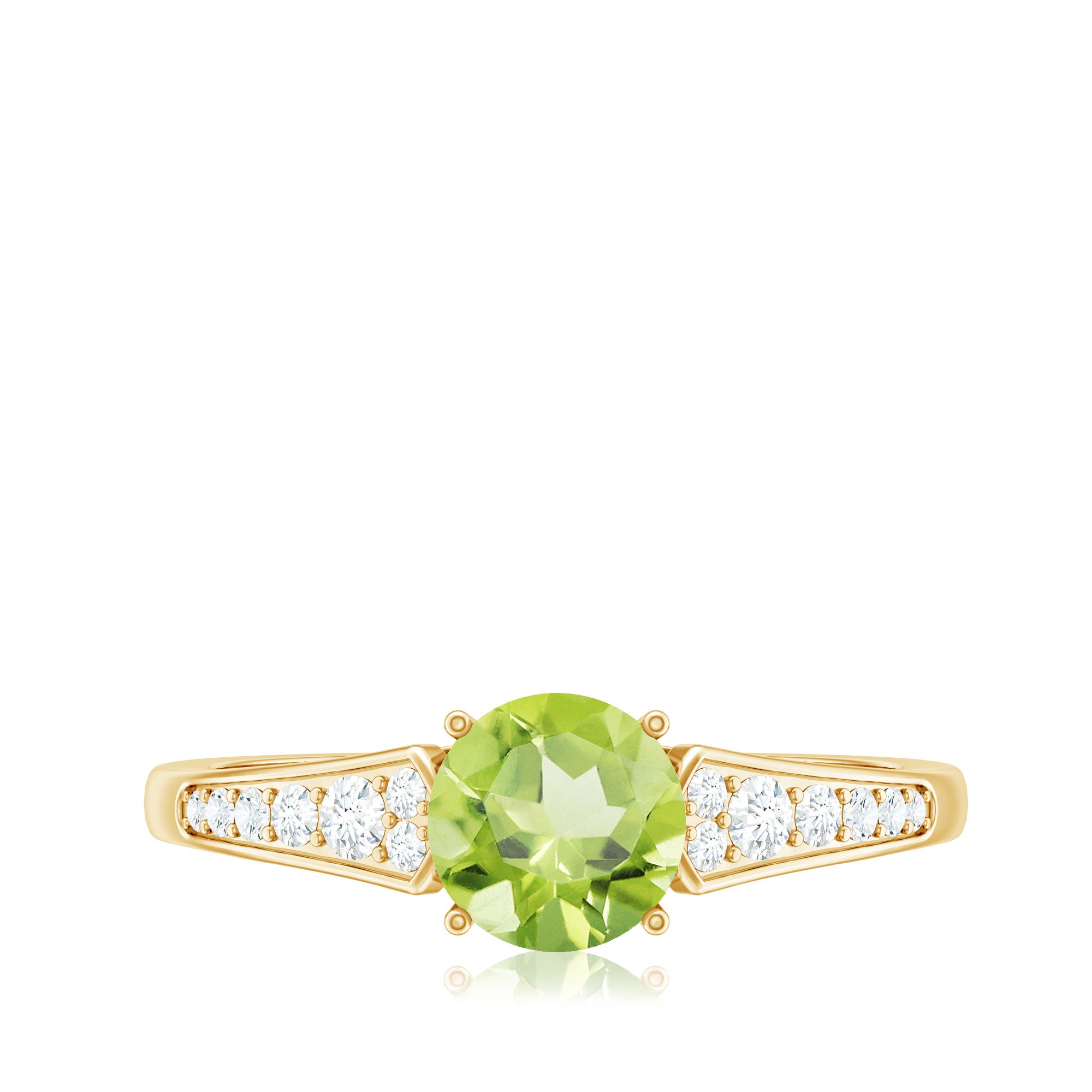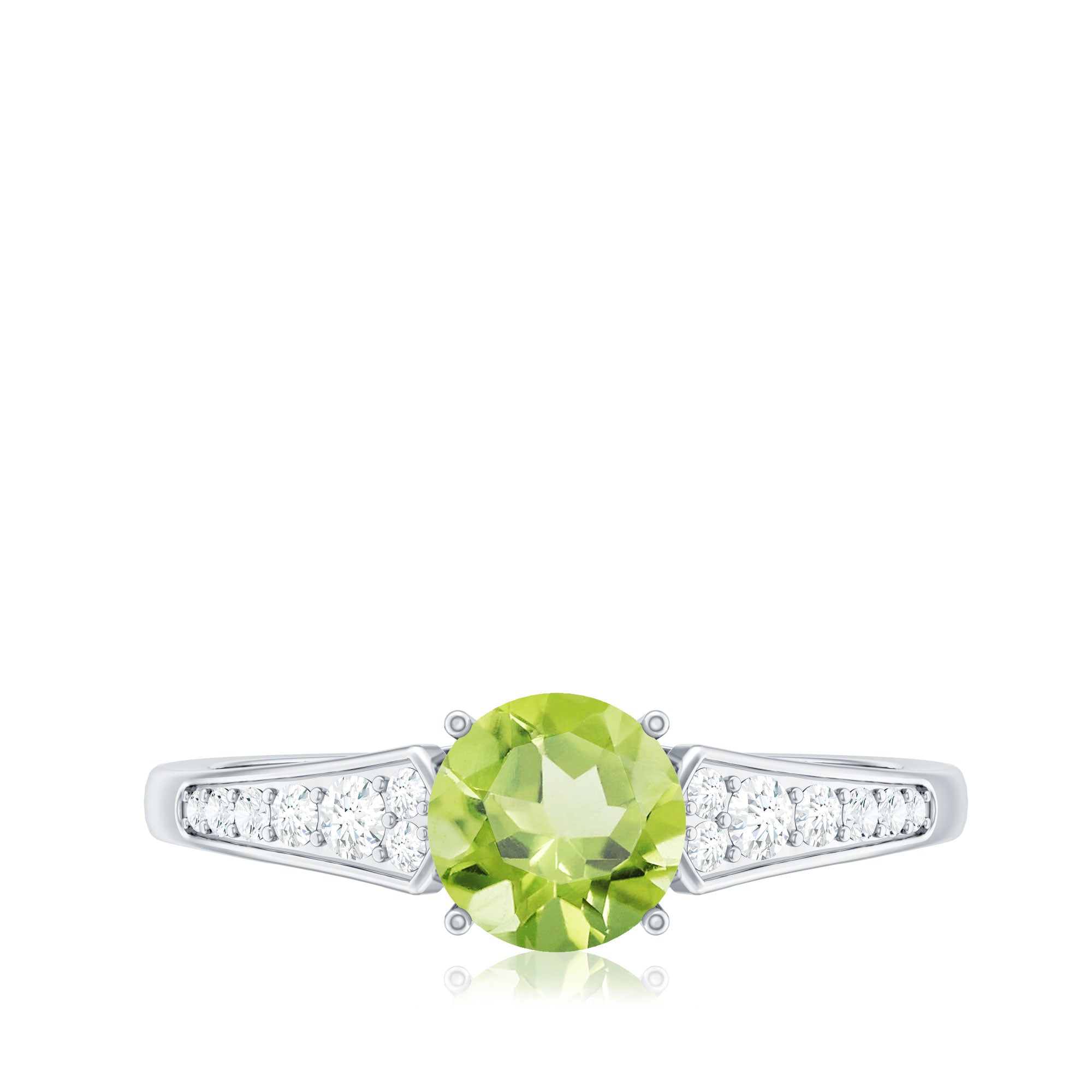 Round Peridot Solitaire Ring with Diamond Side Stones