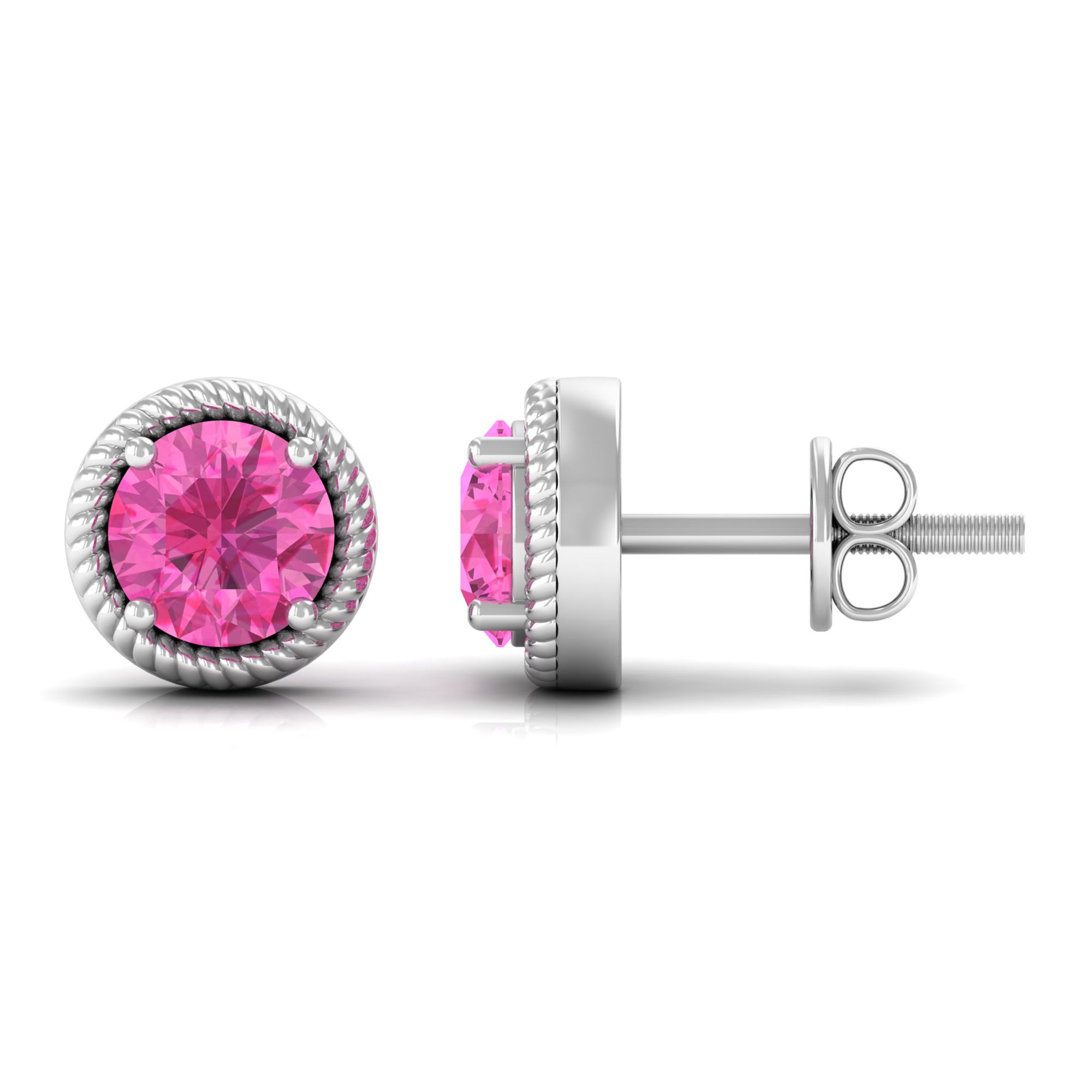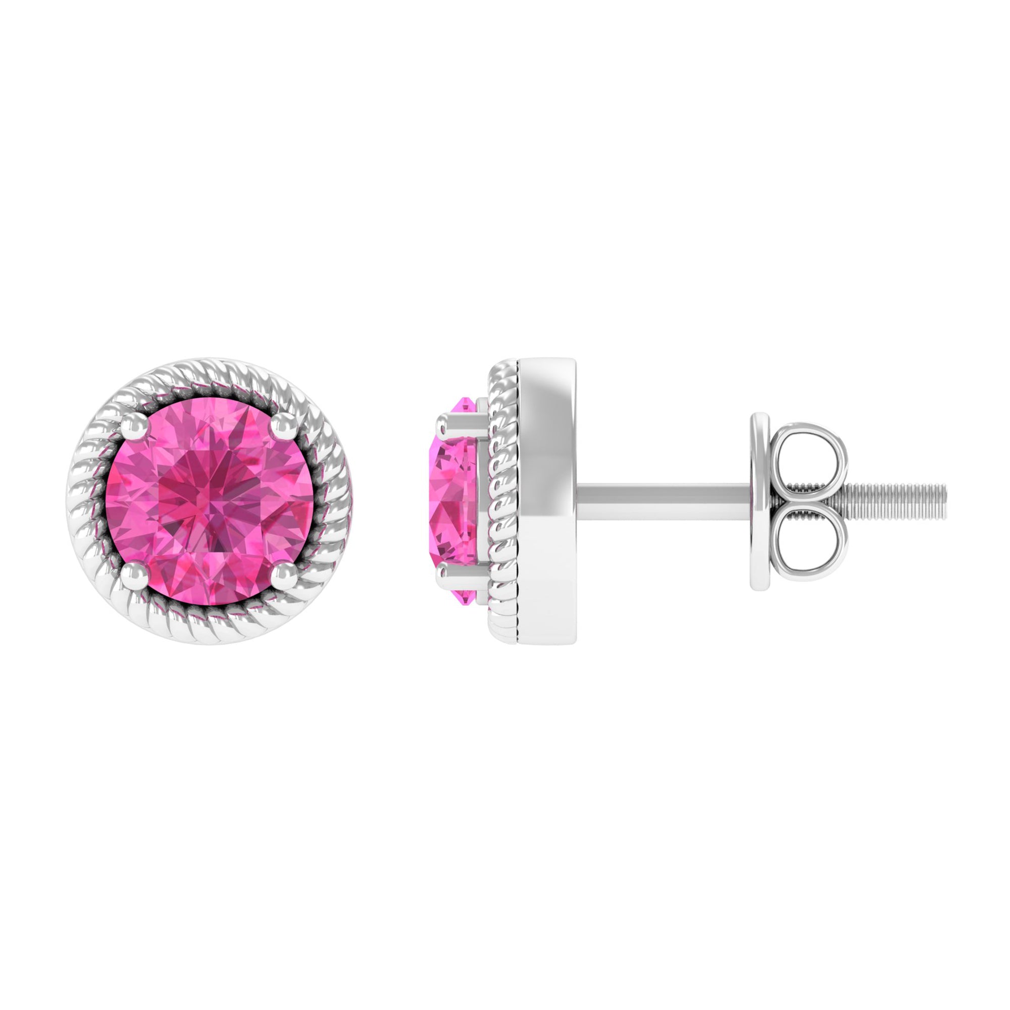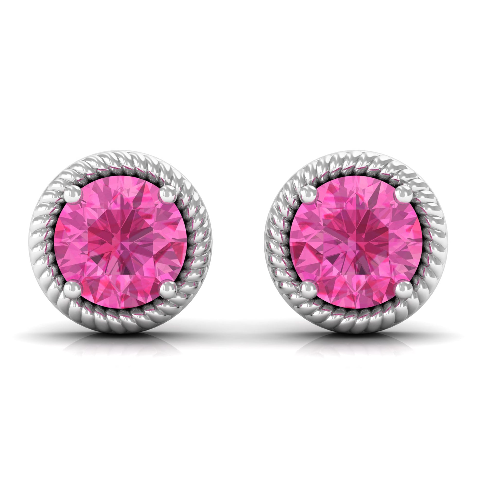 Delight her with these exquisite Solitaire Stud Earrings, a perfect embodiment of elegance. These Rope Stud Earrings feature a Round Cut Pink Sapphire, delicately nestled as a solitaire within intricately designed Twisted Rope Detailing.