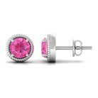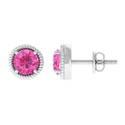 Round Pink Sapphire Solitaire Stud Earrings in Rope Frame