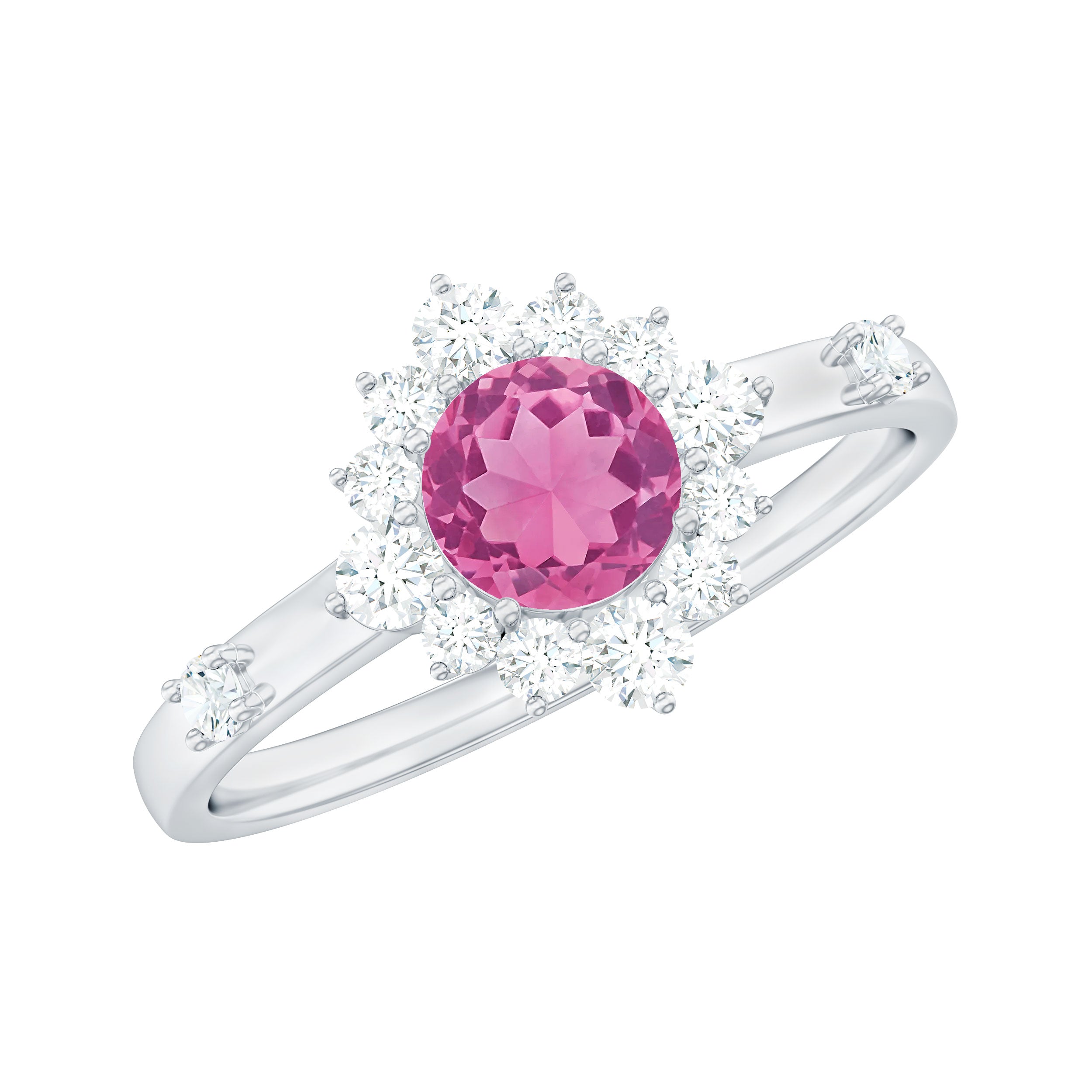Round Pink Tourmaline Classic Halo Engagement Ring with Diamond