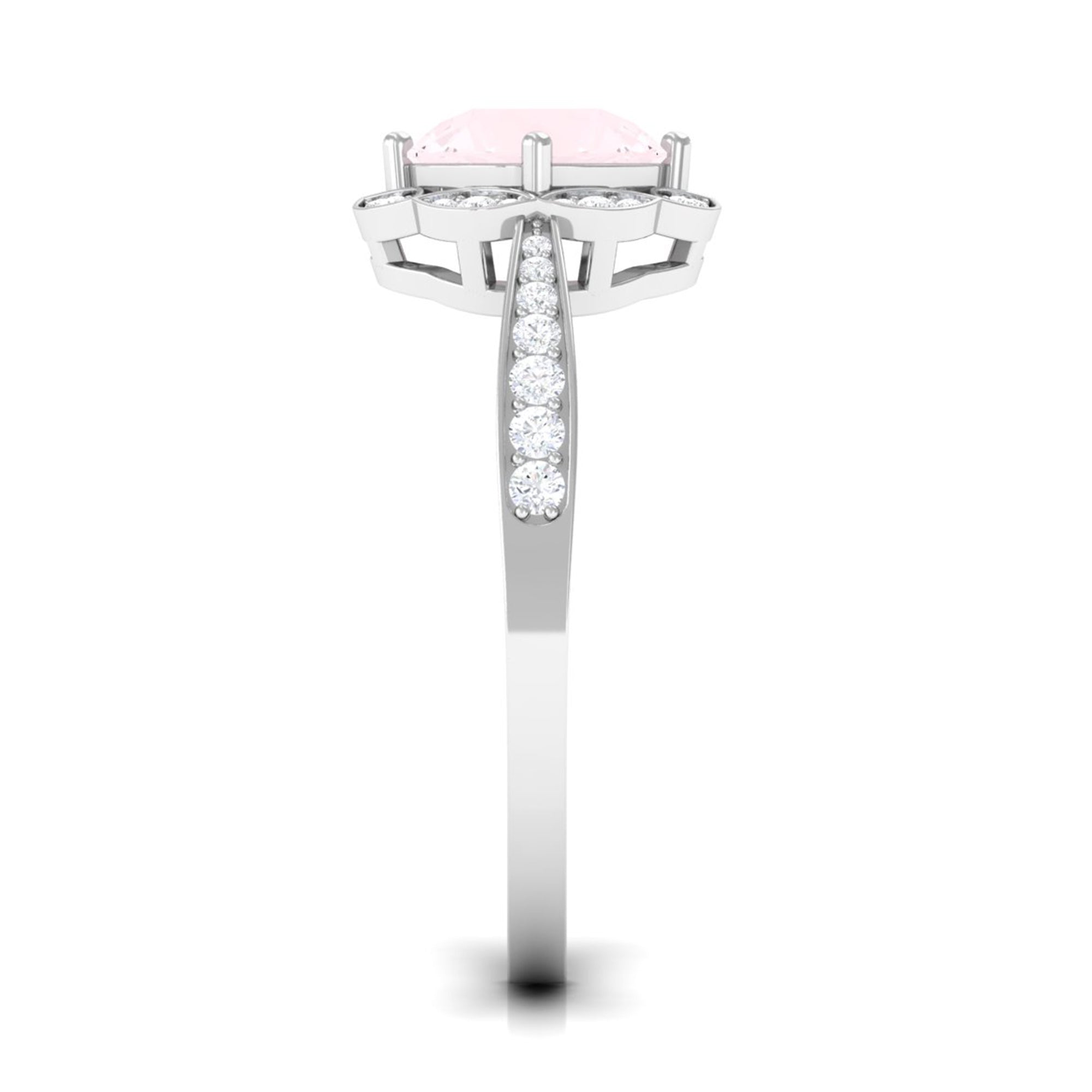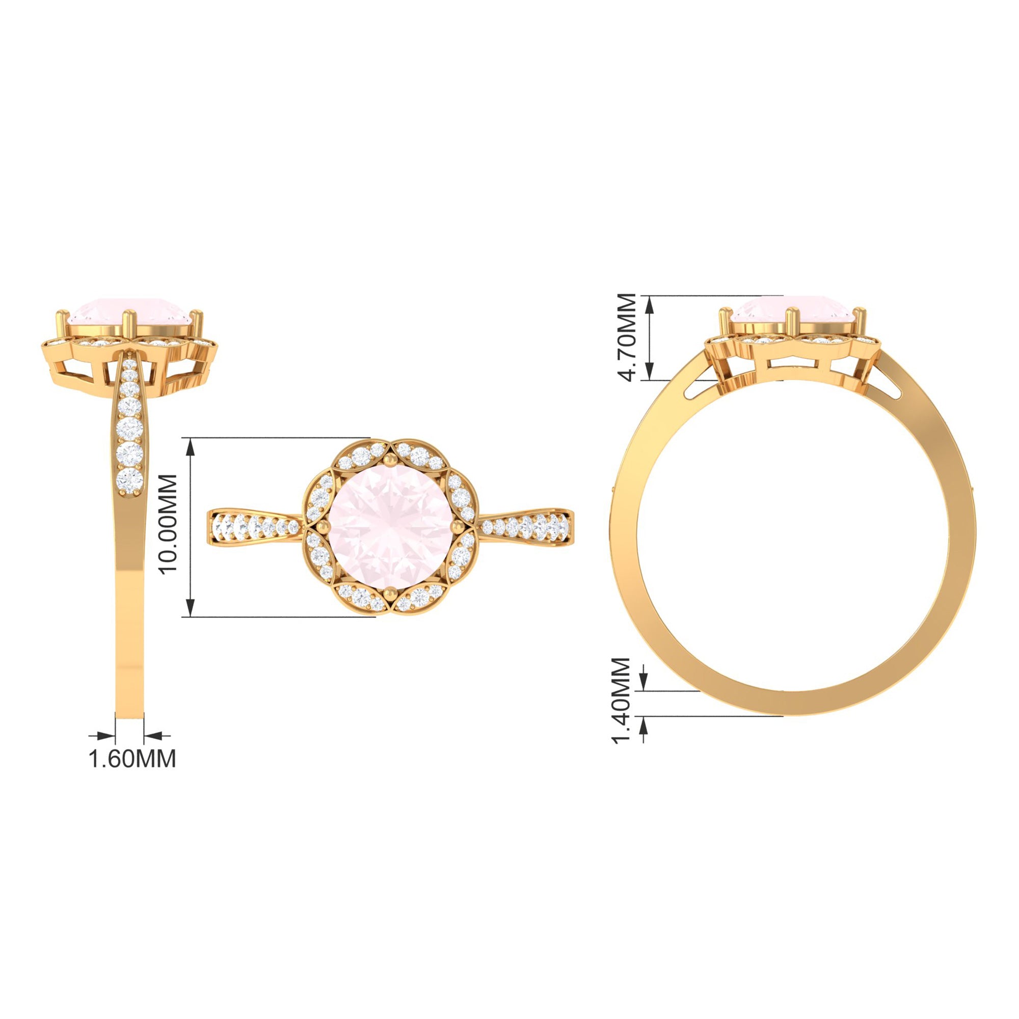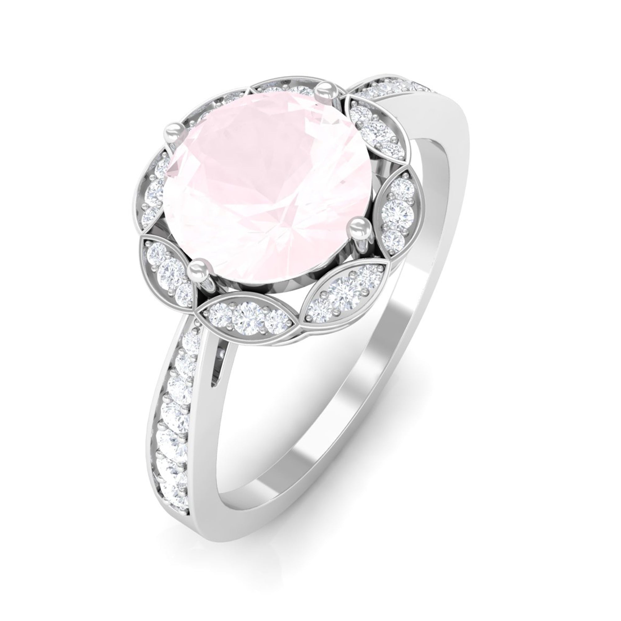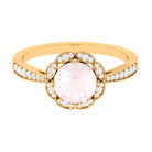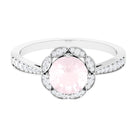 Round Rose Quartz and Diamond Designer Halo Engagement Ring