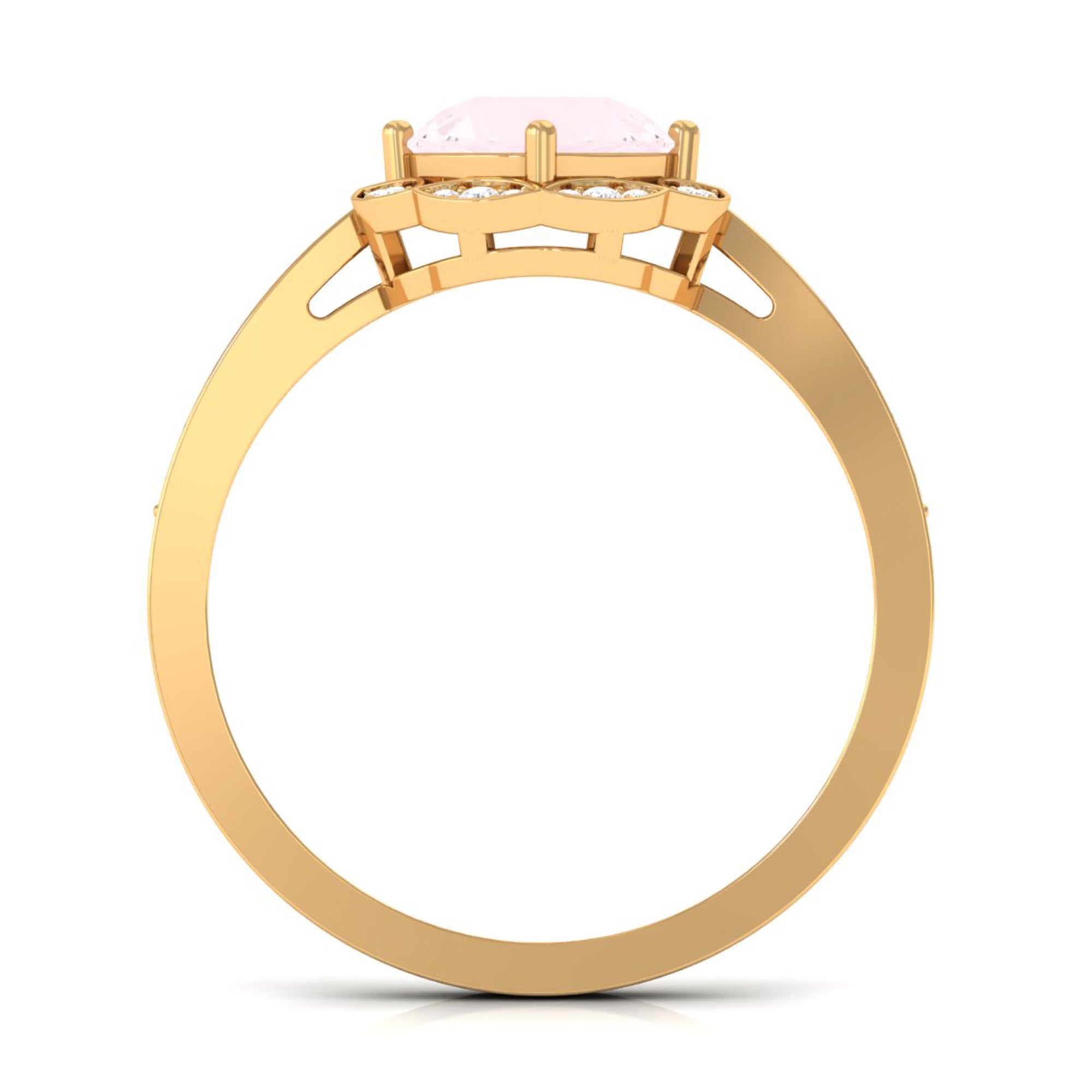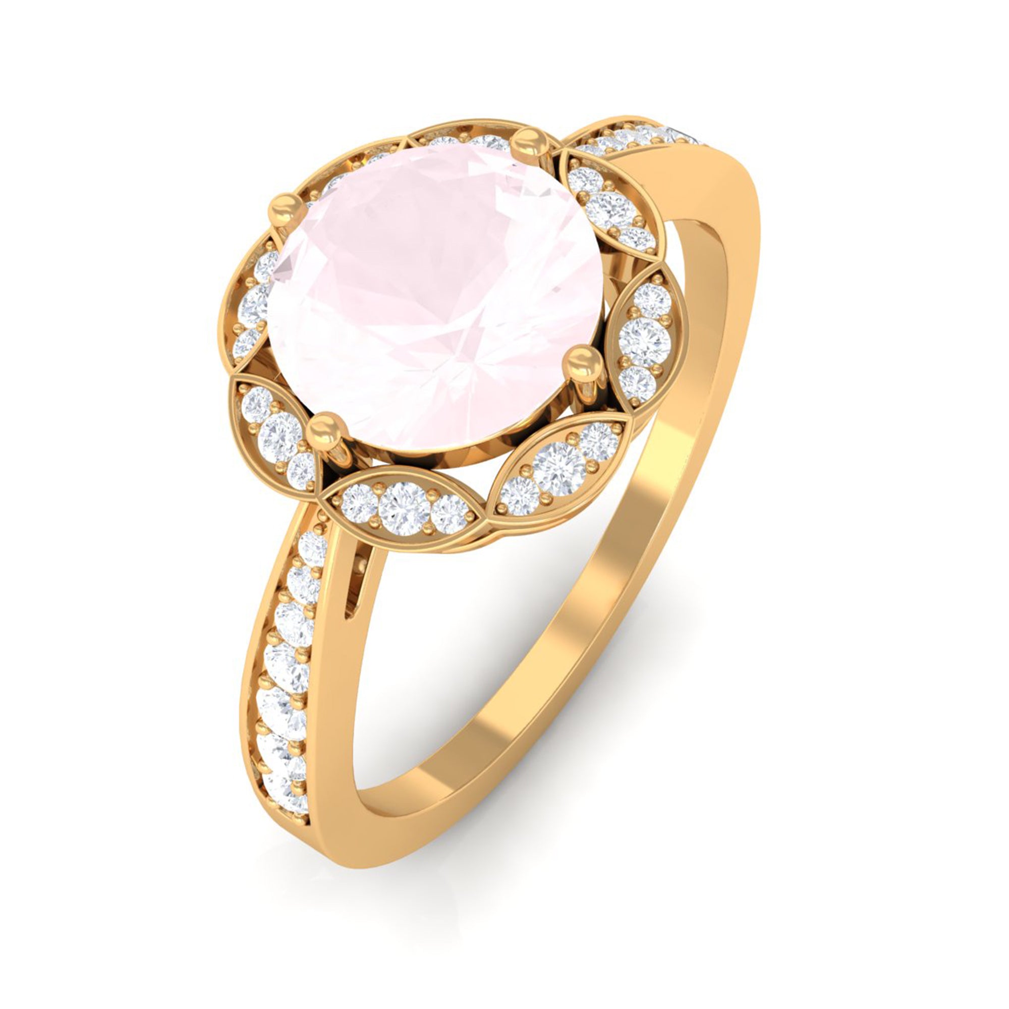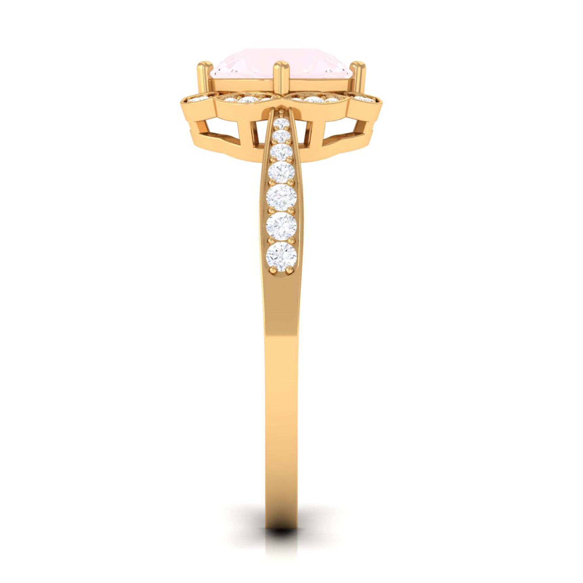 Round Rose Quartz and Diamond Designer Halo Engagement Ring
