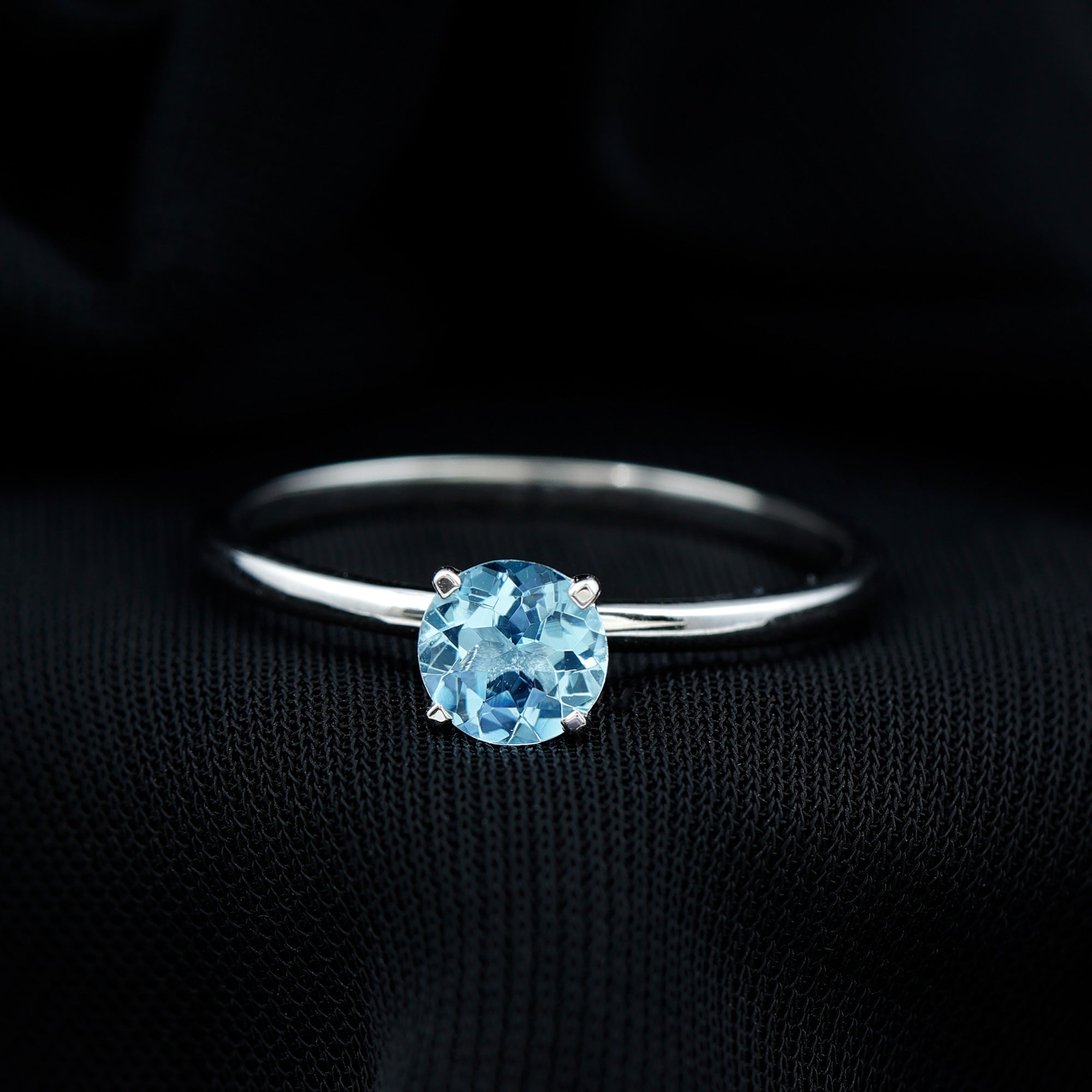 Round Shape Aquamarine Solitaire Ring in Peg Head Setting