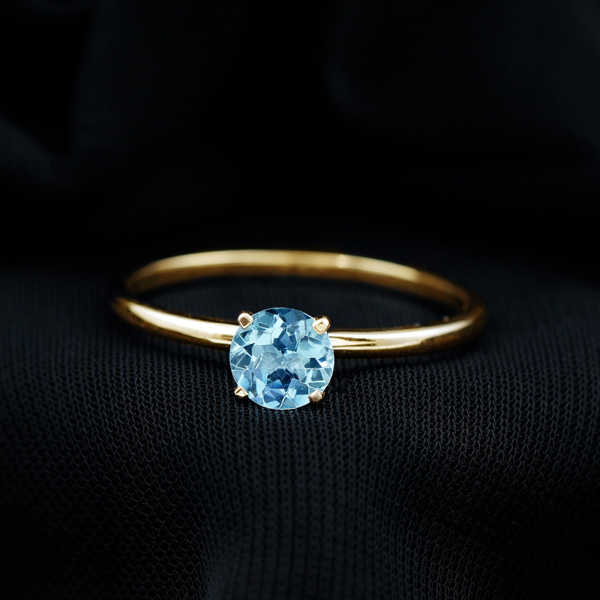 Modern Engagement Ring is encased with sparkling Round Shape Aquamarine as Solitaire in the peg head Setting. This Solitaire Gemstone Ring is composed in Solid Gold metal. Enhance your look with this classic Wedding Ring.