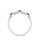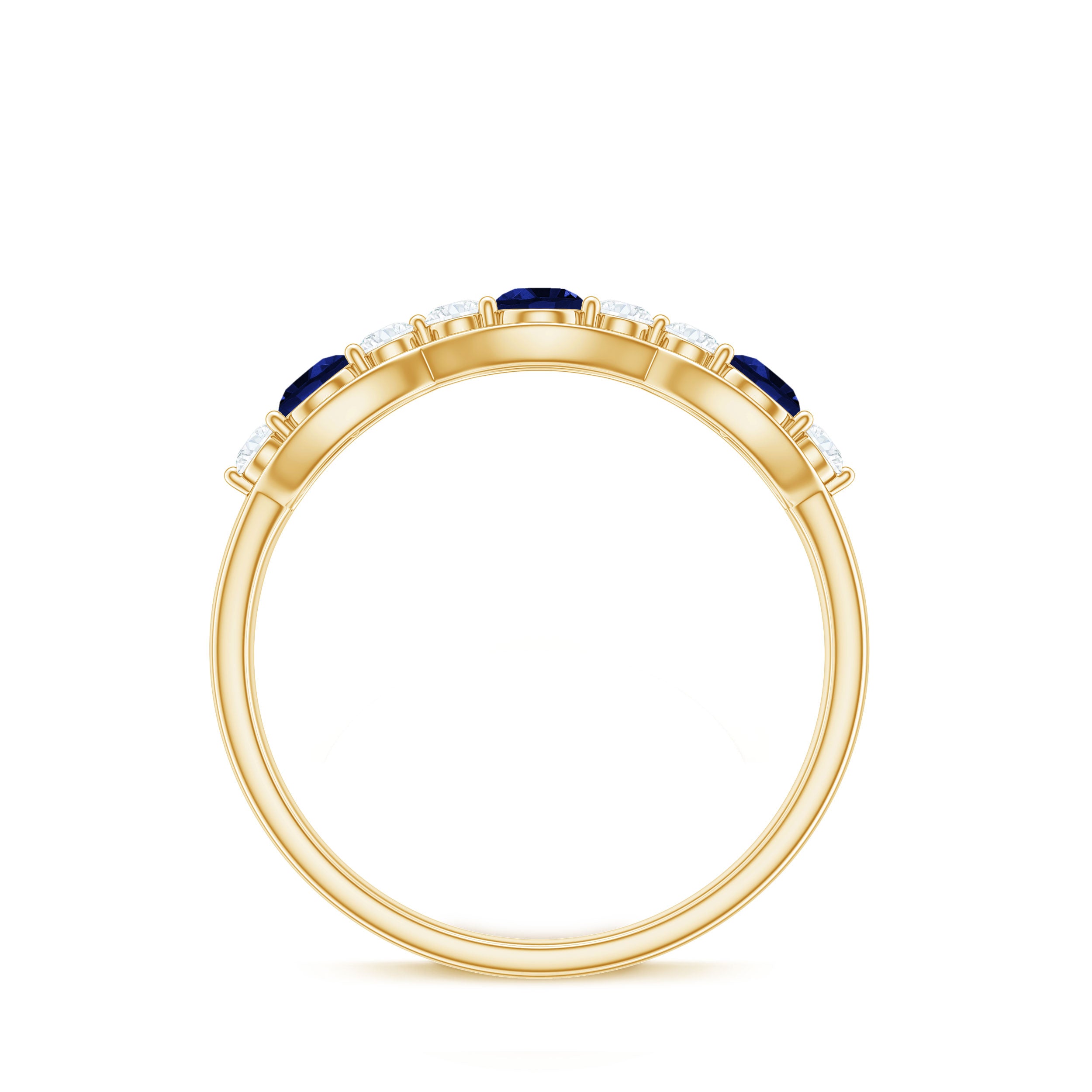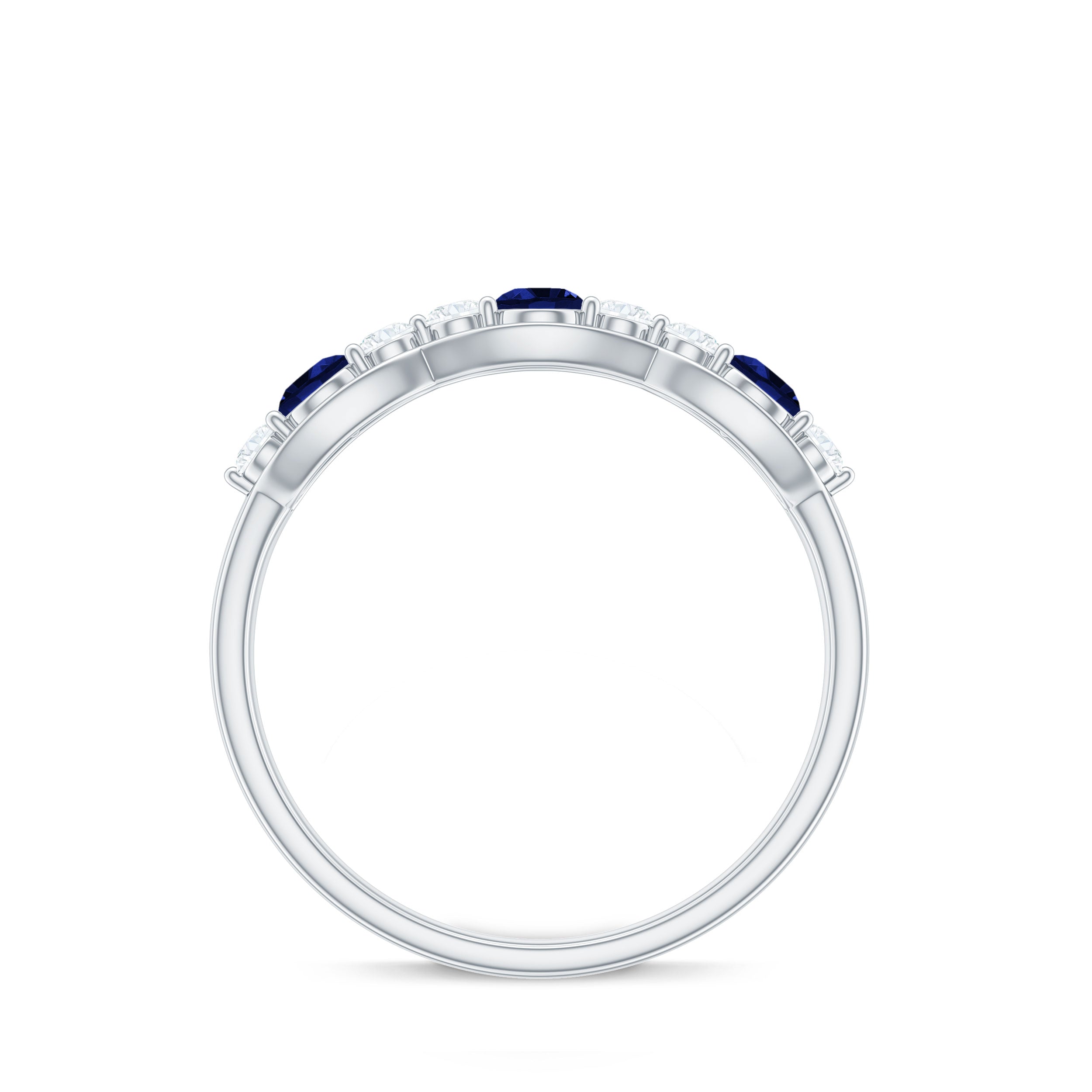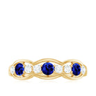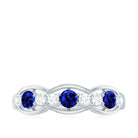Round Shape Certified Created Blue Sapphire and Diamond Anniversary Ring