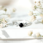 Round Shape Created Black Diamond and Diamond Infinity Engagement Ring