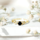 This exquisite engagement ring is sure to turn heads. It features a stunning round-cut created Black Diamond solitaire in the center, surrounded by crisscross band of gold embellished with round-cut Diamond stones. At 5 MM, the created Black Diamond solitaire shines bright, making this ring a beautiful and meaningful symbol of love.
