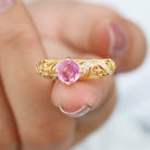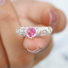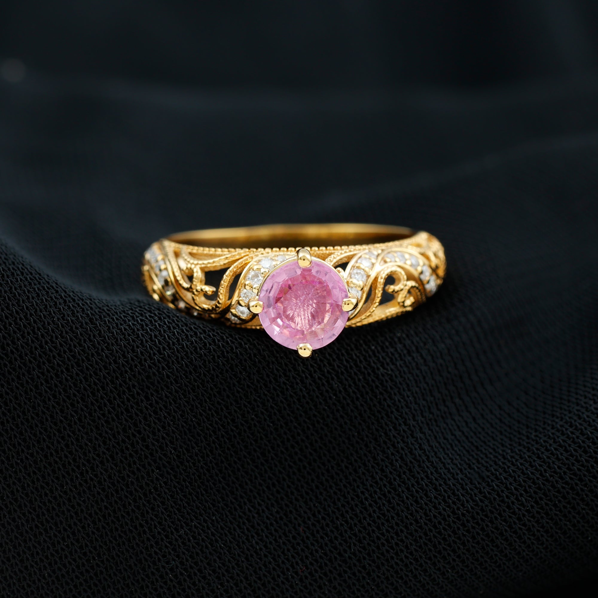 Lab Grown Pink Sapphire Antique Engagement Ring With Diamond