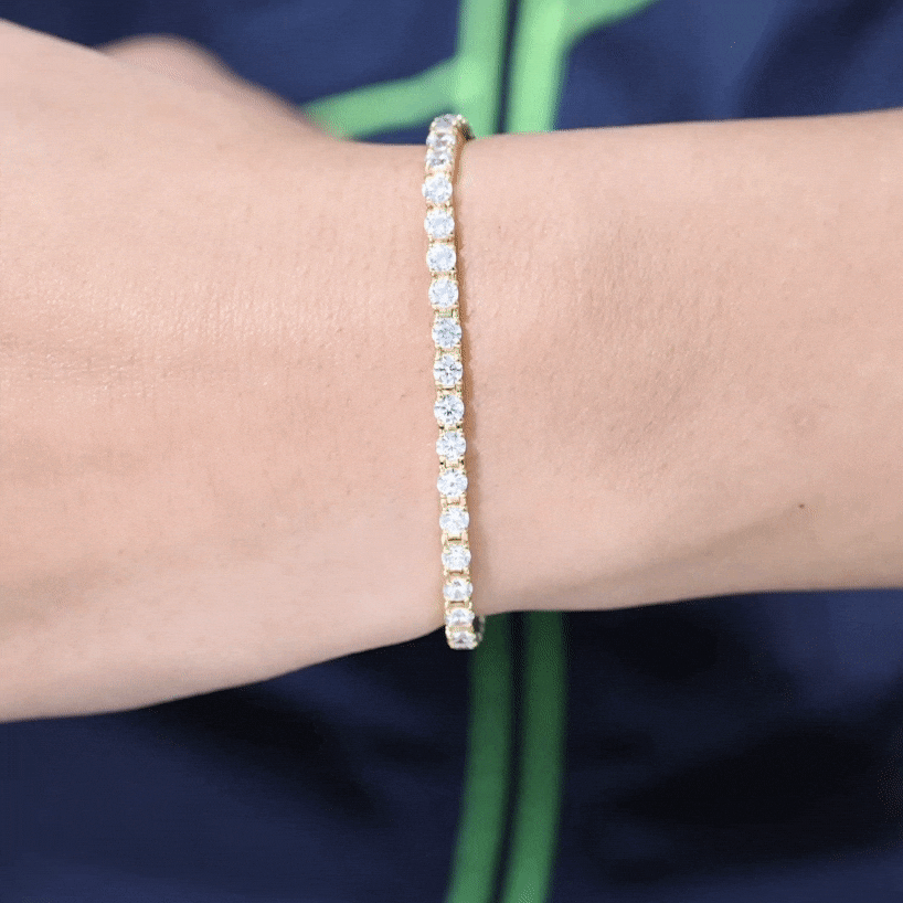 Get your hands on this stunning Zircon Tennis Bracelet, adorned with sparkling round shape Zircon stones set in a classic Prong Setting. This beautiful Tennis Bracelet is a unique and perfect gift for any occasion for the special woman in your life.