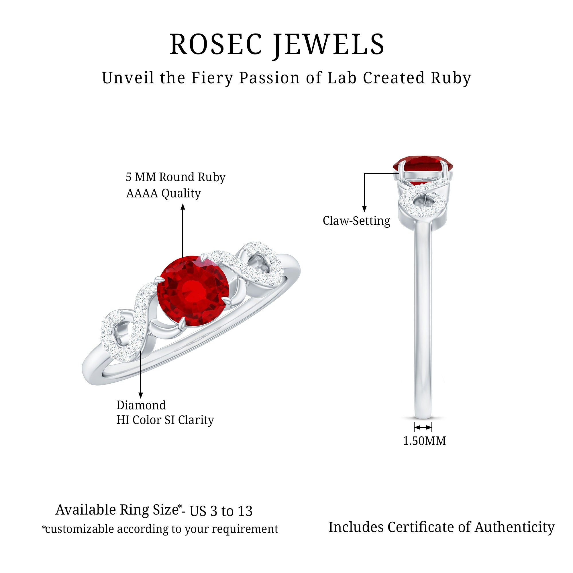 Round Shape Lab Grown Ruby Solitaire Infinity Ring with Diamond