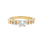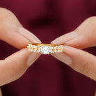 Celebrate your growing relationship with the Moissanite Promise Ring. Expertly crafted from Solid Gold Metal, this Solitaire Ring features a stunning 5 MM Round Cut Moissanite as the center stone and Marquise Cut Moissanite as side stones along the shank. Surprise your partner with this Promise Ring on a special day and strengthen your bond.