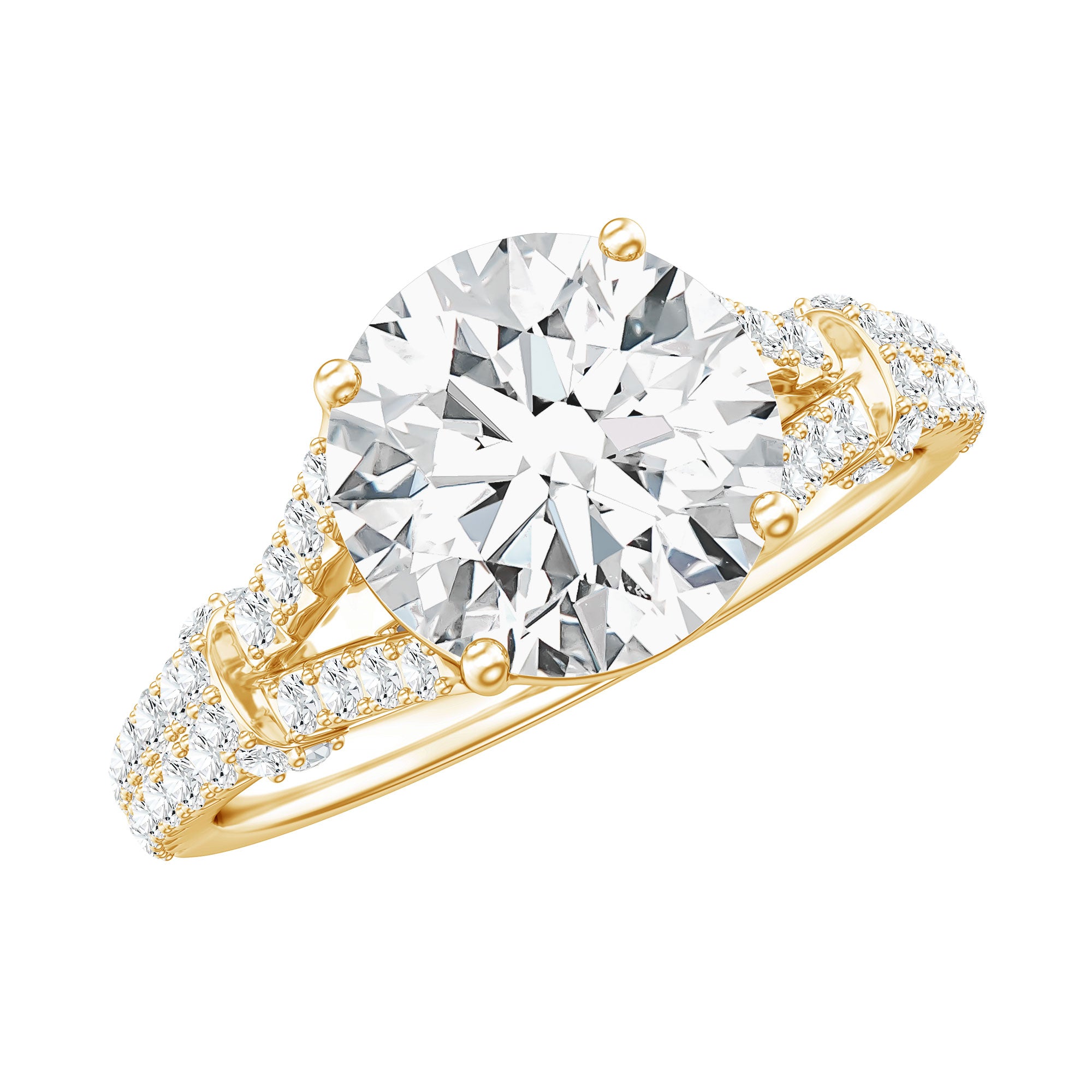Round Shape Moissanite Solitaire Engagement Ring in Split Shank