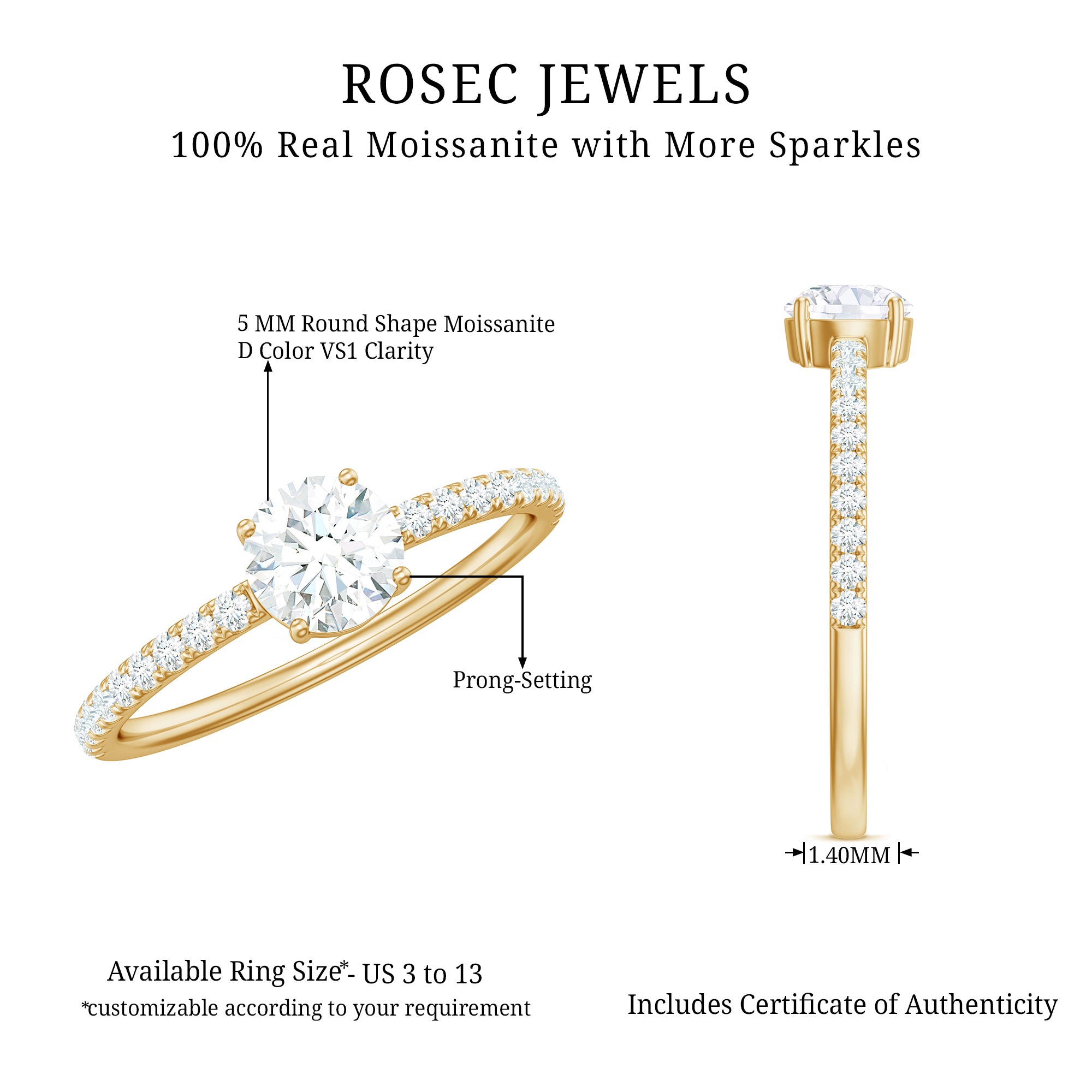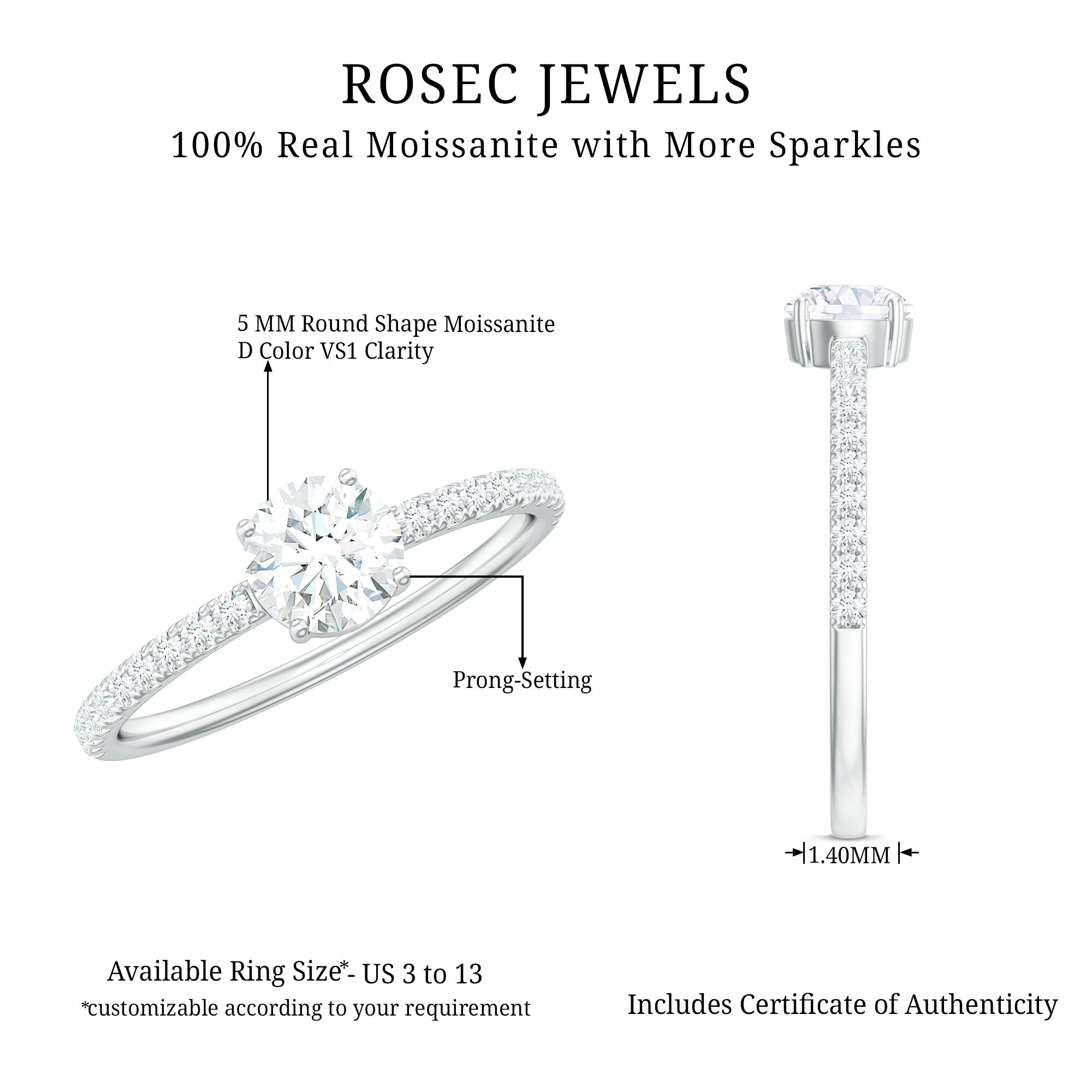 Round Cut Moissanite Center Stone