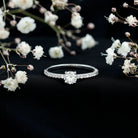 The structured arrangement creates a refined look suited for promise rings and symbolic jewelry styles.