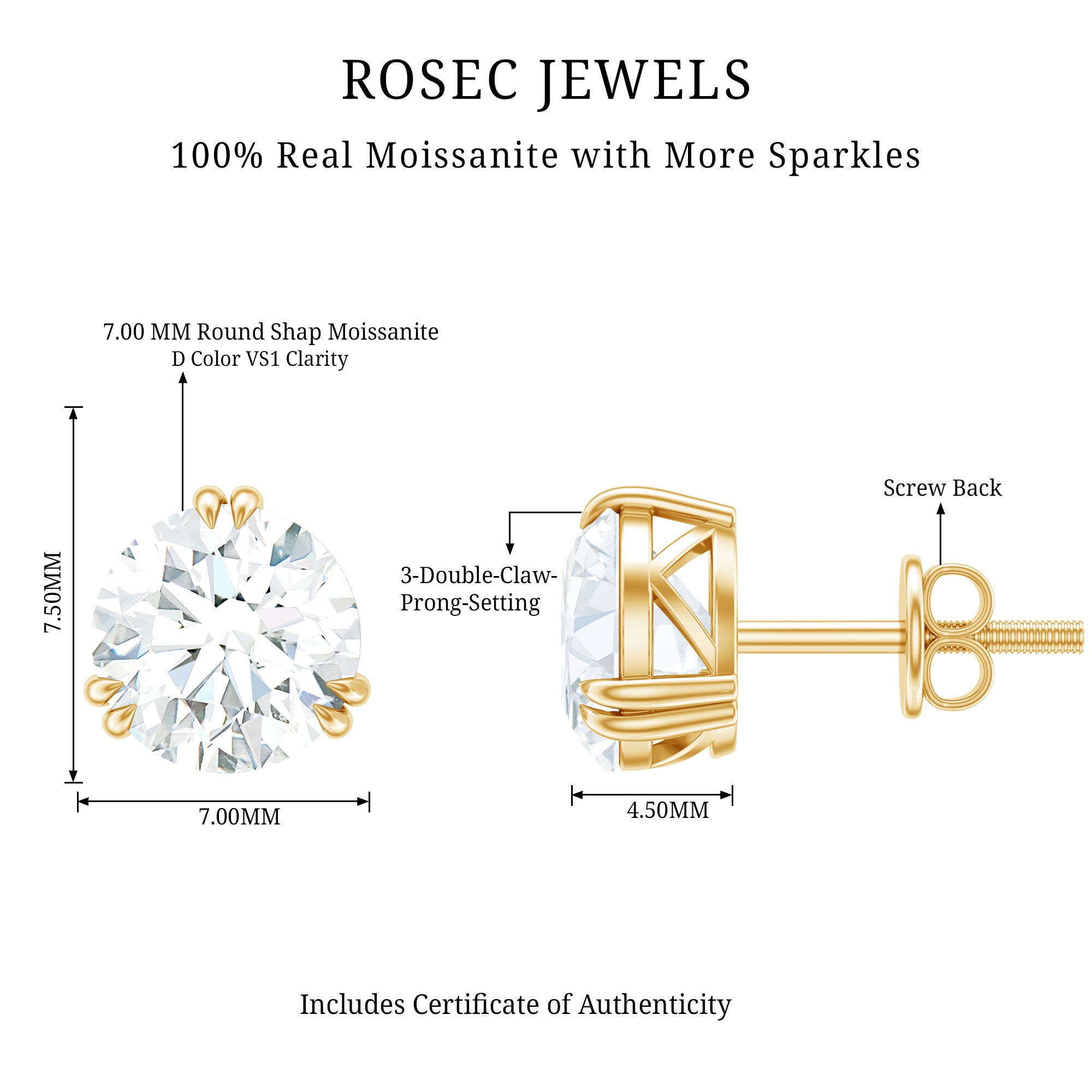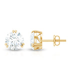 Enhance your outfit with these sophisticated, Gold Solitaire Stud Earrings. The earrings feature a round-cut Moissanite set as a solitaire in a 3 double claw prong setting.